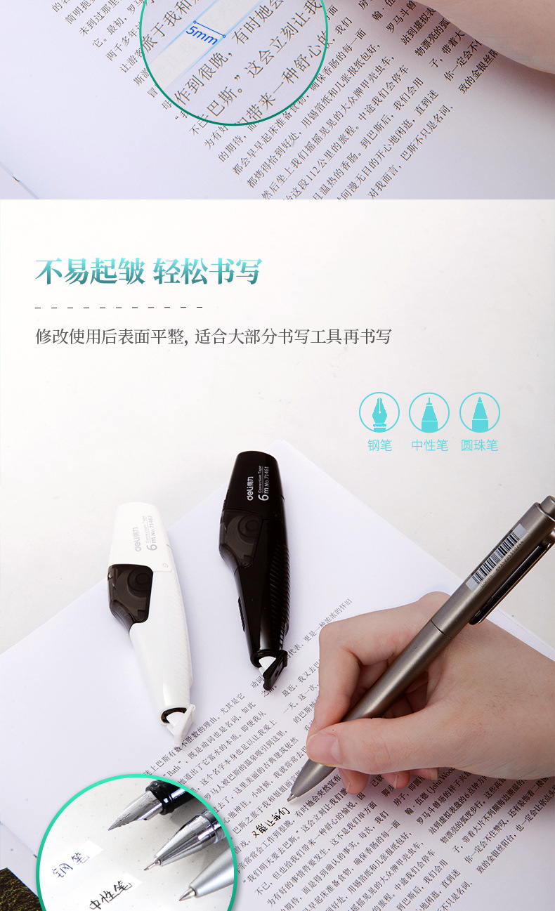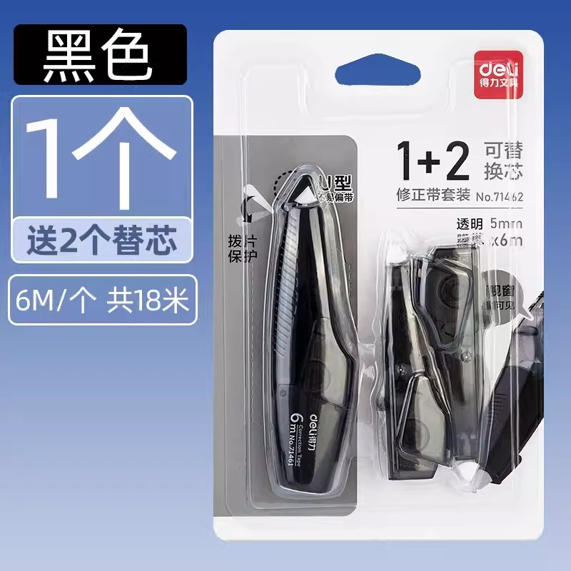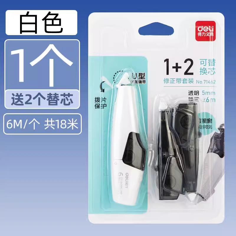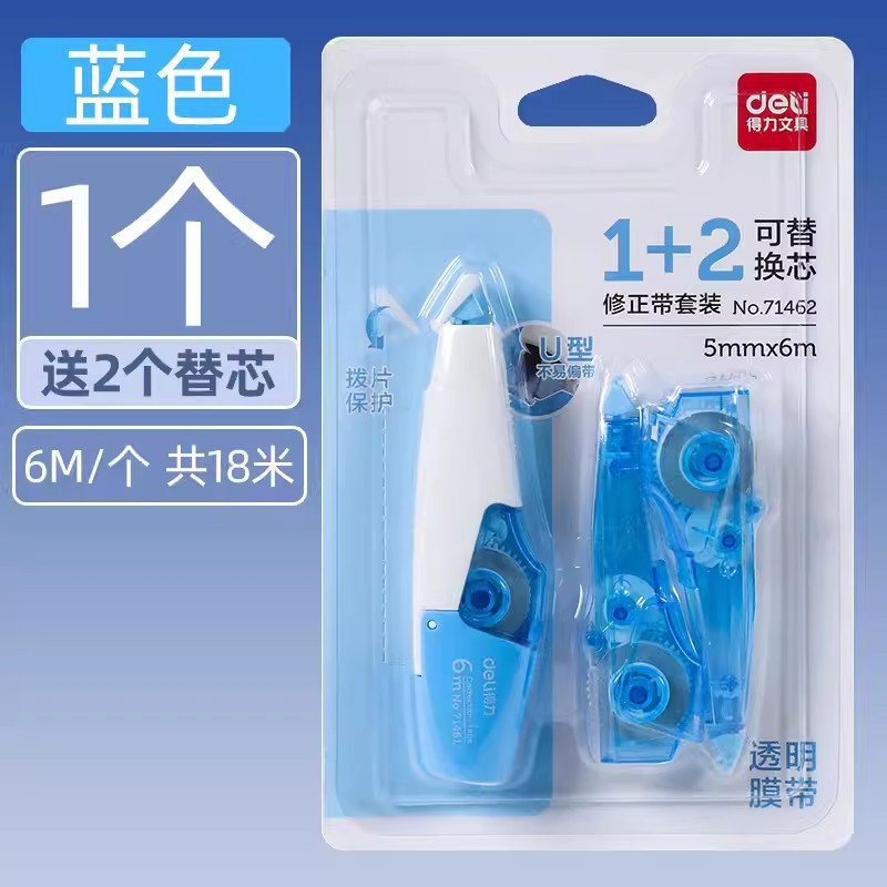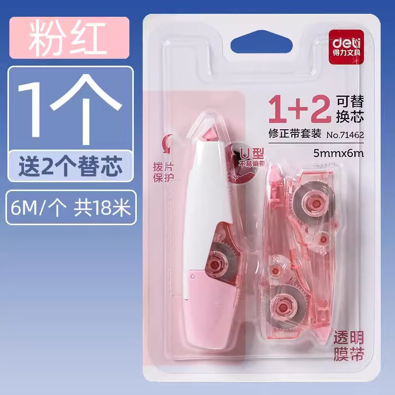 得力71462便携式笔型修正带套装可换替芯涂改错中小学生卡通儿童