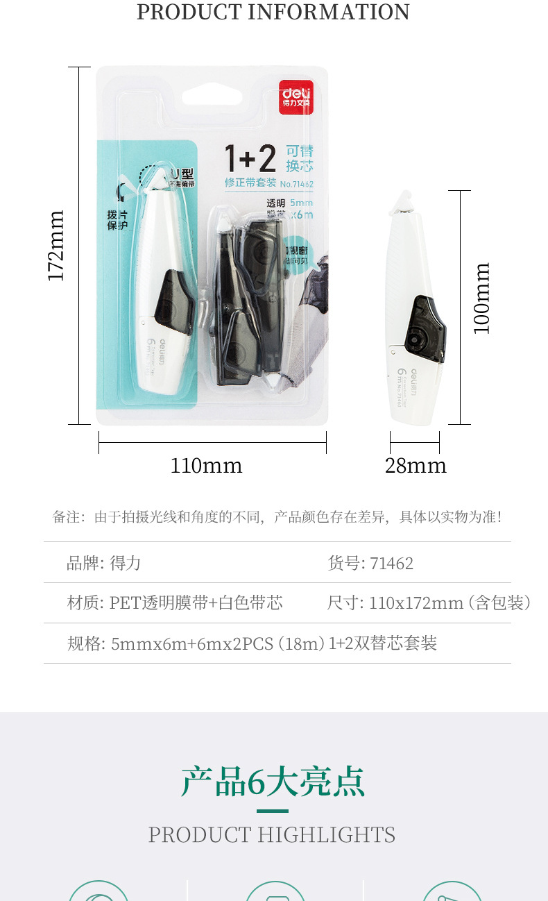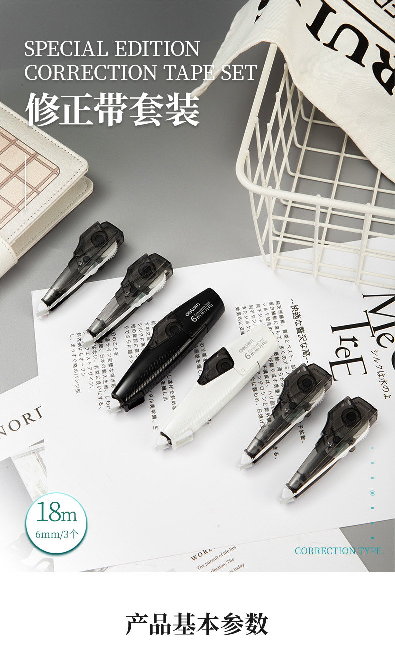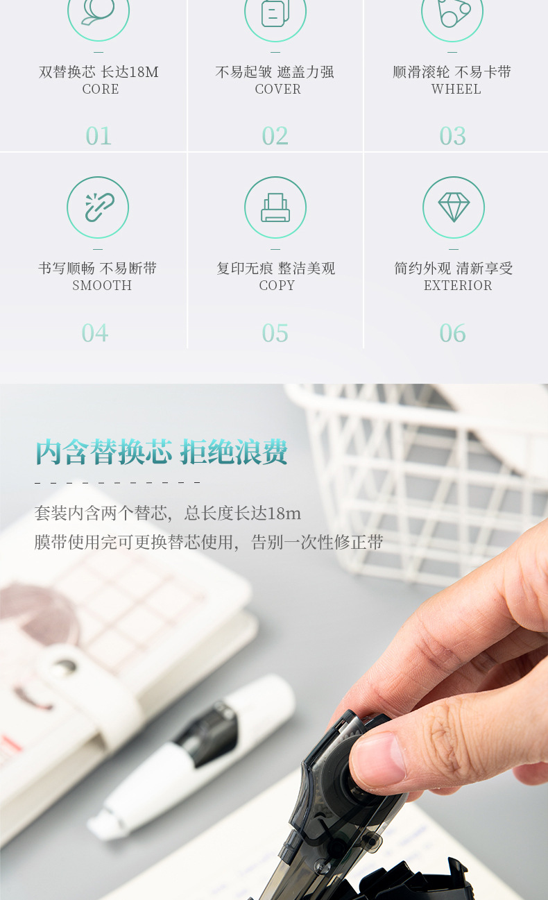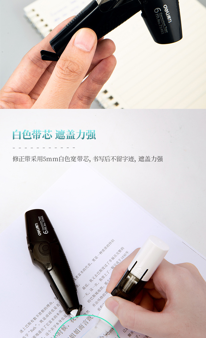 得力71462便携式笔型修正带套装可换替芯涂改错中小学生卡通儿童