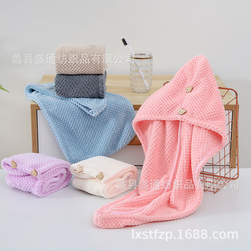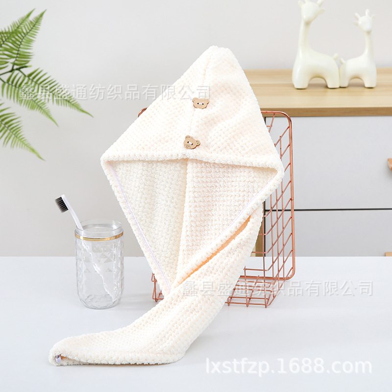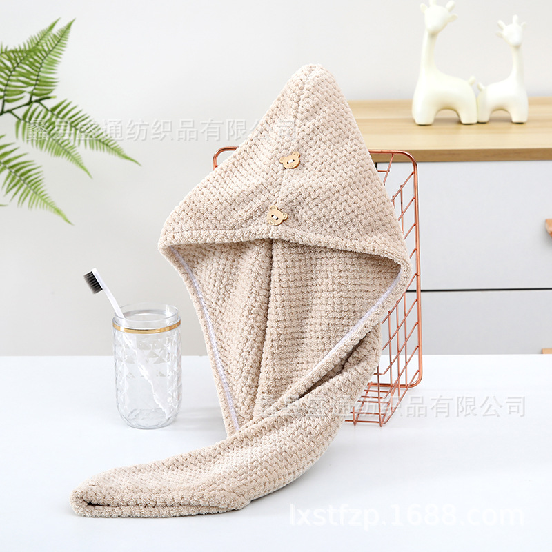 跨境菠萝格干发帽加厚女柔软吸水珊瑚绒包头巾干发巾浴帽速干帽