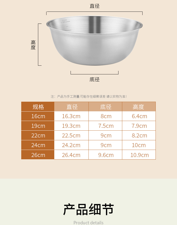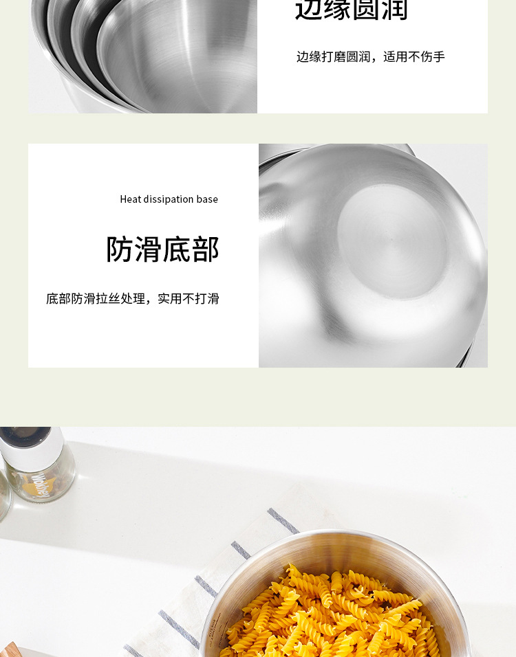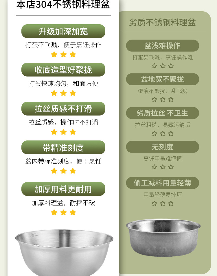 日式304食品级不锈钢加厚沙拉碗带刻度料理盆烘焙打蛋盆家用和面