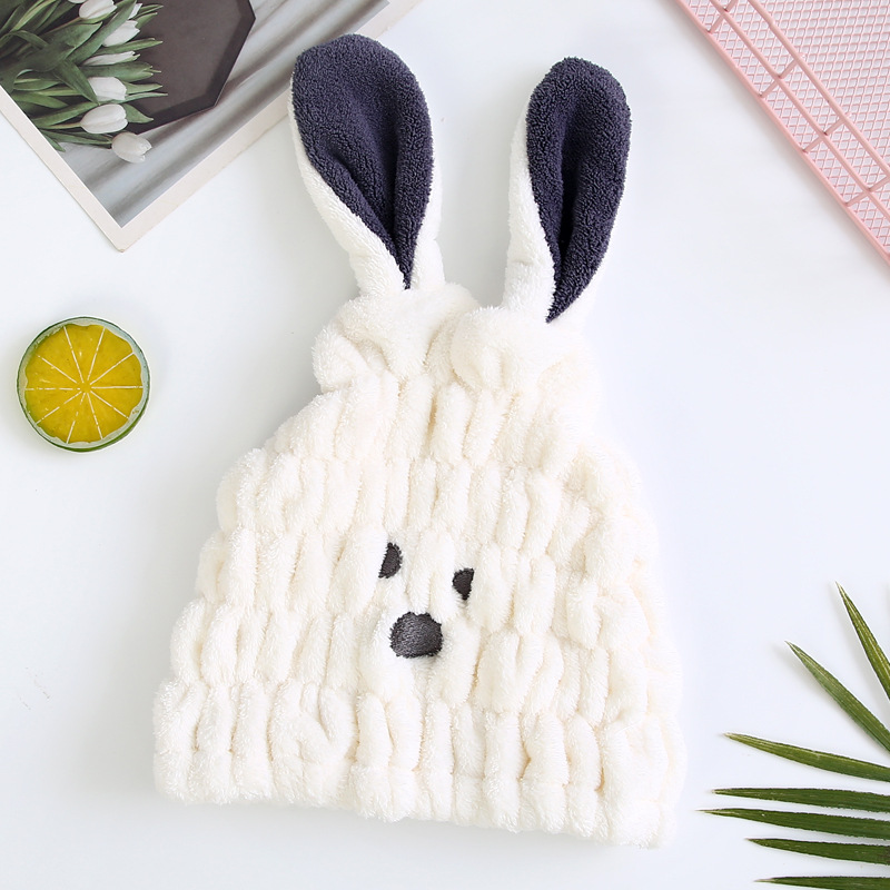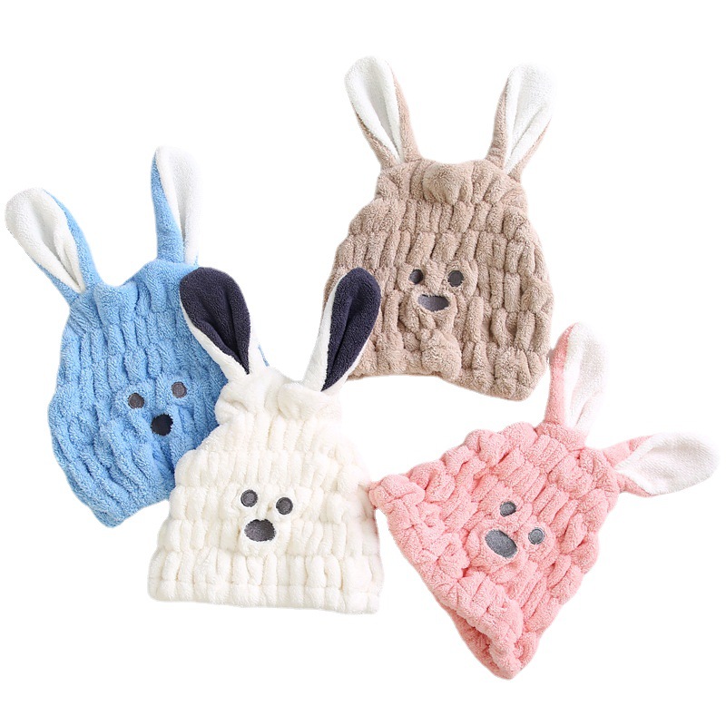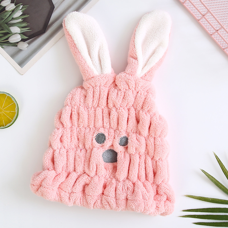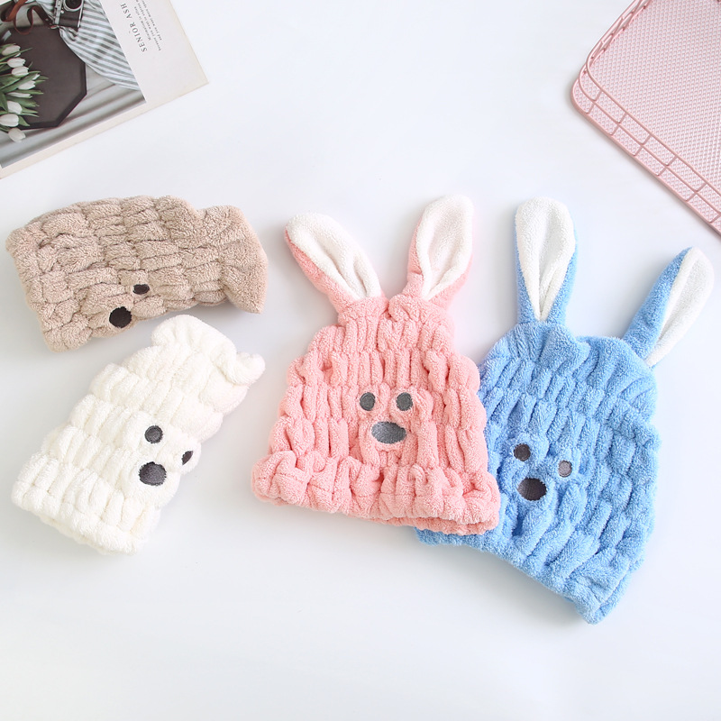 成人款珊瑚绒兔子耳朵干发帽女可爱柔软吸水强擦头发包头干发巾
