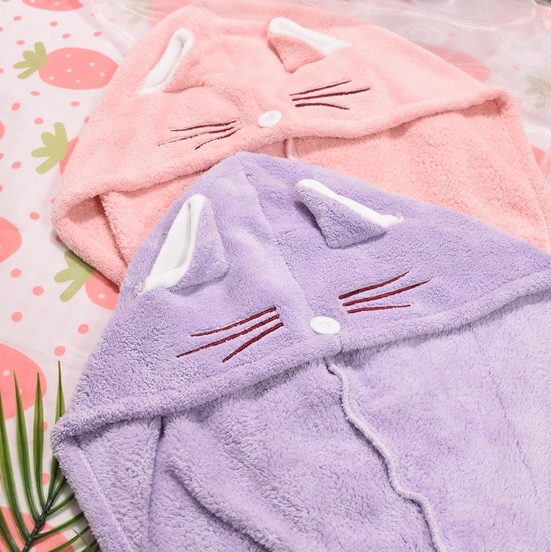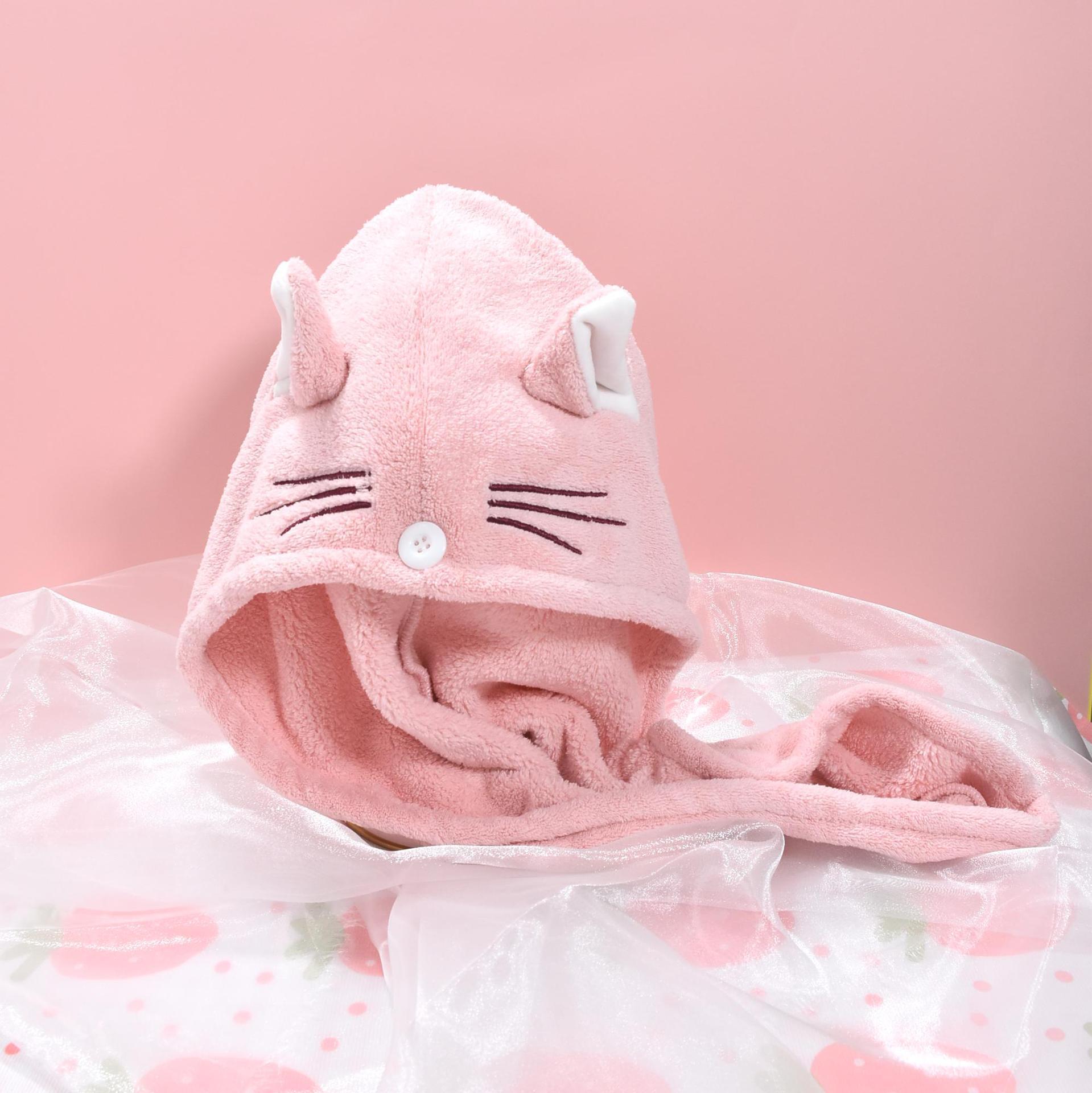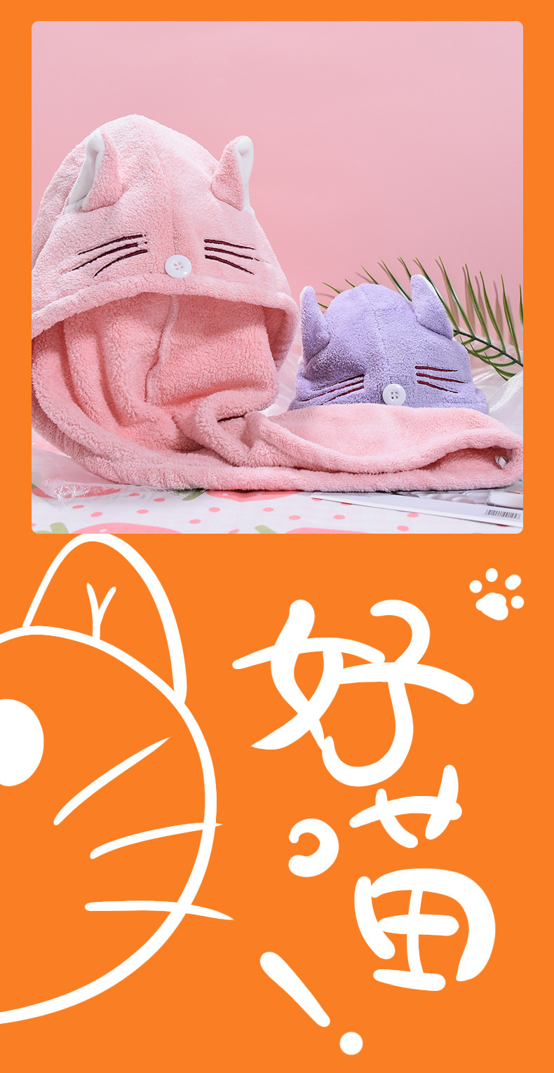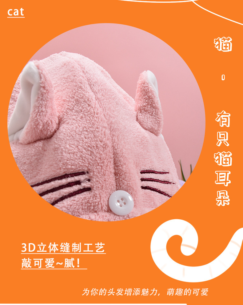 ins风卡通可爱猫耳朵干发帽洗脸不掉毛珊瑚绒吸水干发巾跨境