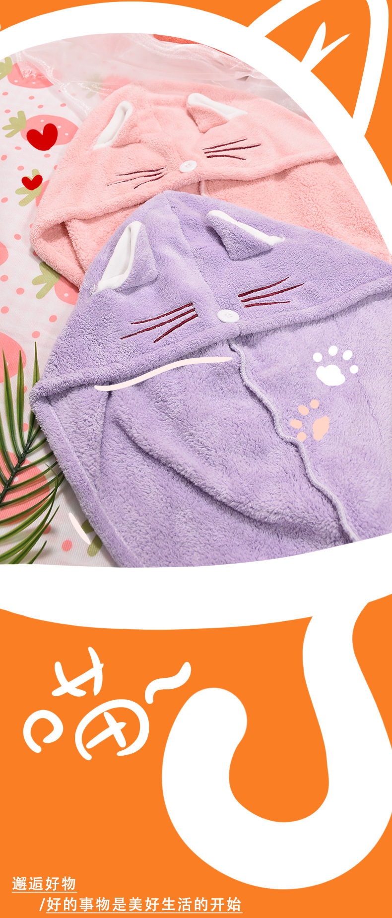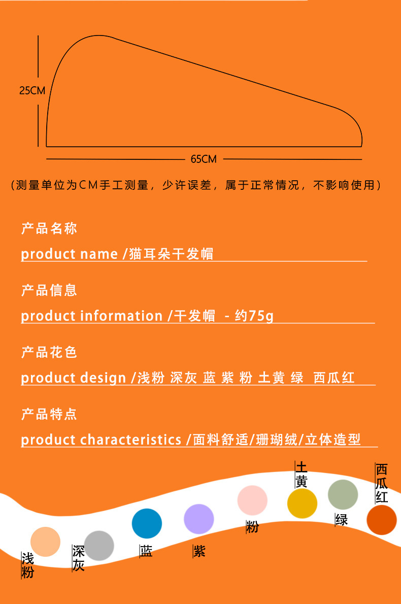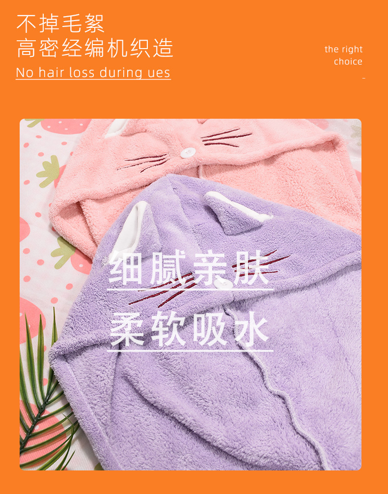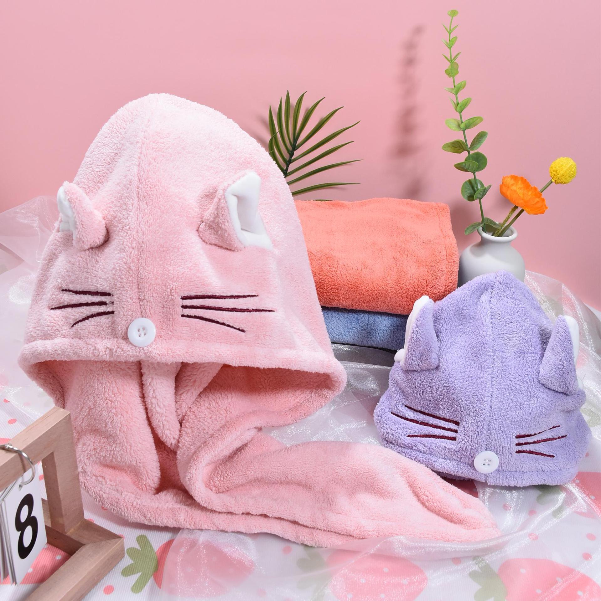 ins风卡通可爱猫耳朵干发帽洗脸不掉毛珊瑚绒吸水干发巾跨境