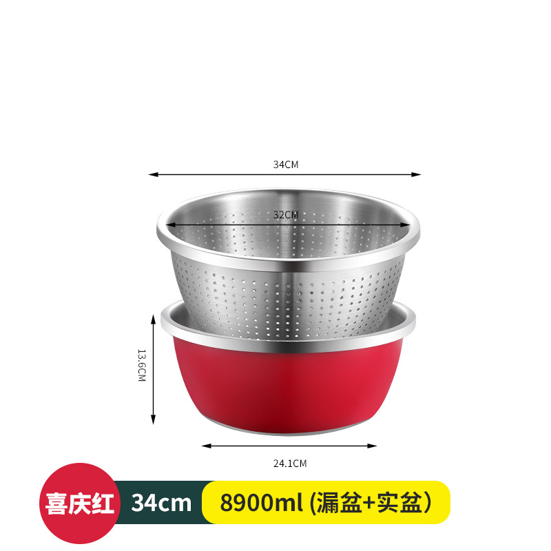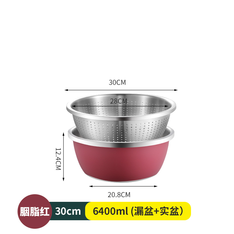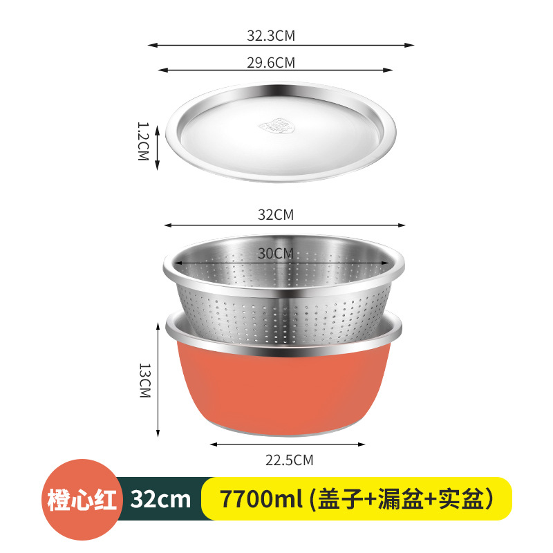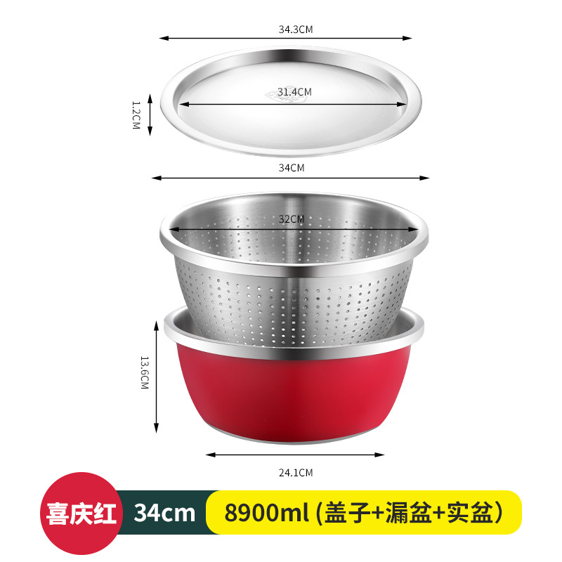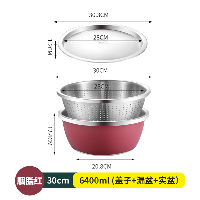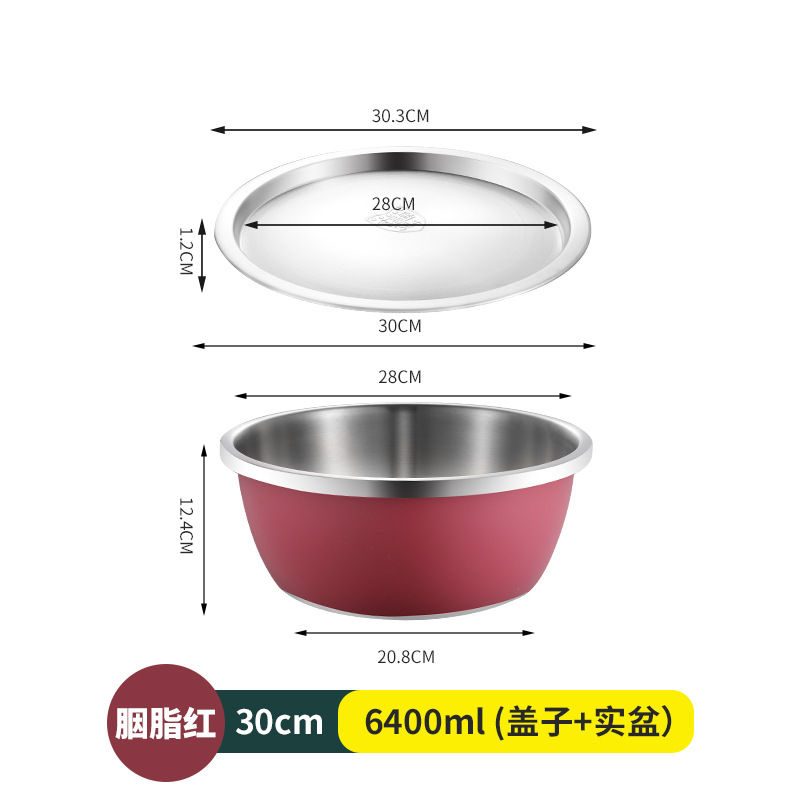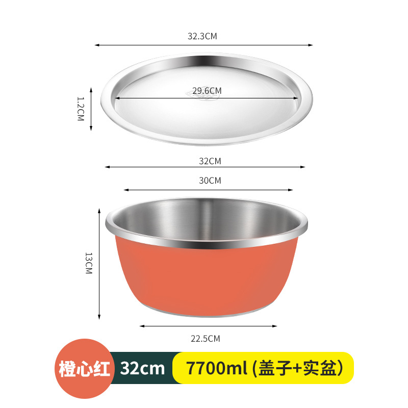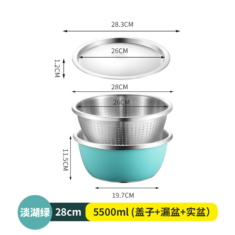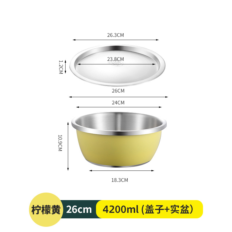 304不锈钢彩色料理盆带盖沙拉盆烘培和面打蛋盆宝宝洗奶瓶沥水盆
