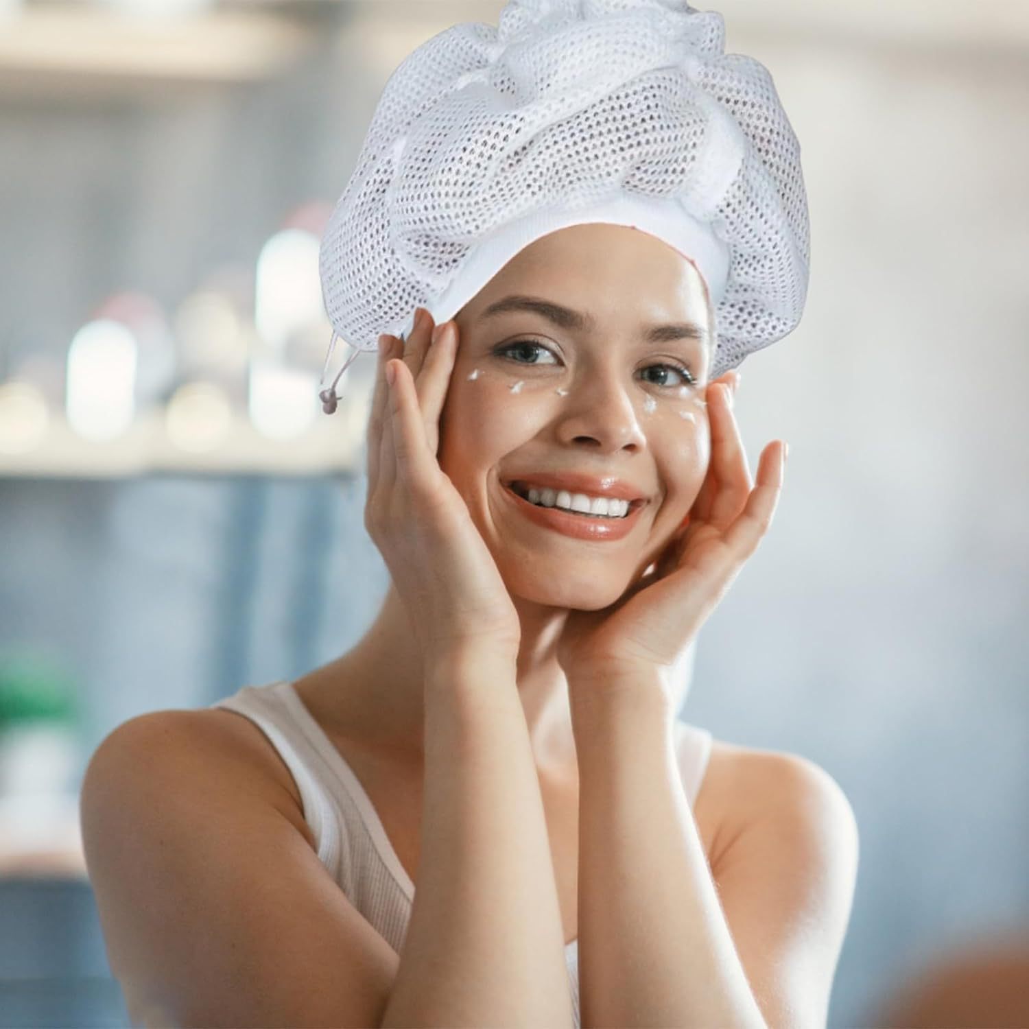 跨境现货 Net plopping bonnet干发帽 卷发帽 网口帽带拉绳