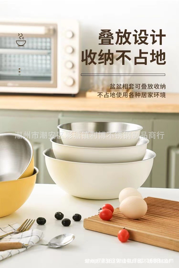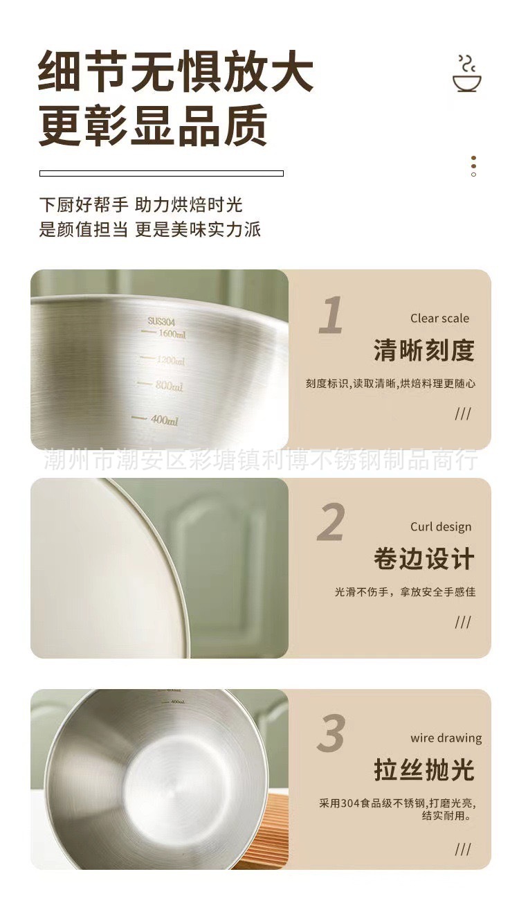沙拉碗304不锈钢打蛋盆日式刻度料理盆家用水果碗搅拌碗调料盆ins