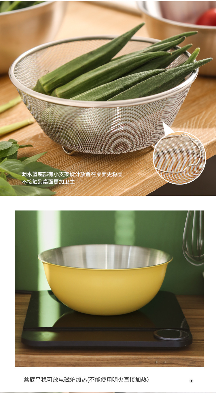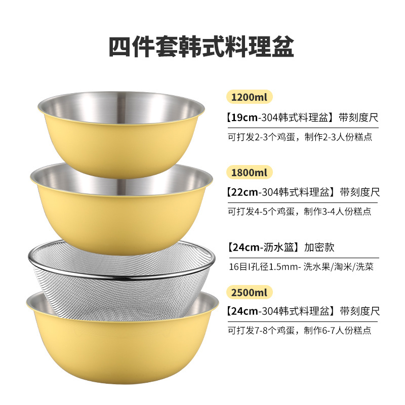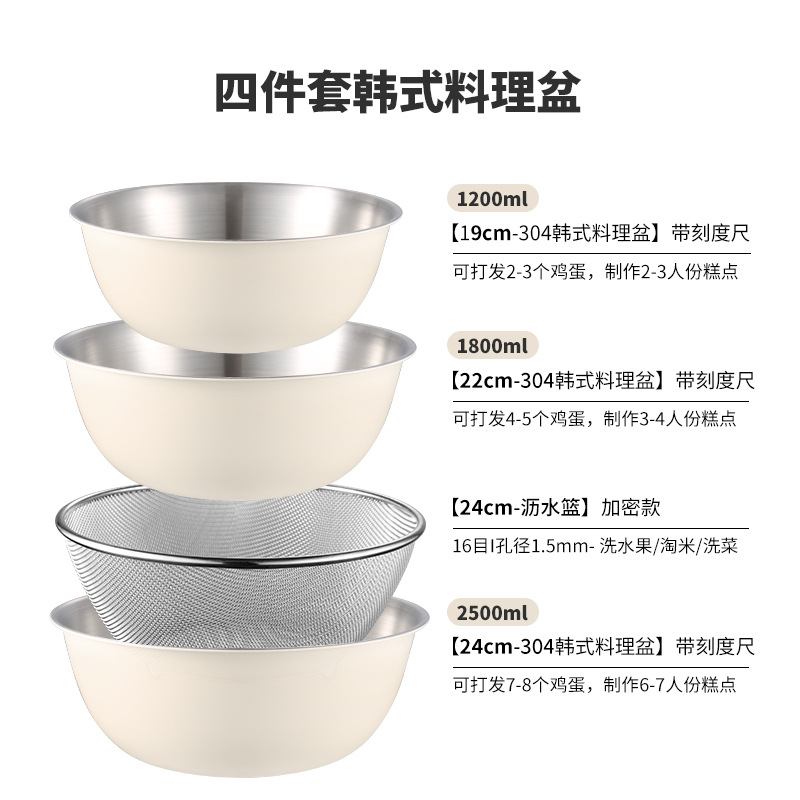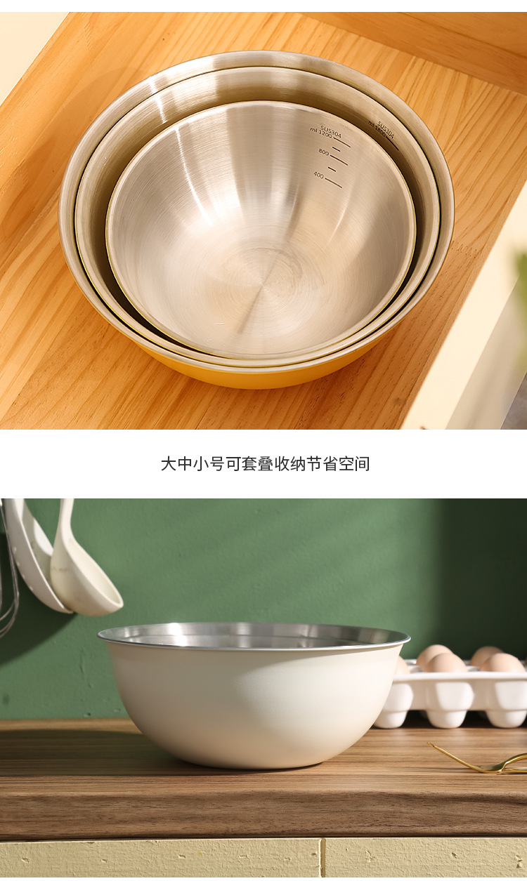 严选304不锈钢料理盆带刻度沙拉盆烘焙打蛋盆沥水篮套装不锈钢盆