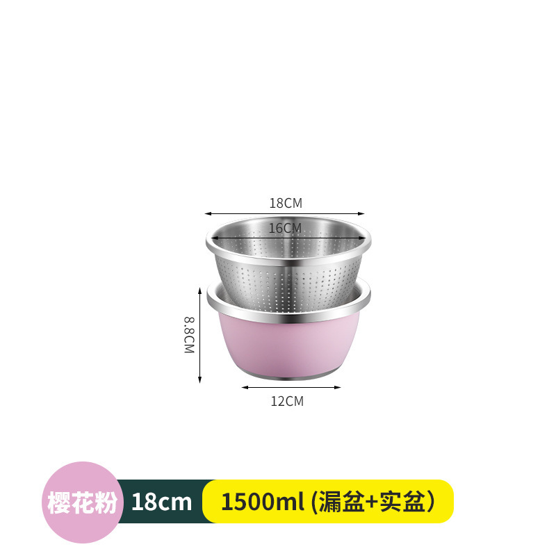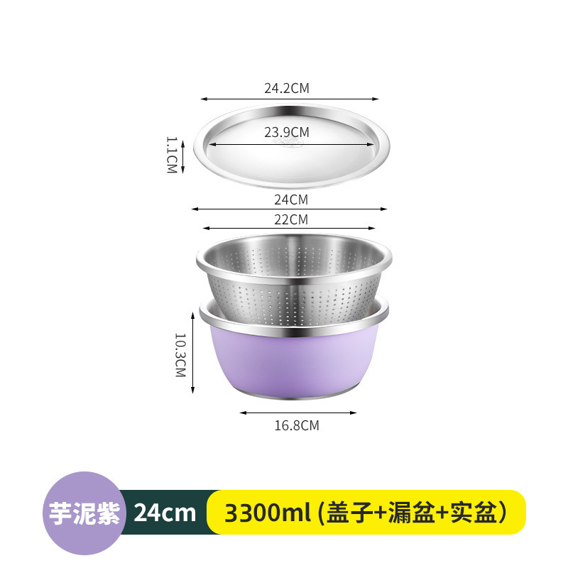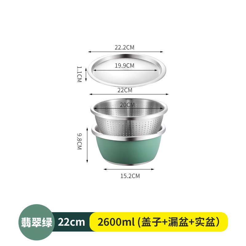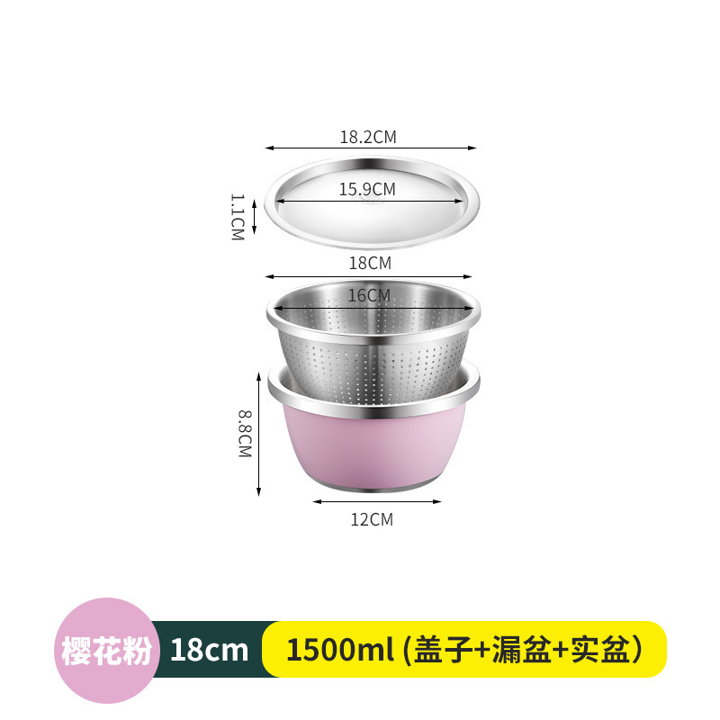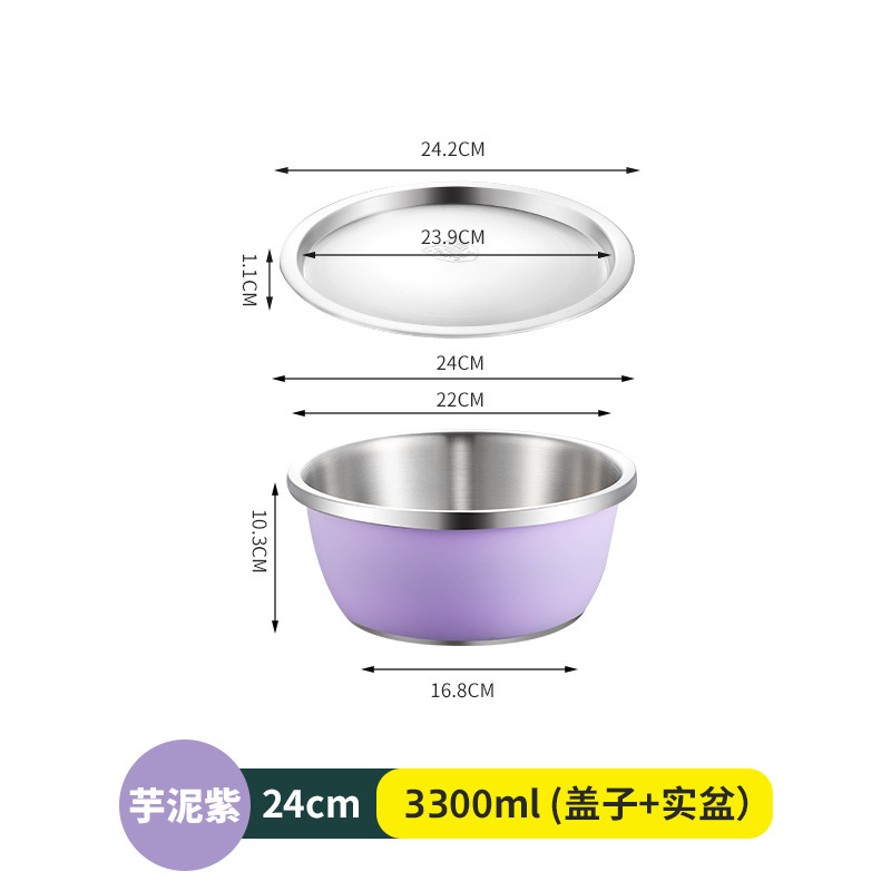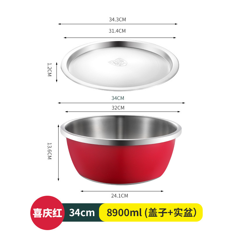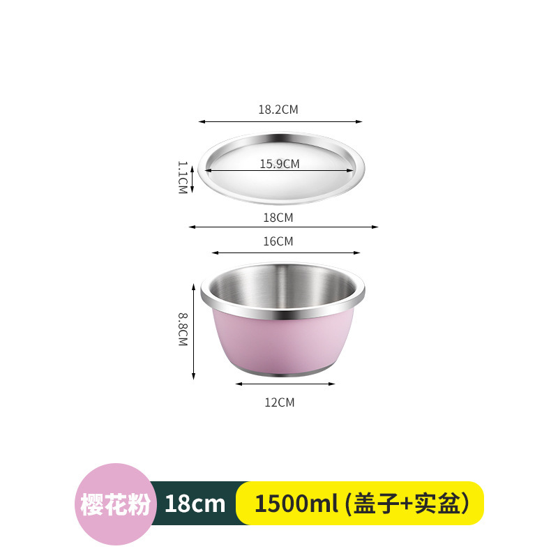 304不锈钢彩色料理盆带盖沙拉盆烘培和面打蛋盆宝宝洗奶瓶沥水盆