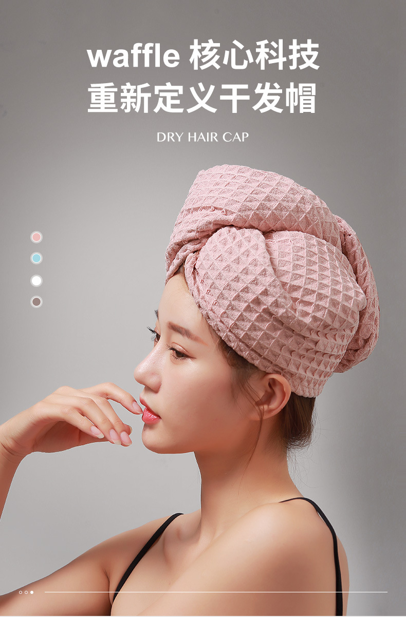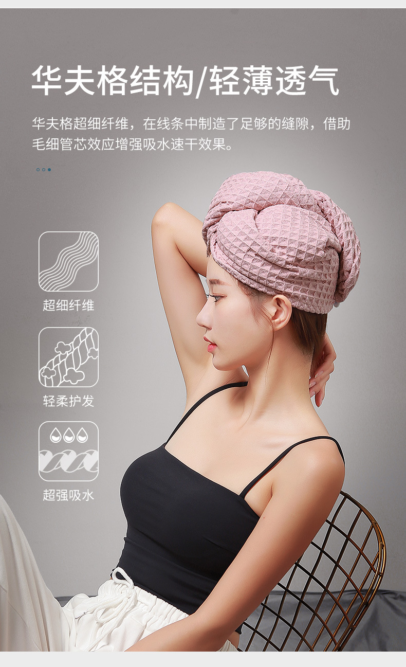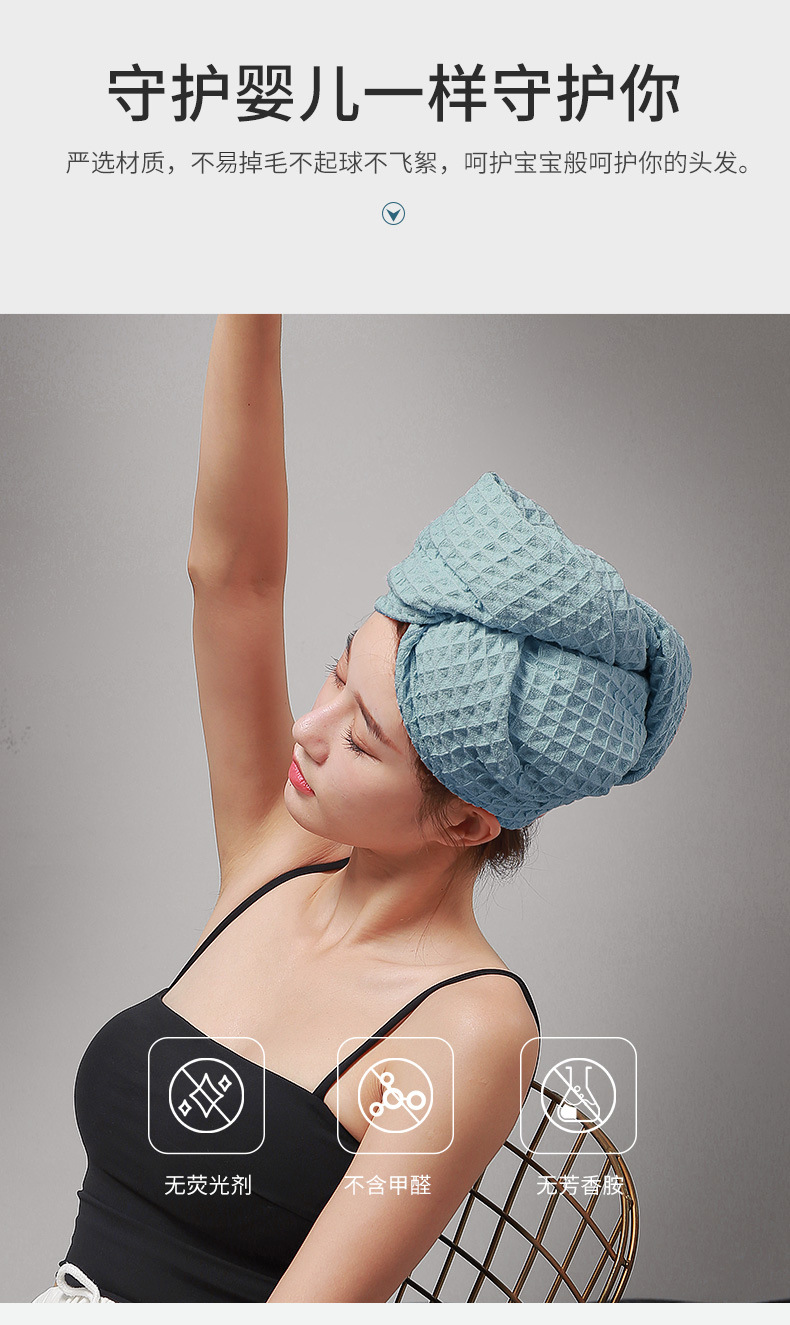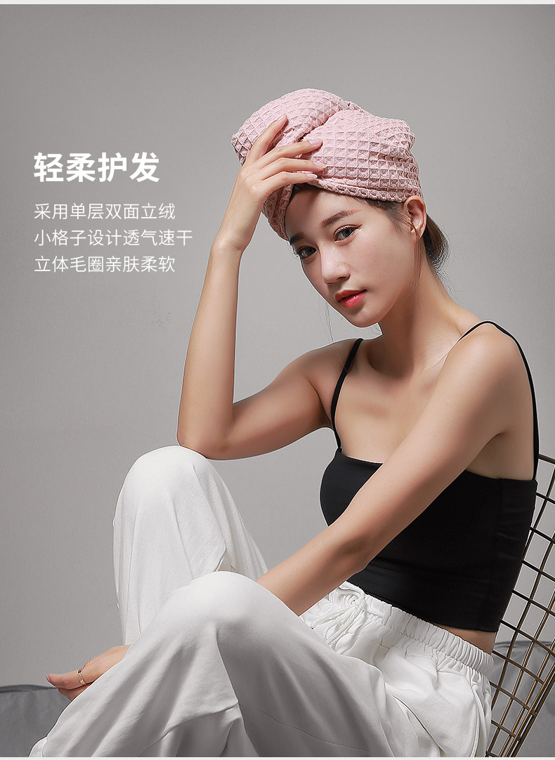 严选跨境新品华夫格干发帽速干吸水干发巾洗头发包头女浴帽擦头巾