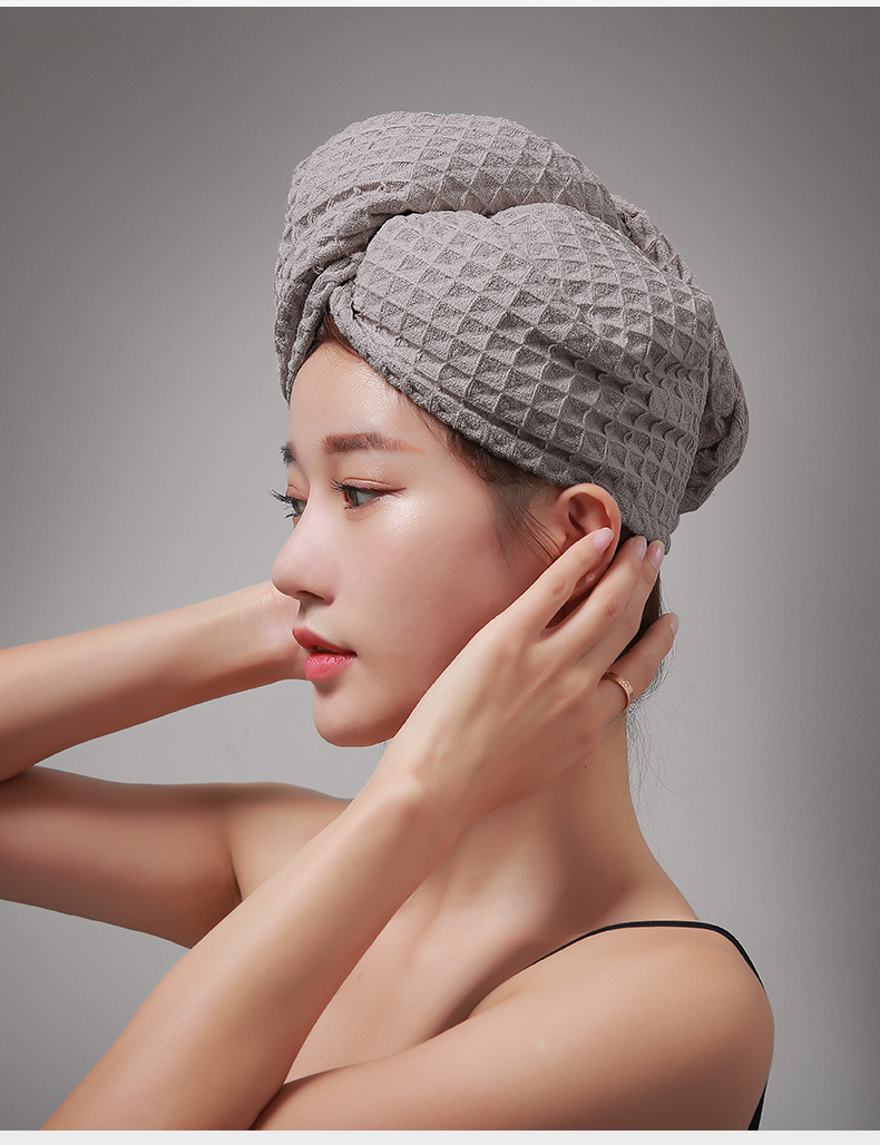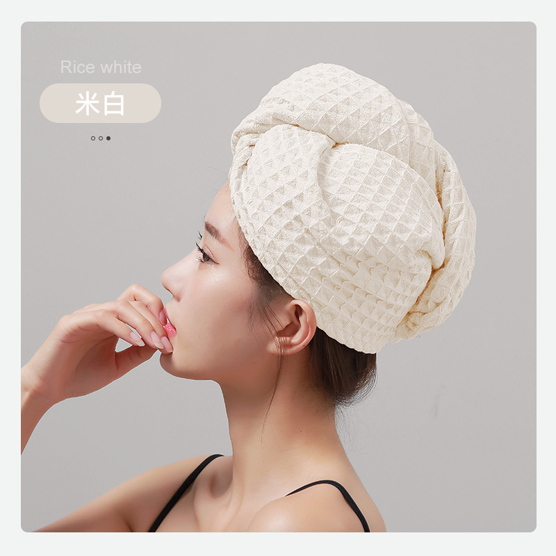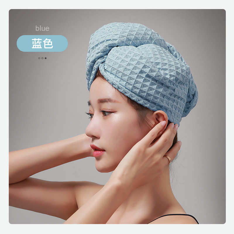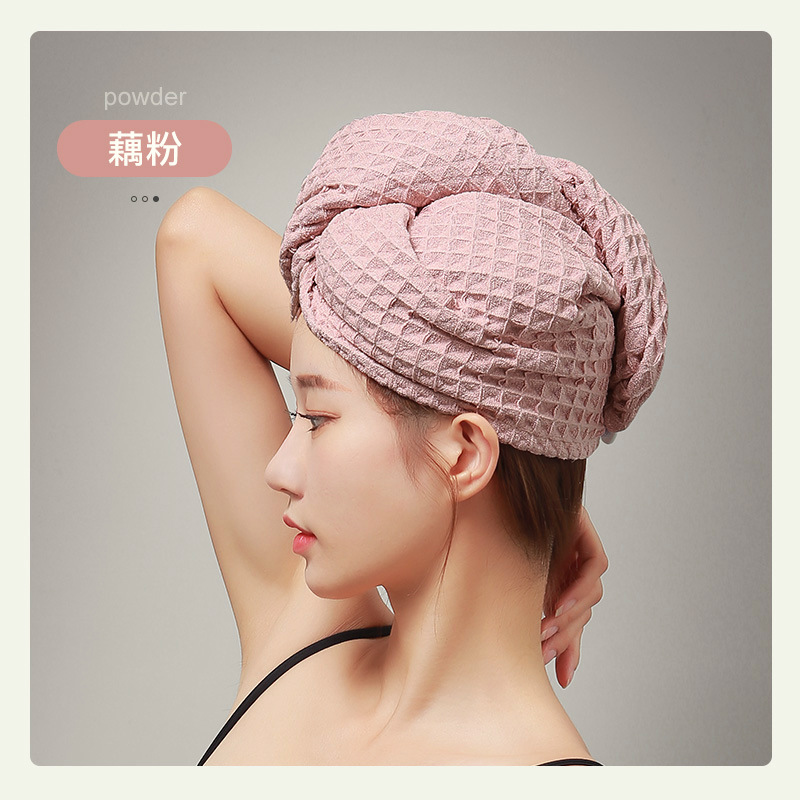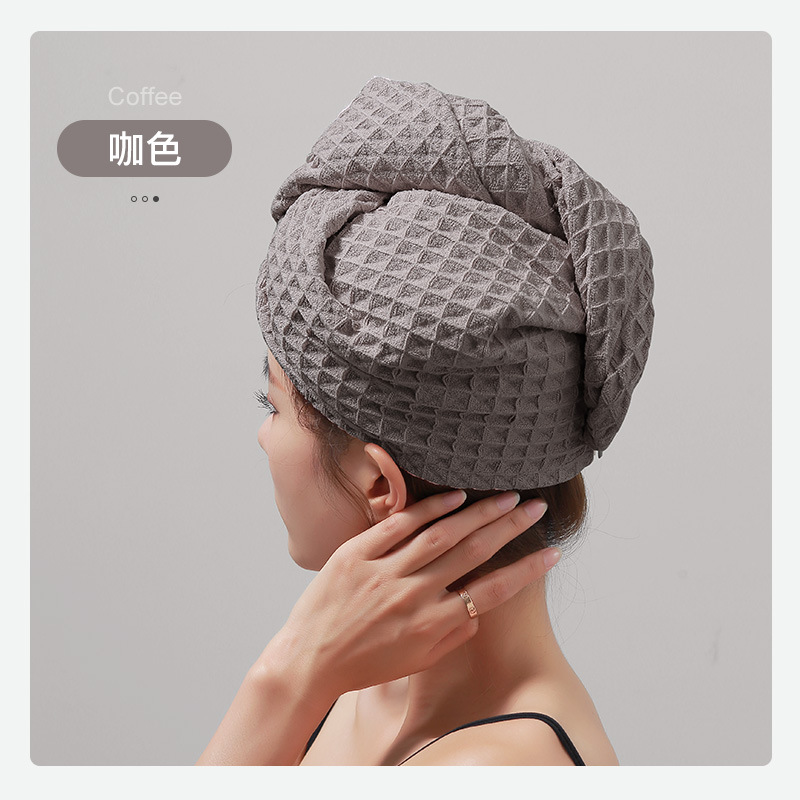 严选跨境新品华夫格干发帽速干吸水干发巾洗头发包头女浴帽擦头巾