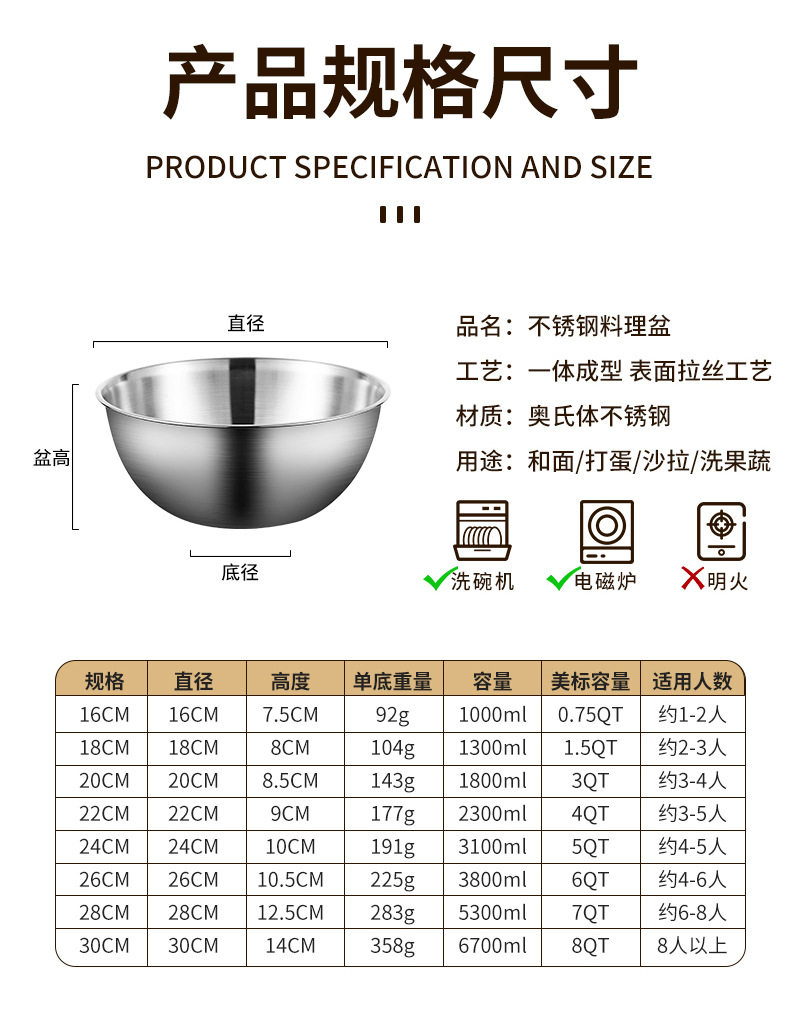 加厚不锈钢家用打蛋盆多用途厨具料理盆厨房烘焙不锈钢和面盆批发