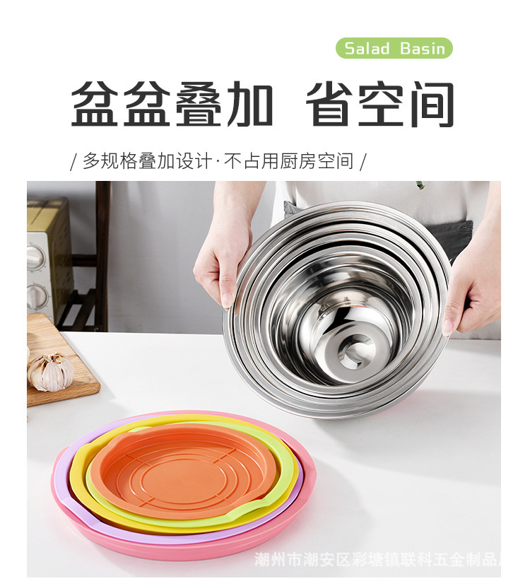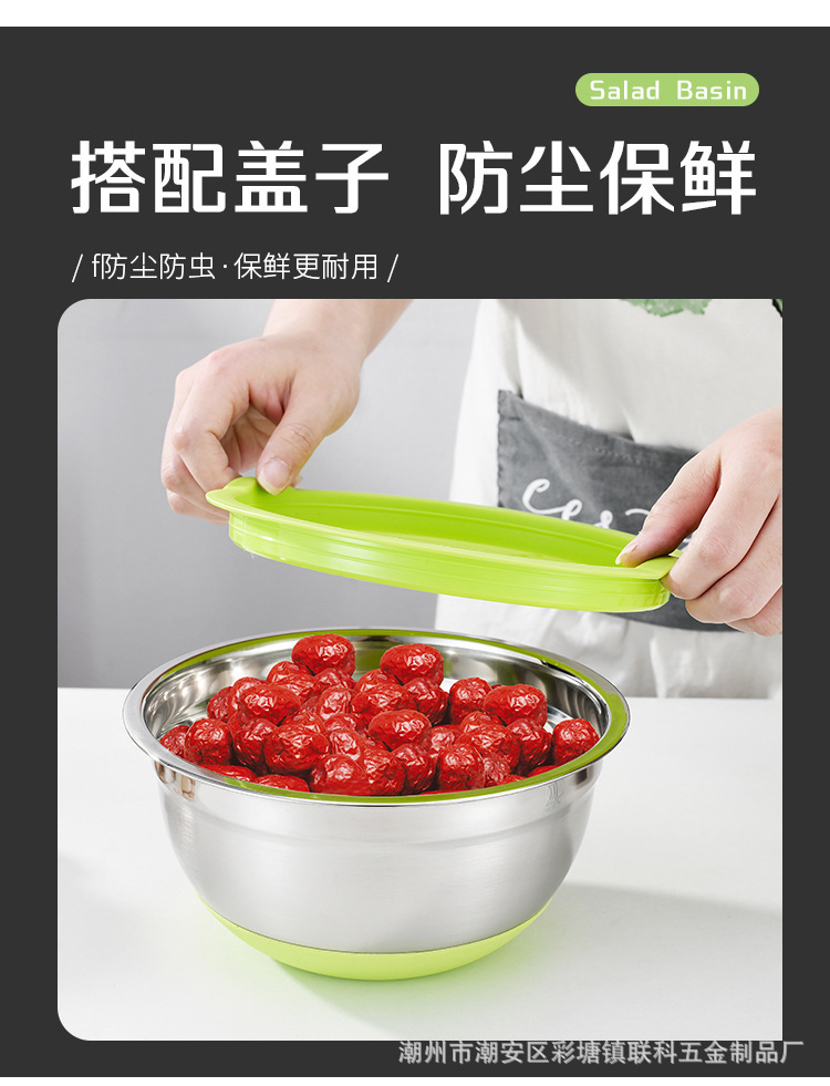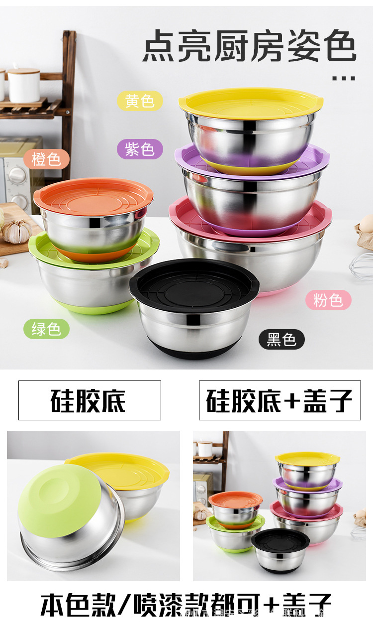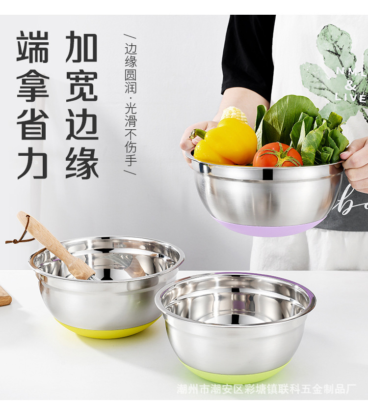 不锈钢沙拉盆打蛋盆硅胶底和面盆防滑搅拌碗多功能料理碗烘培套装