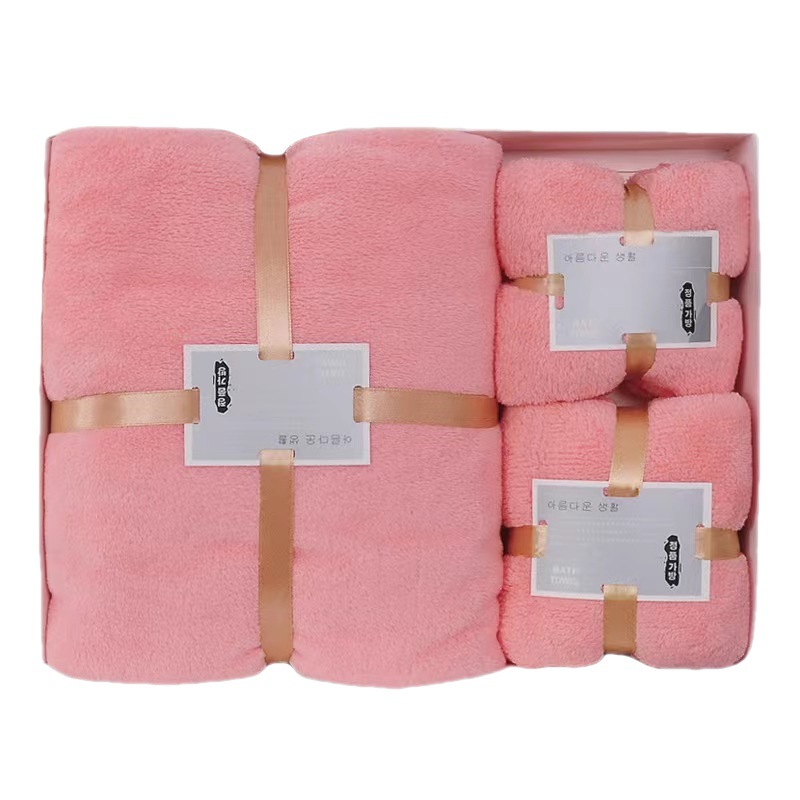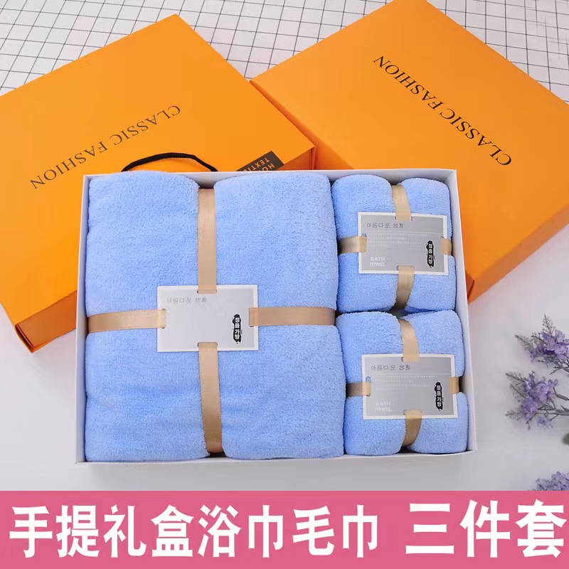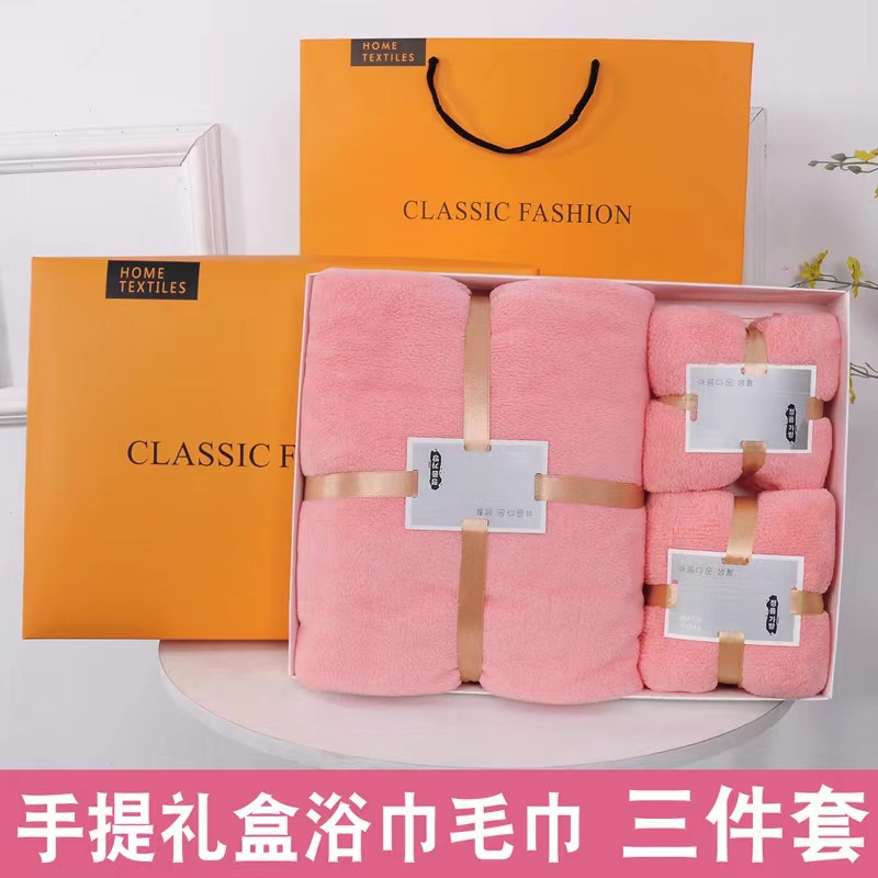 240克厚款珊瑚绒浴巾毛巾礼盒吸水广告结婚伴手礼盒礼毛巾三件套