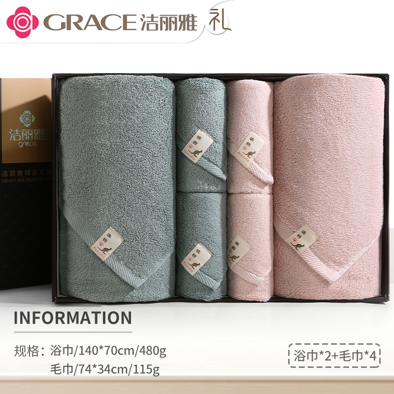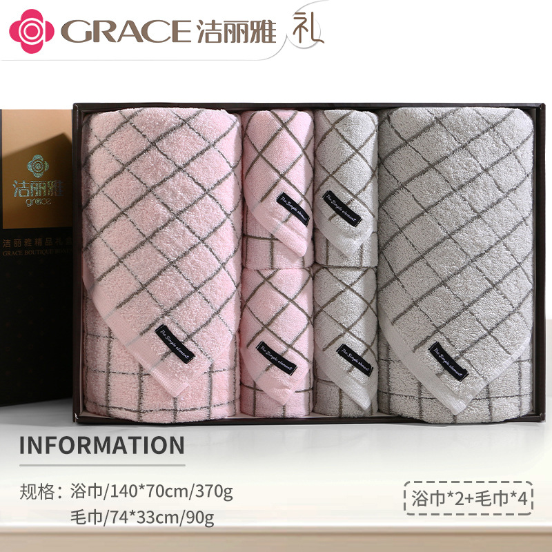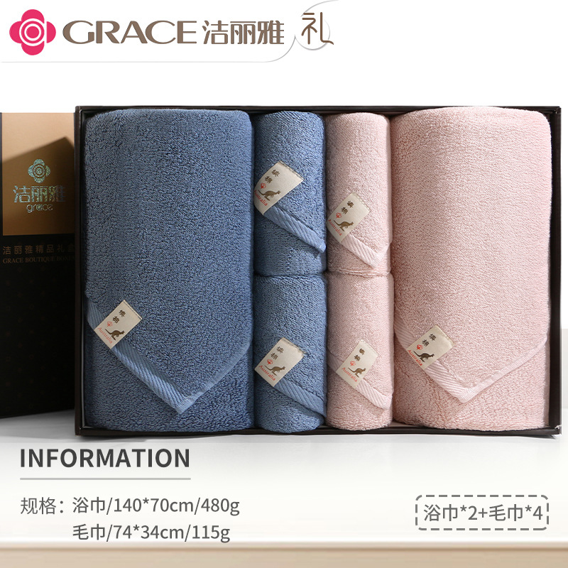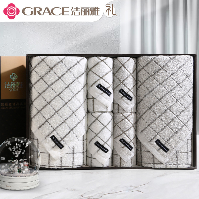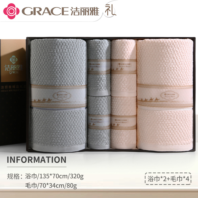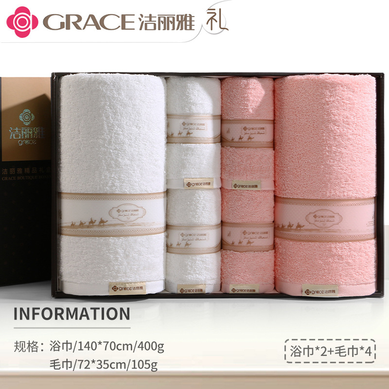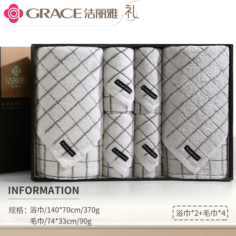 洁丽雅毛巾浴巾纯棉六件套礼盒装全棉洗脸家用男女商务婚庆伴手礼