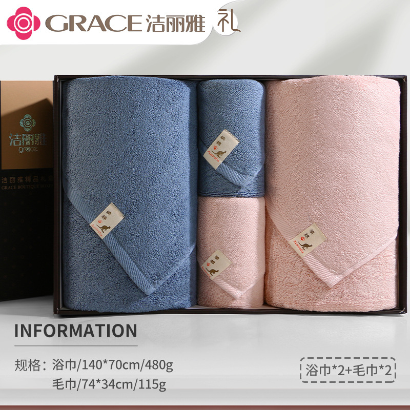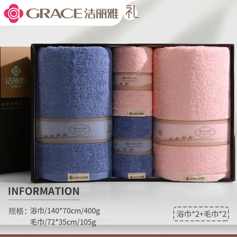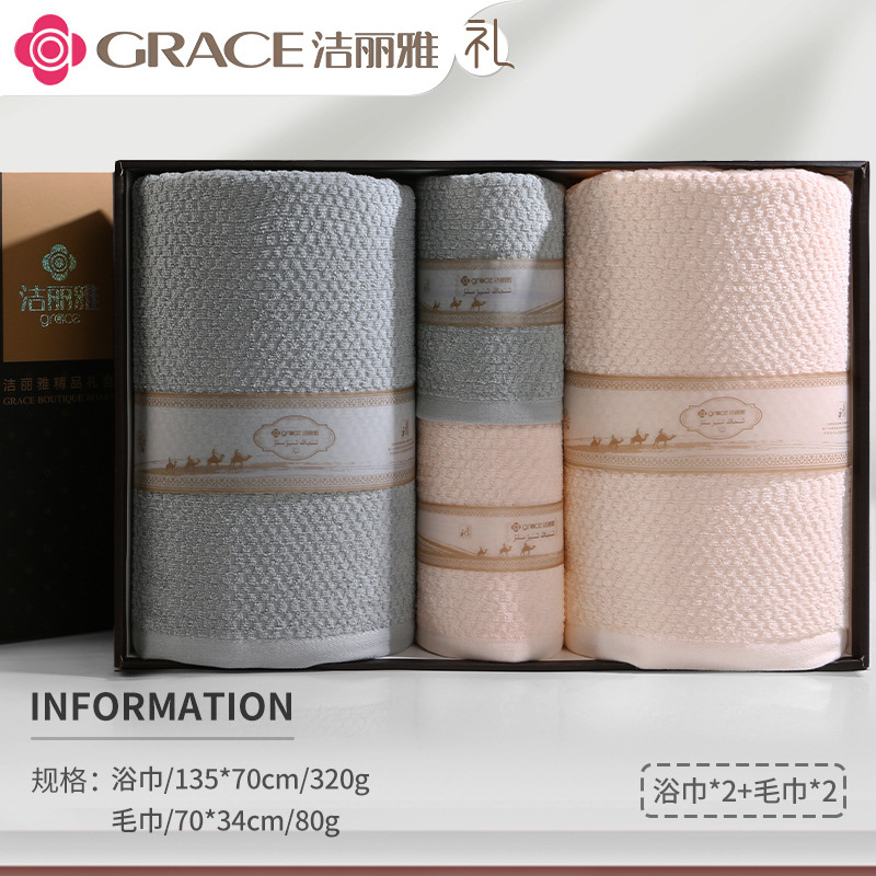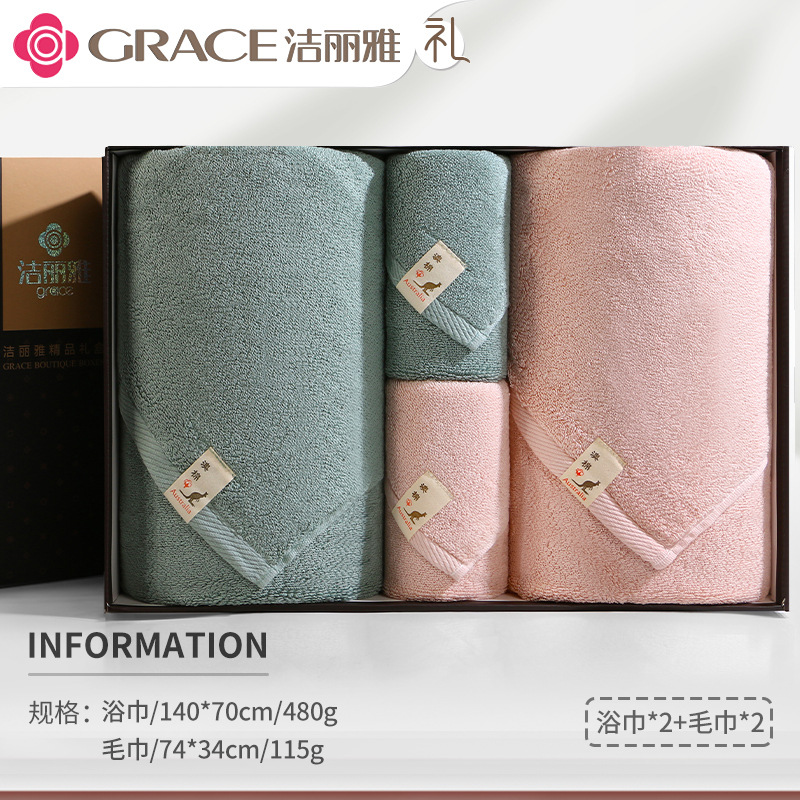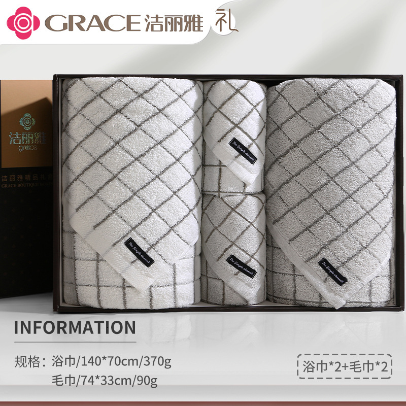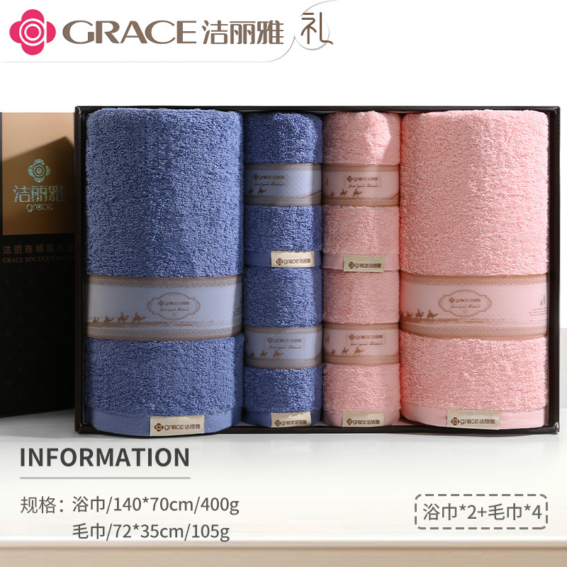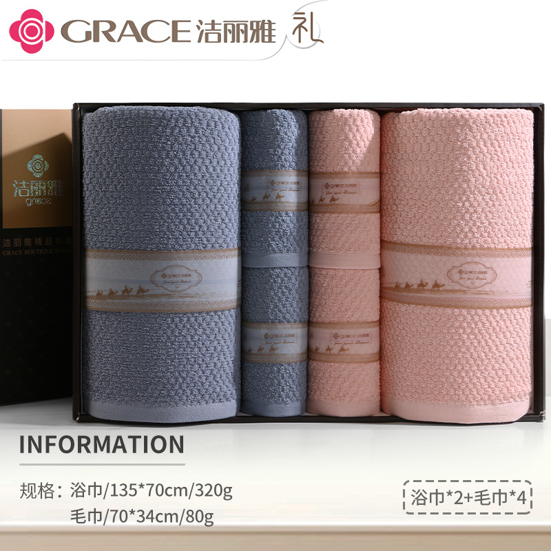 洁丽雅毛巾浴巾纯棉六件套礼盒装全棉洗脸家用男女商务婚庆伴手礼