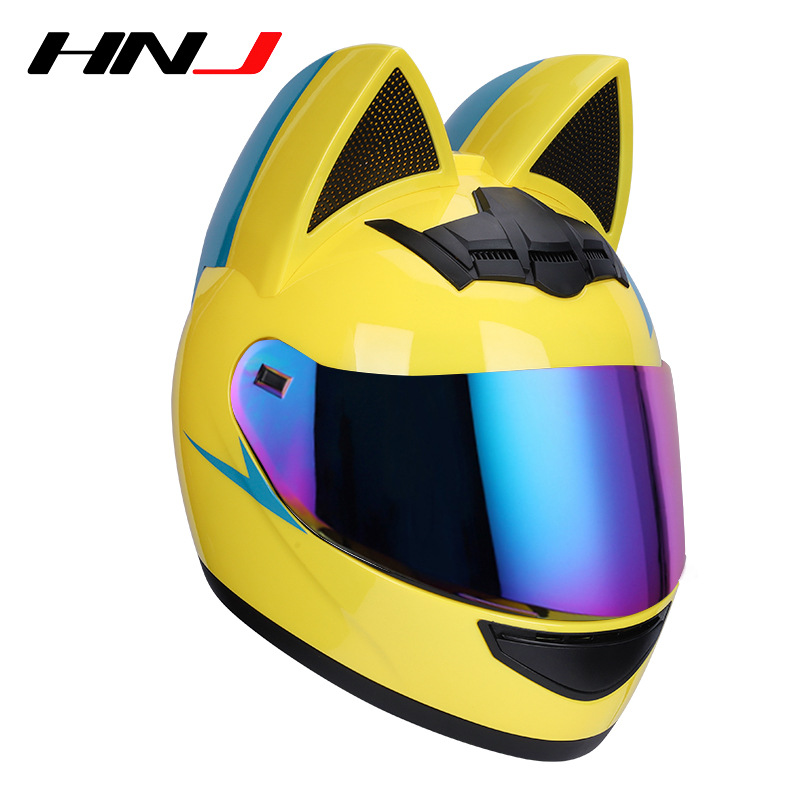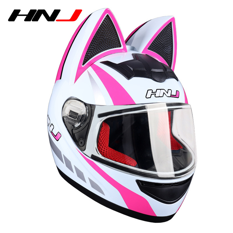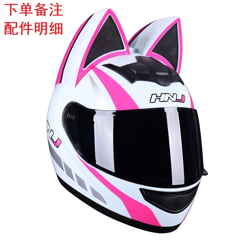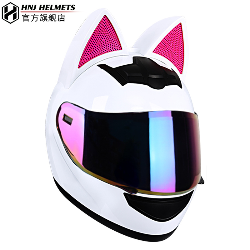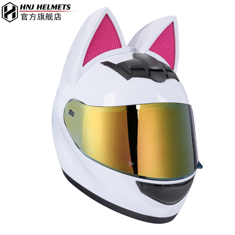 厂家直销摩托车头盔女生电动车猫耳朵全盔四季通用骑士机车头盔