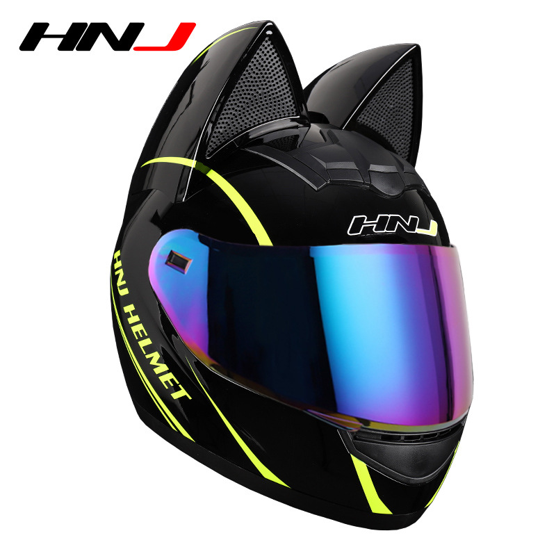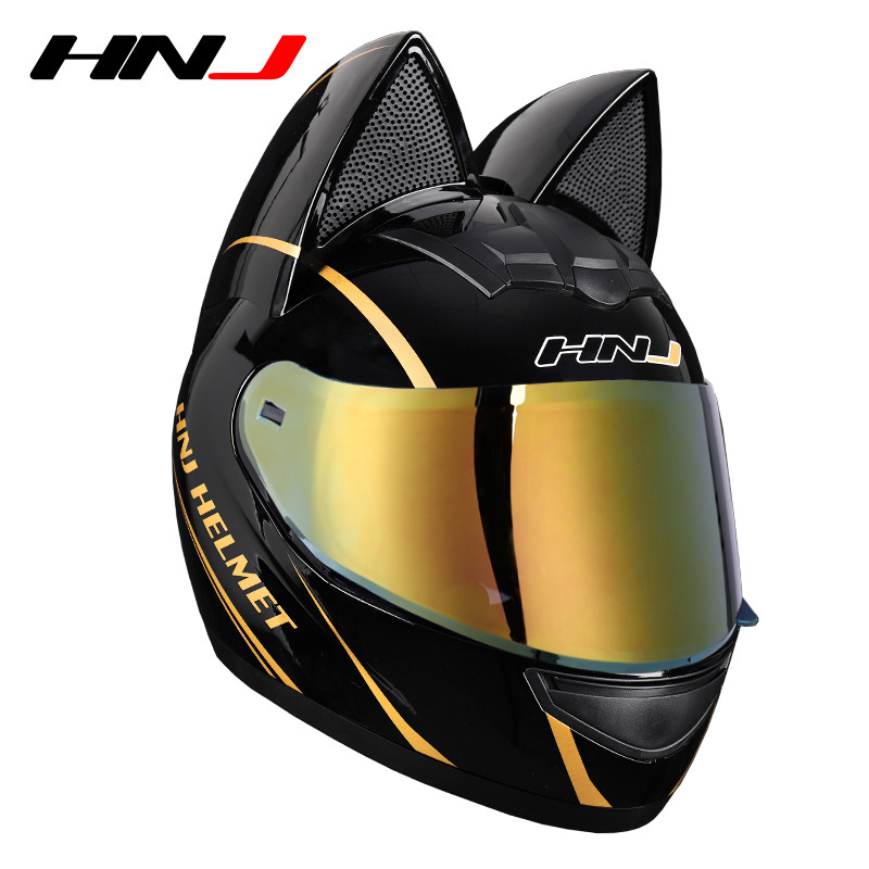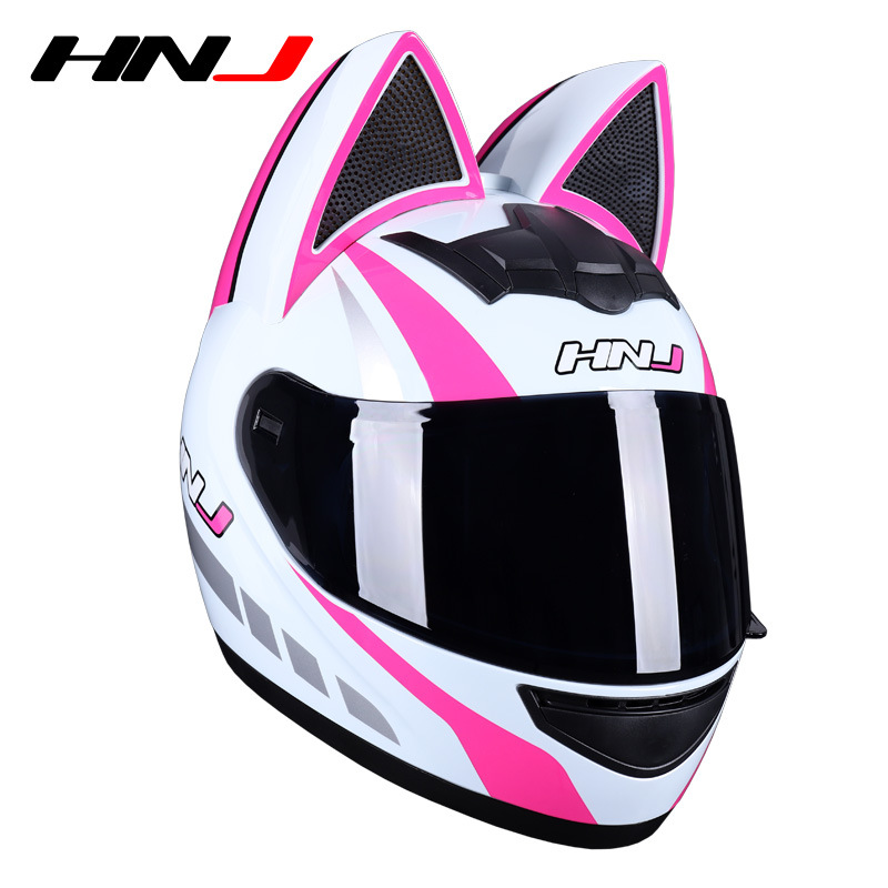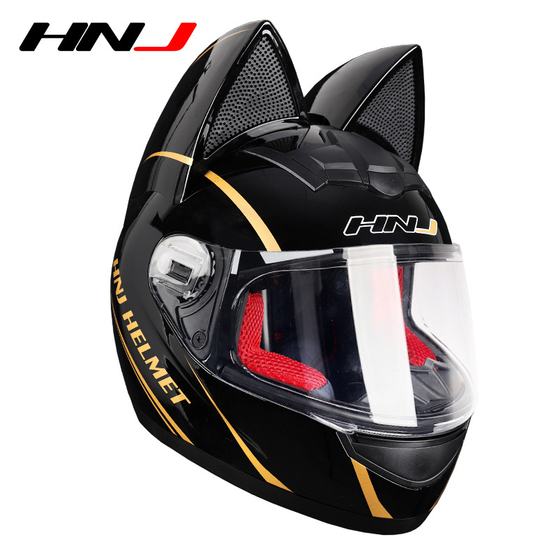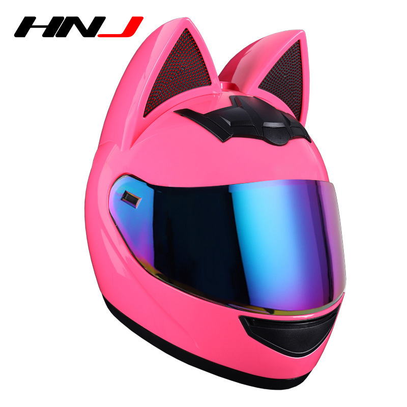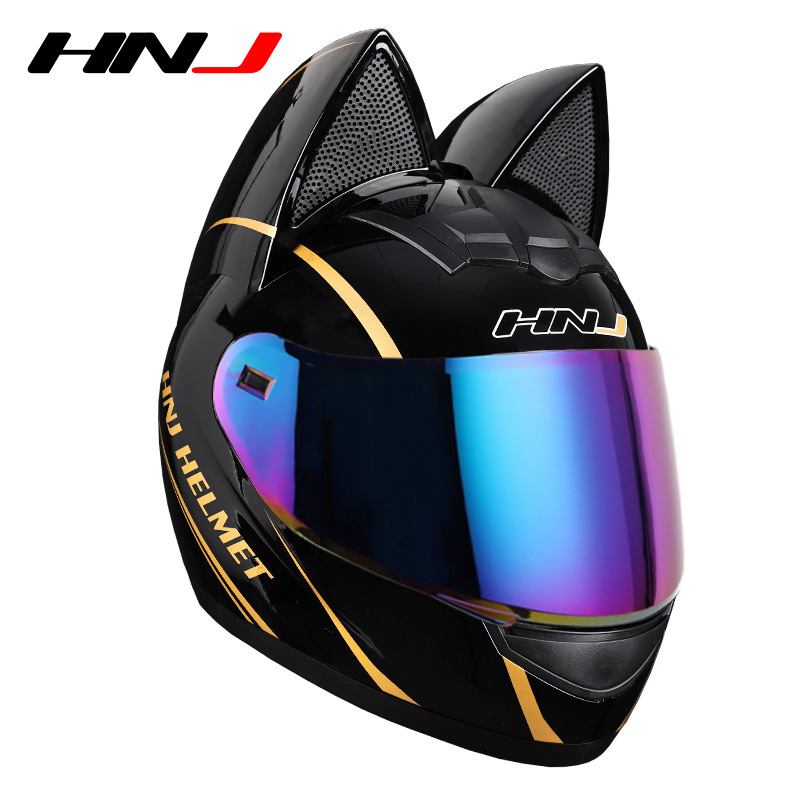 厂家直销摩托车头盔女生电动车猫耳朵全盔四季通用骑士机车头盔