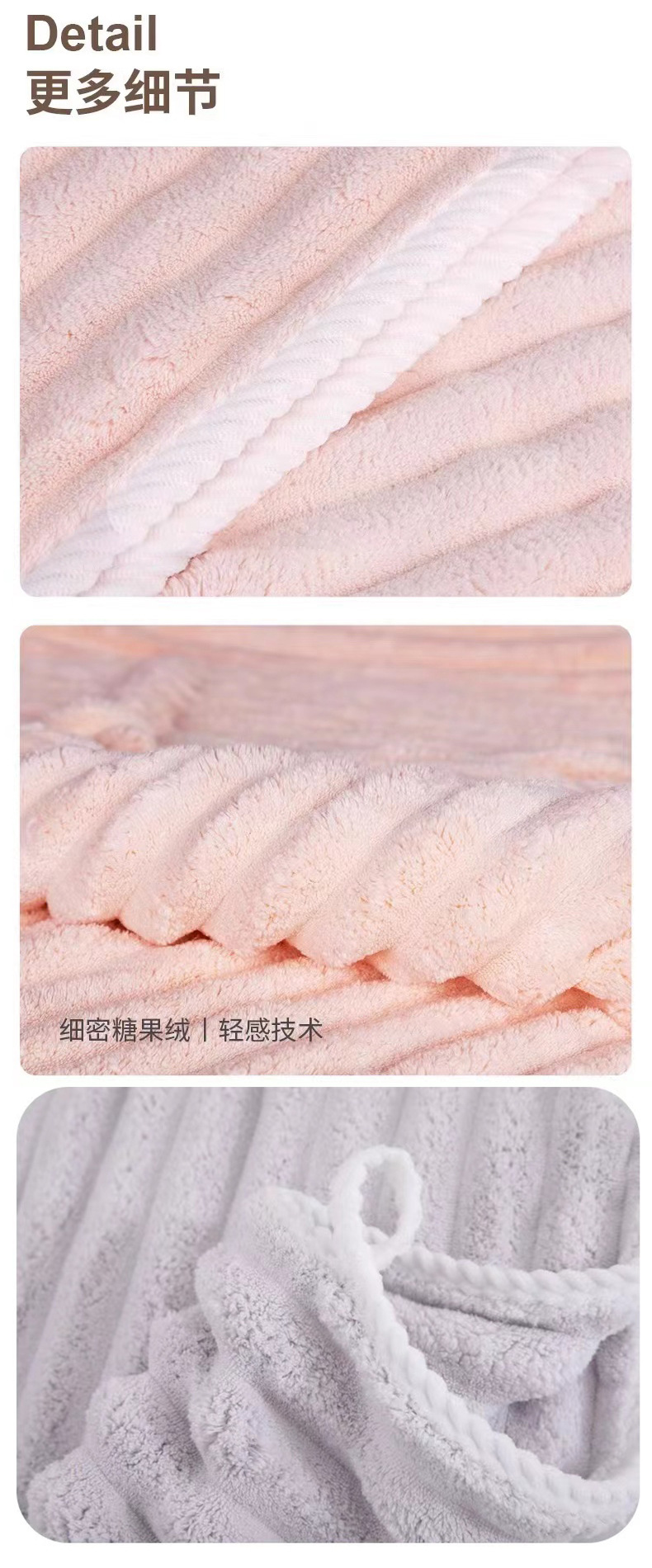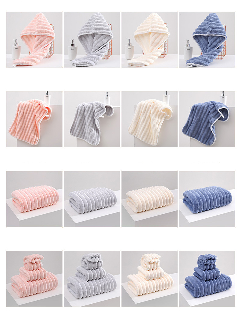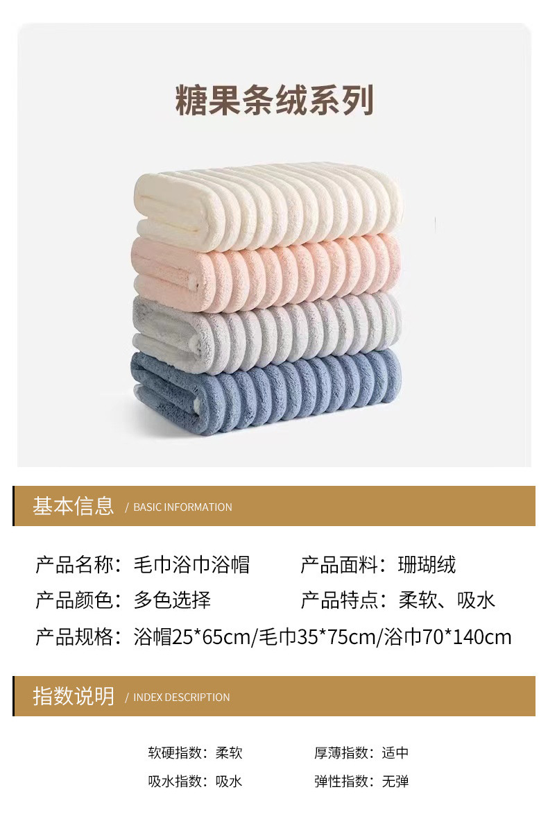 糖果条绒毛巾套装柔软吸水素色家用珊瑚绒干发帽洗澡浴巾三件套