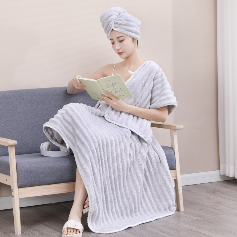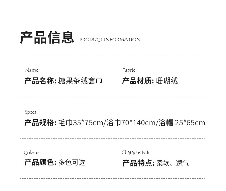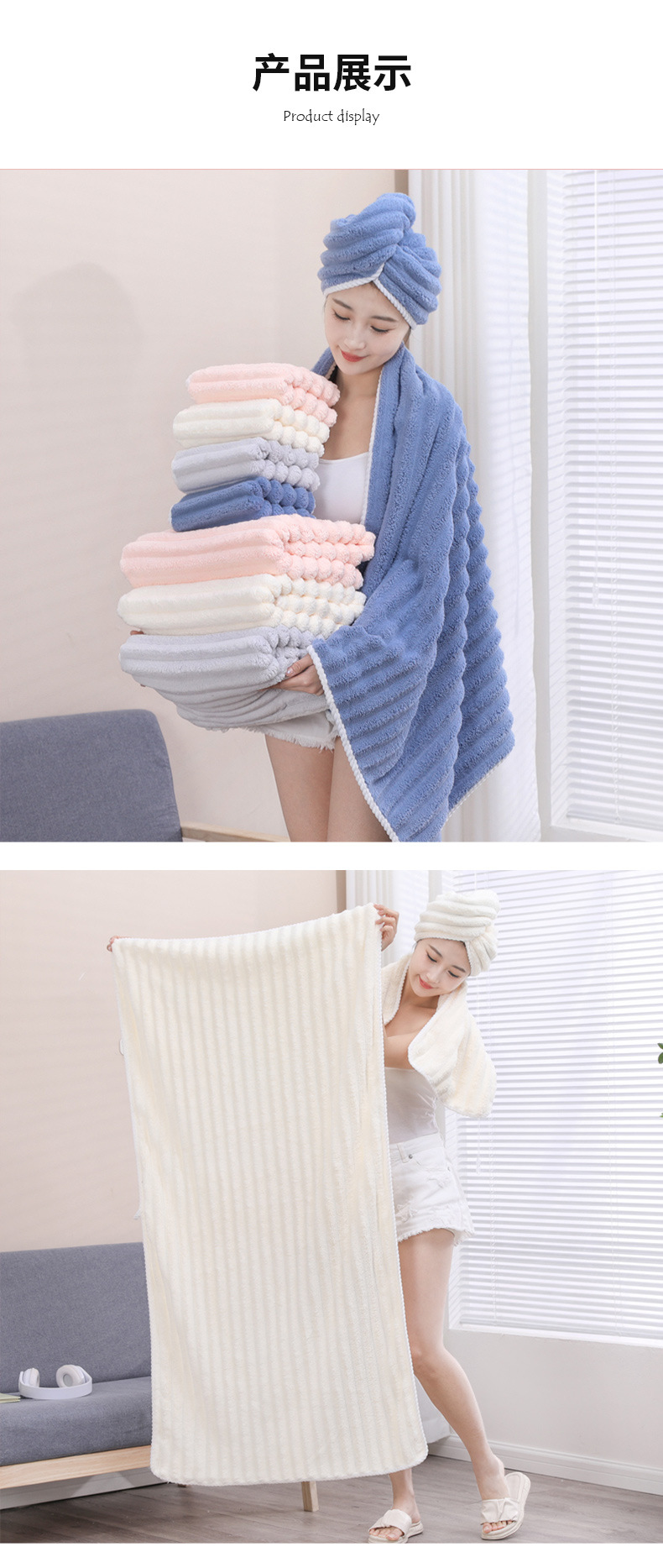 糖果条绒浴巾珊瑚绒毛巾套装加厚吸水快干家居情侣日用三件套批发