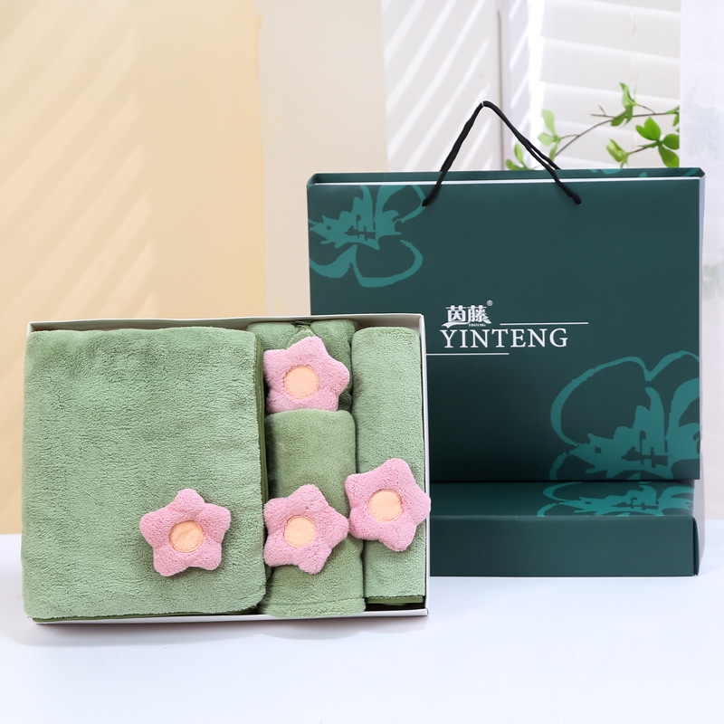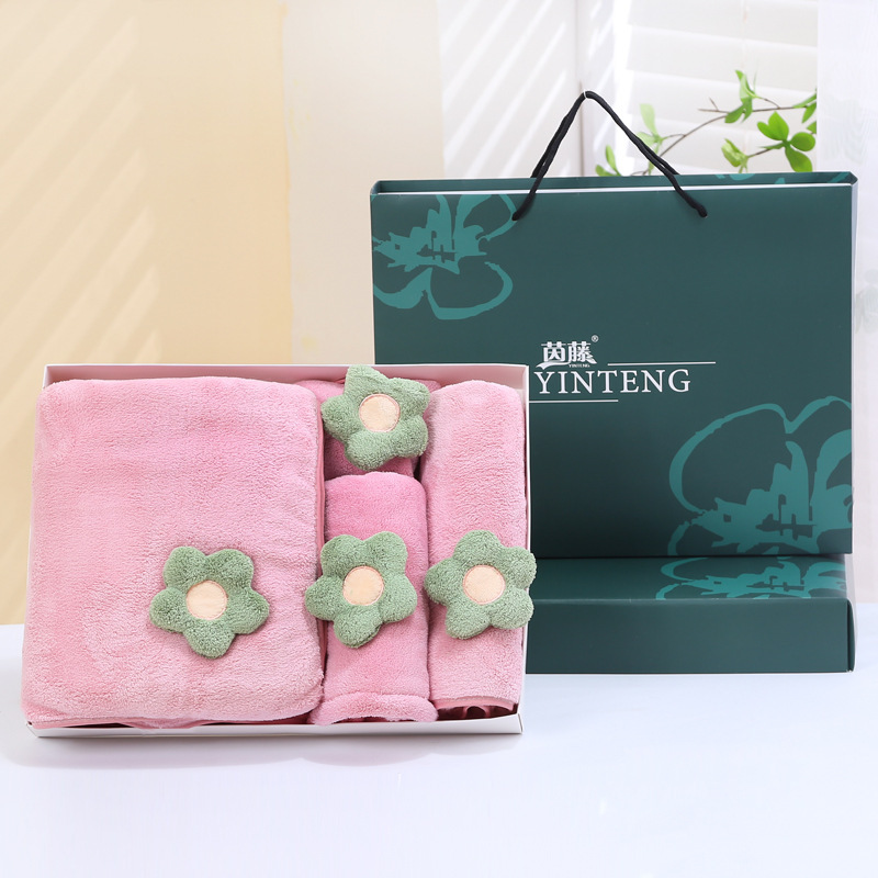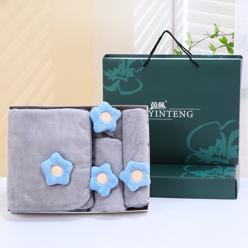 珊瑚绒毛巾浴巾礼盒套装定LOGO柔软吸水四件套伴手礼公司礼品毛巾