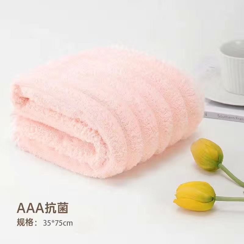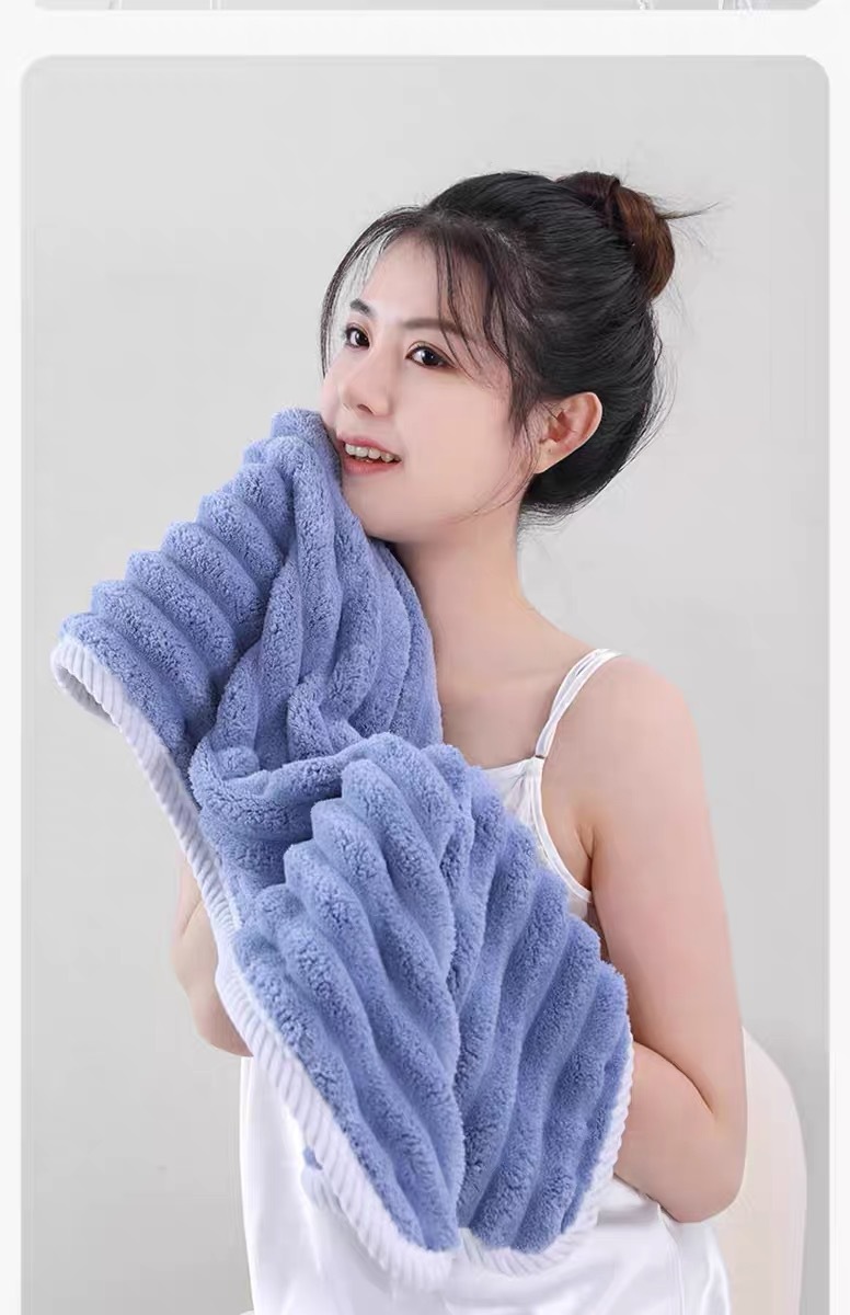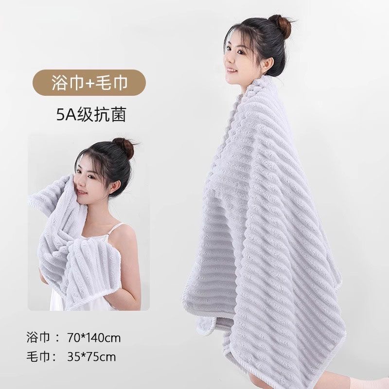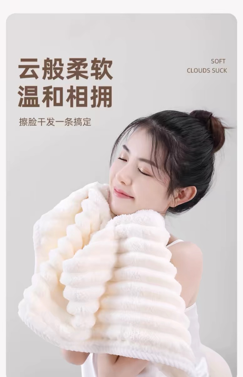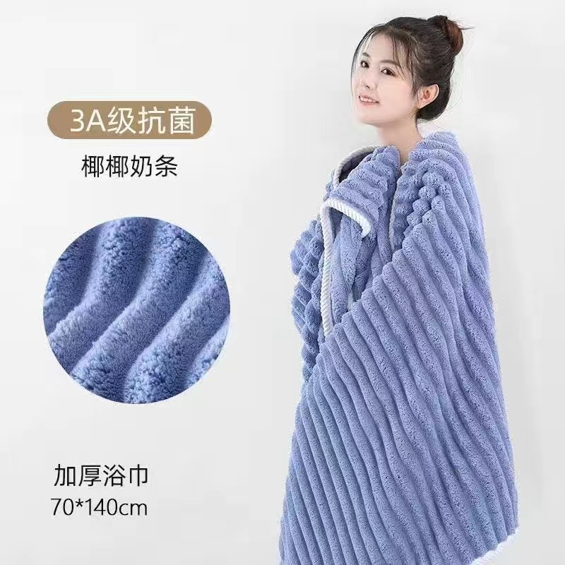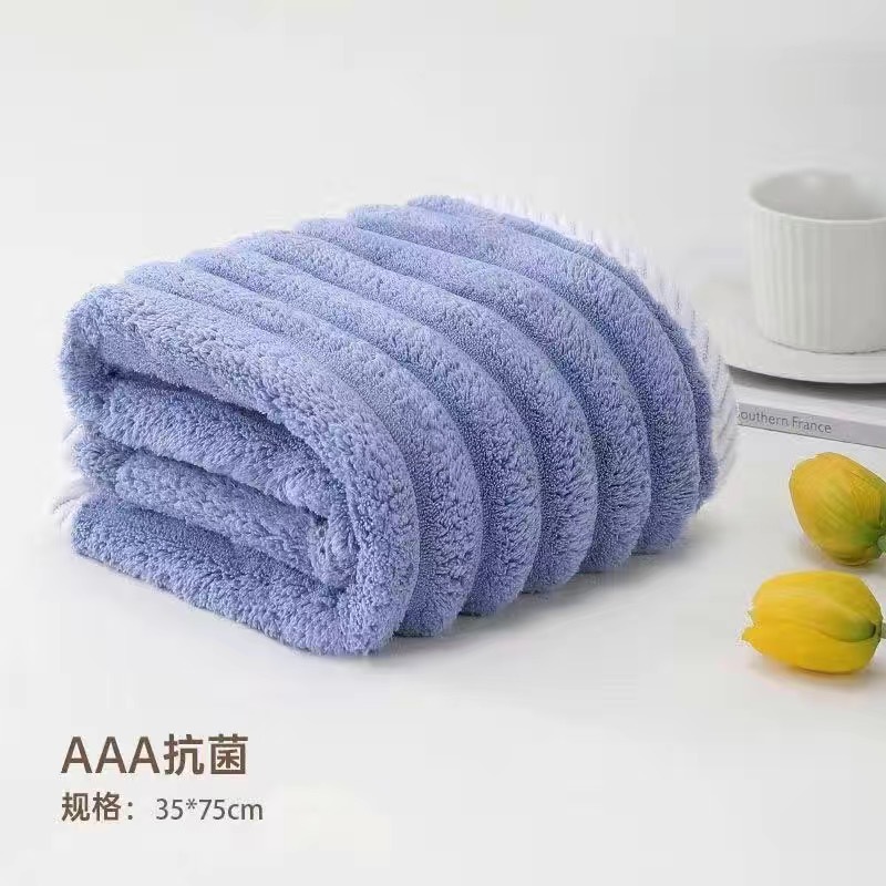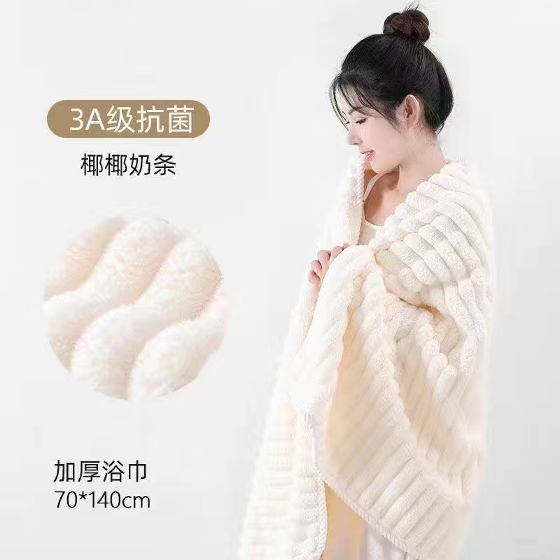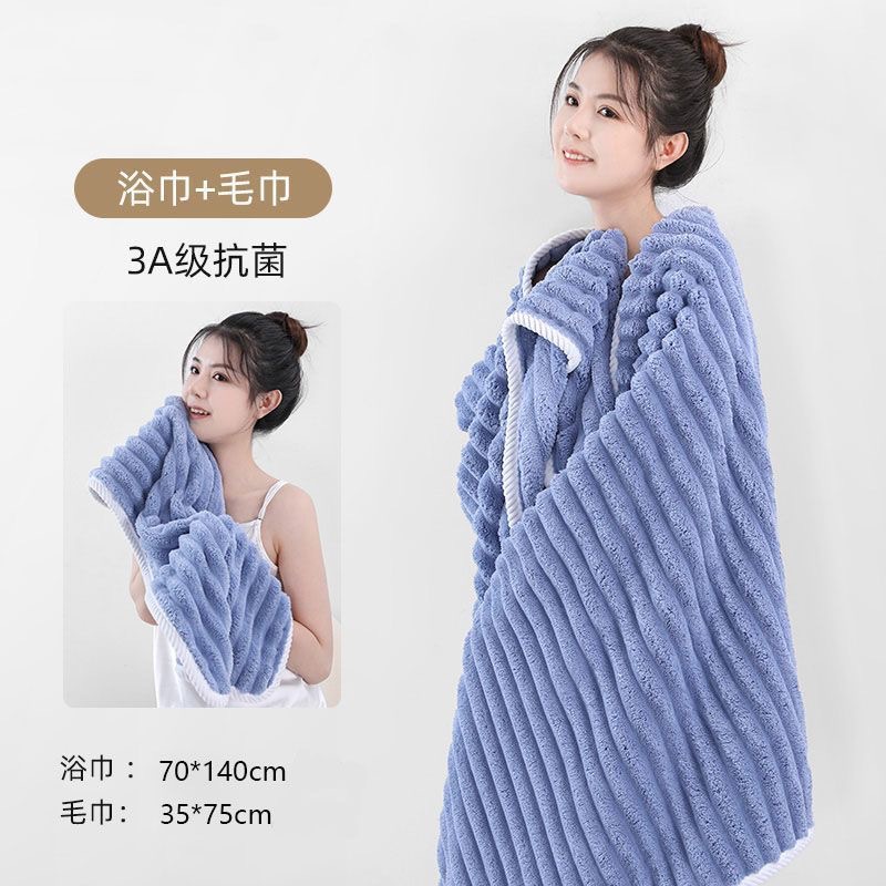 珊瑚绒毛巾浴巾干发帽套装条纹糖果条加大加厚柔软吸水家用跨境
