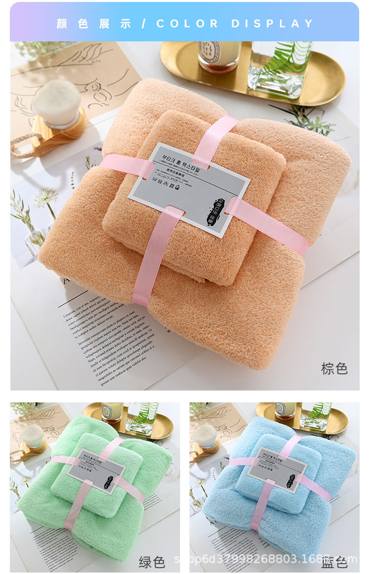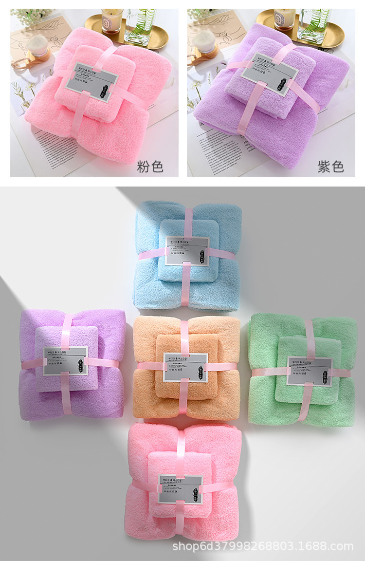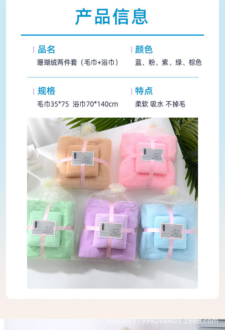 厂家现货高密珊瑚绒毛巾浴巾子母套巾加厚柔软吸水礼品毛巾两件套