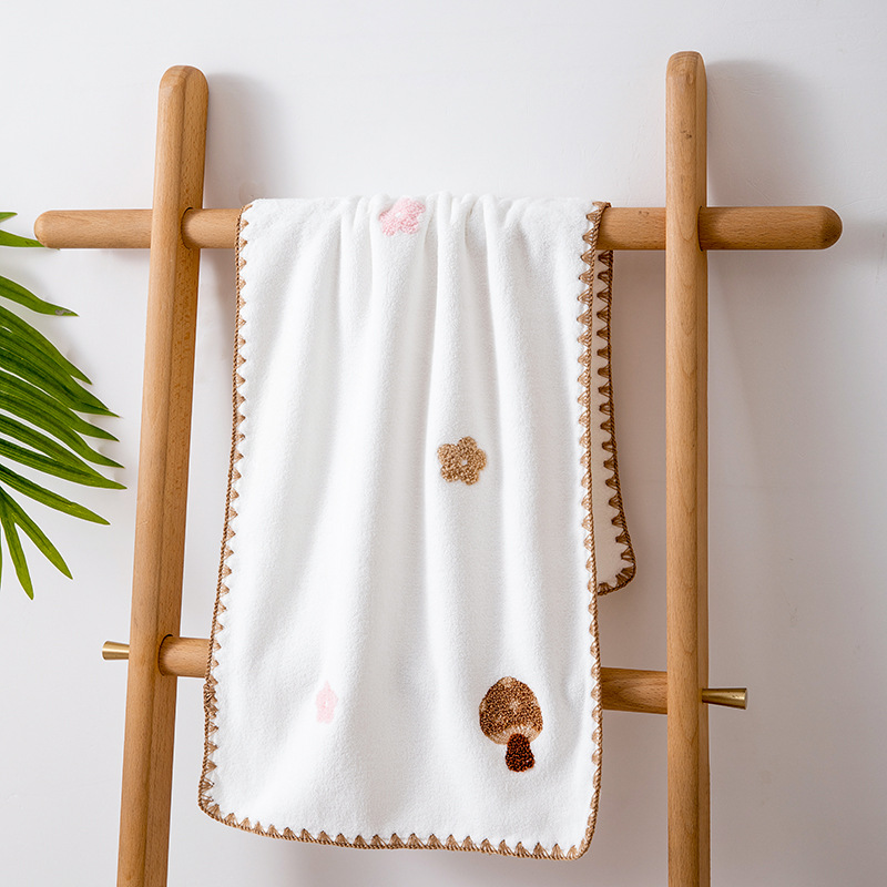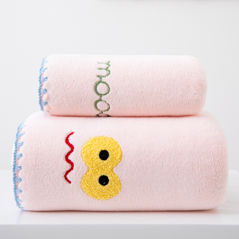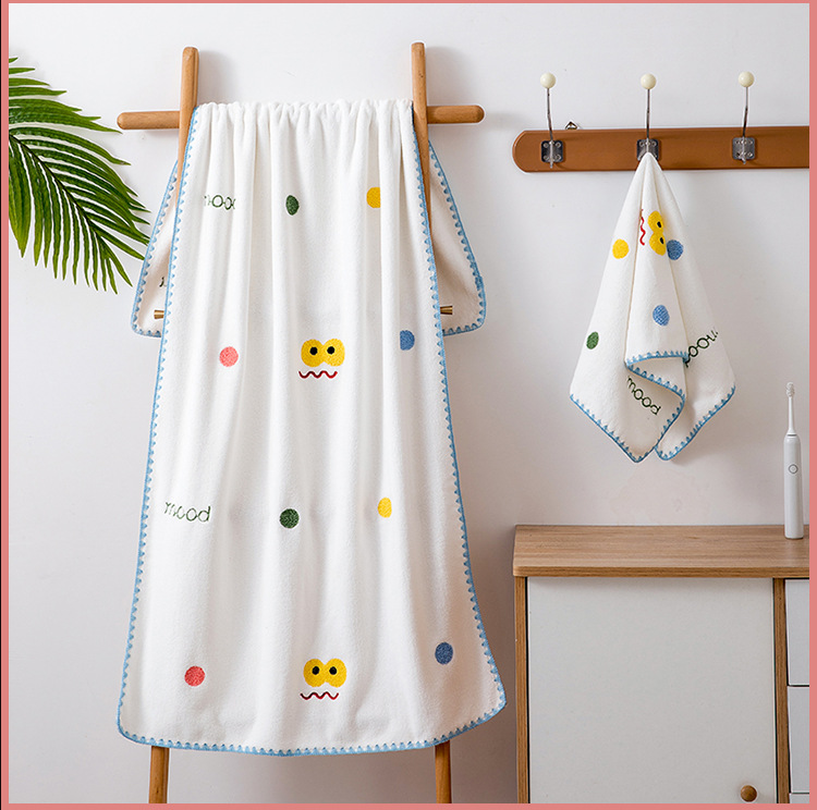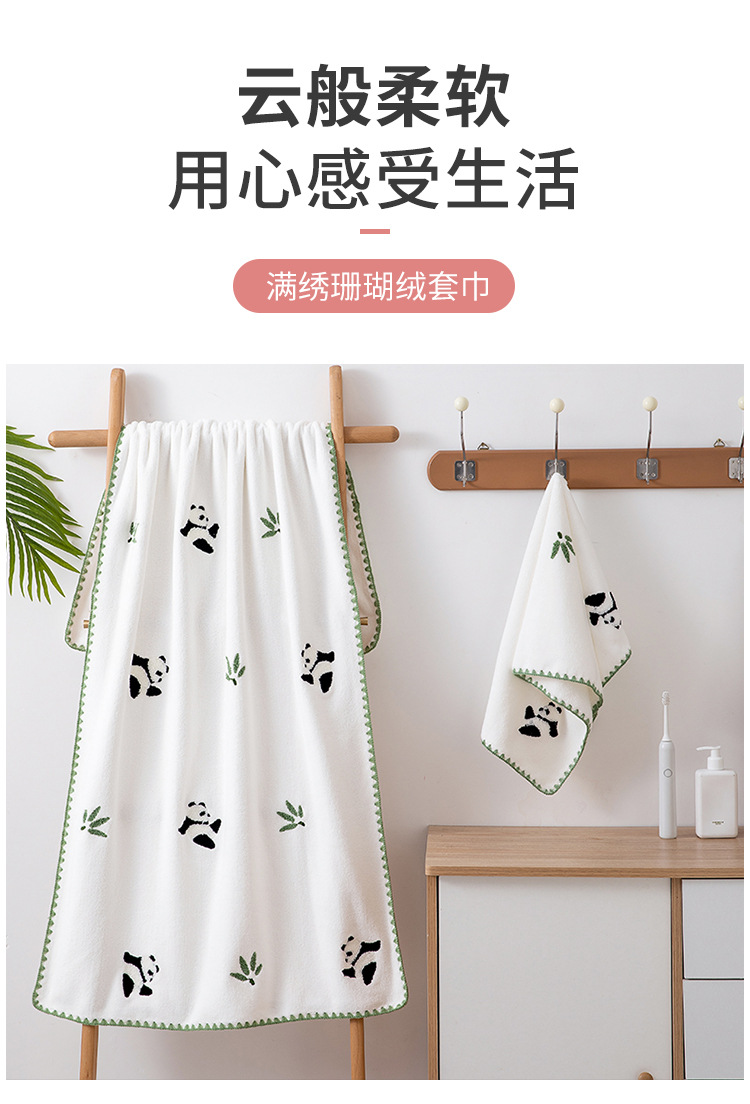 满绣珊瑚绒套巾宝宝加厚吸水高密珊瑚绒浴巾套装伴手礼毛巾批发