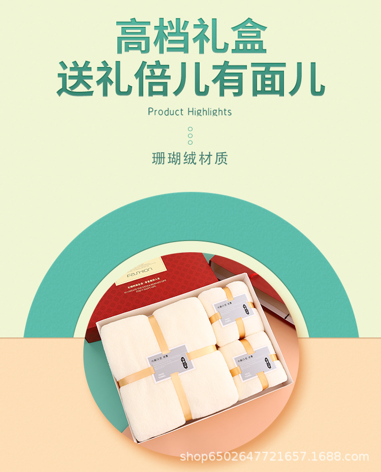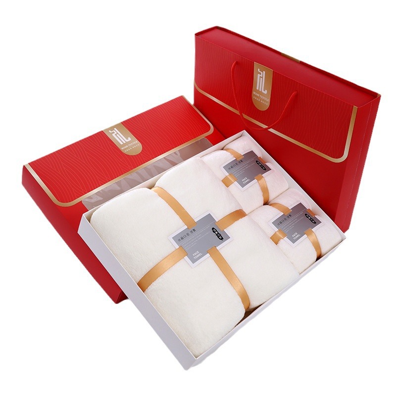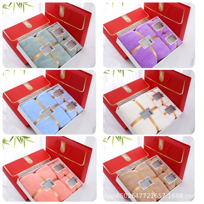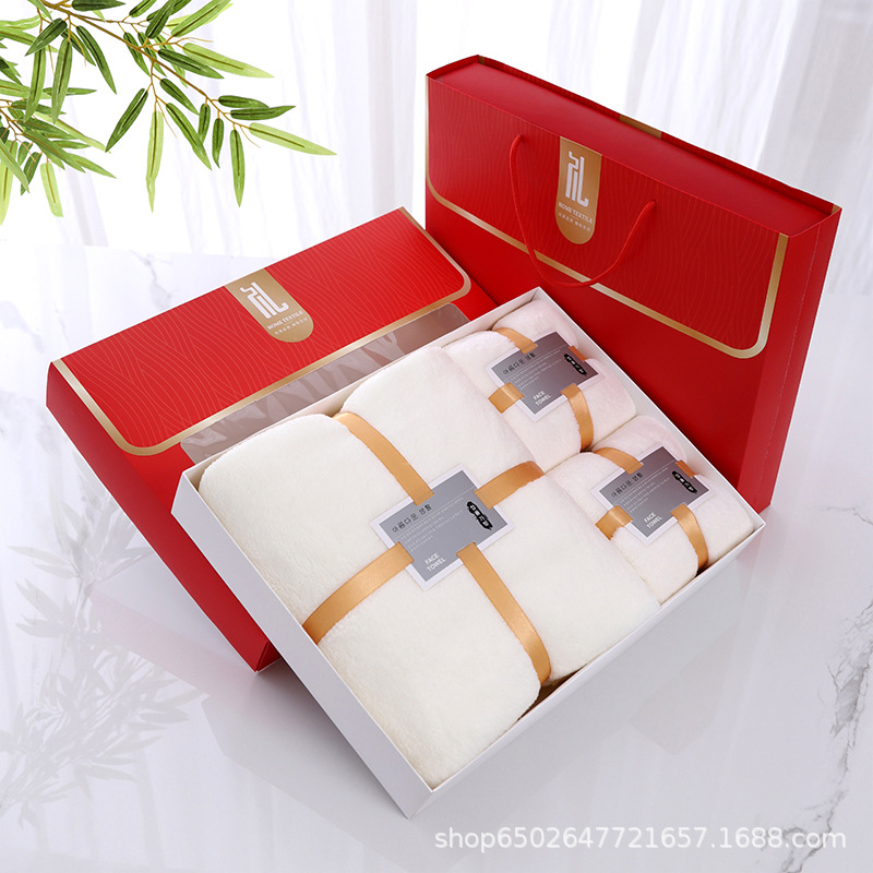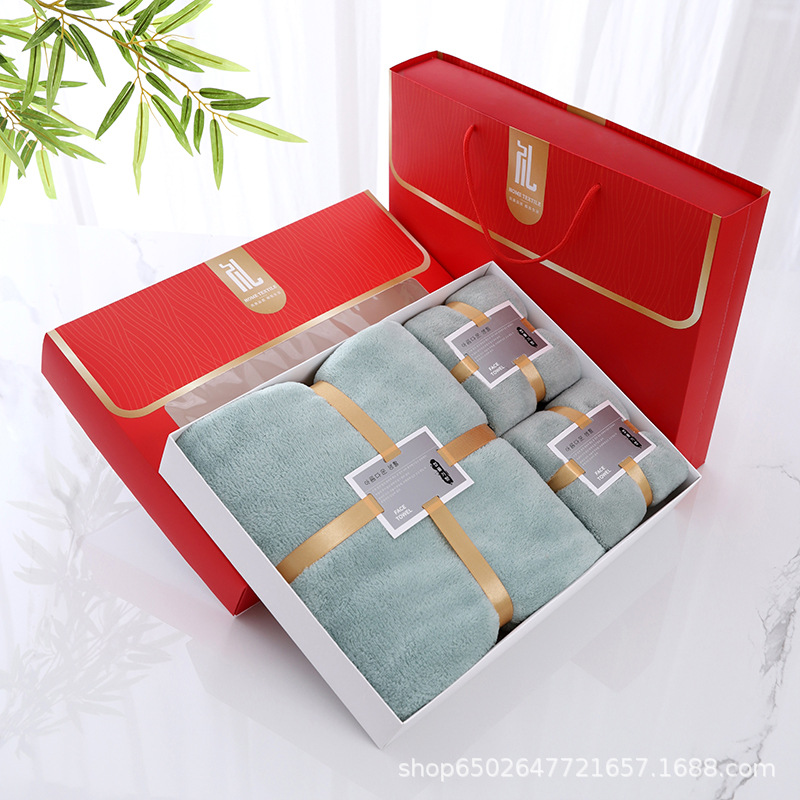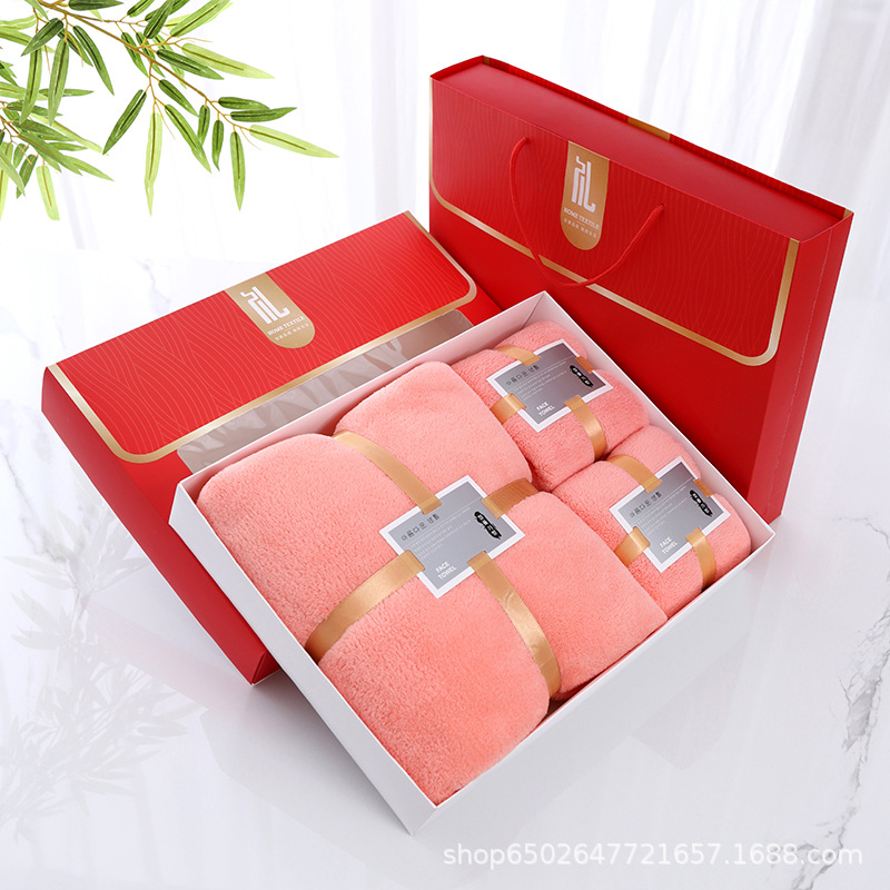珊瑚绒礼盒装毛巾浴巾套装浴巾三件套公司礼品婚庆回礼团购LOGO
