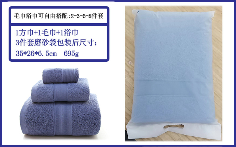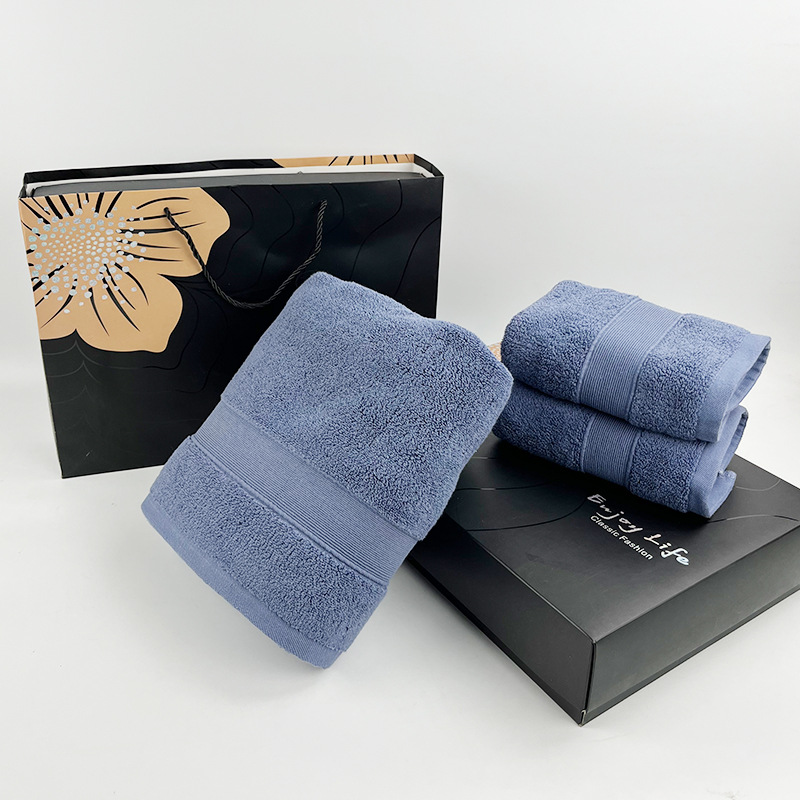 全棉毛巾套装浴巾三件套精梳棉灰蓝色外贸亚马逊礼品毛巾套装批发