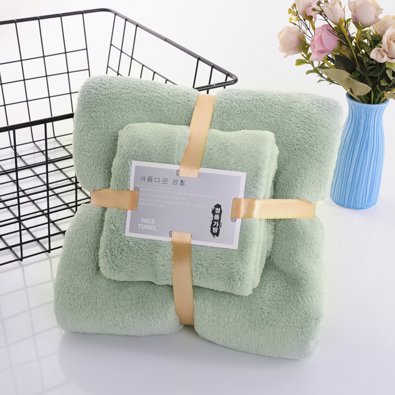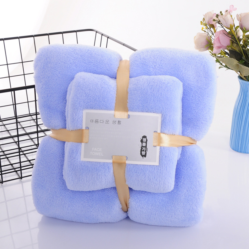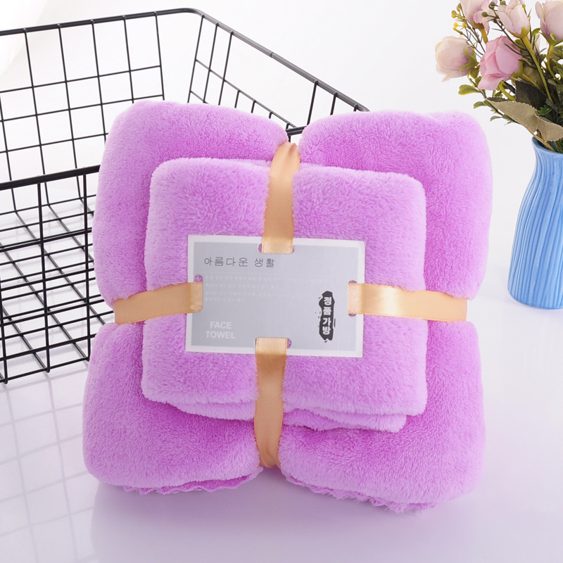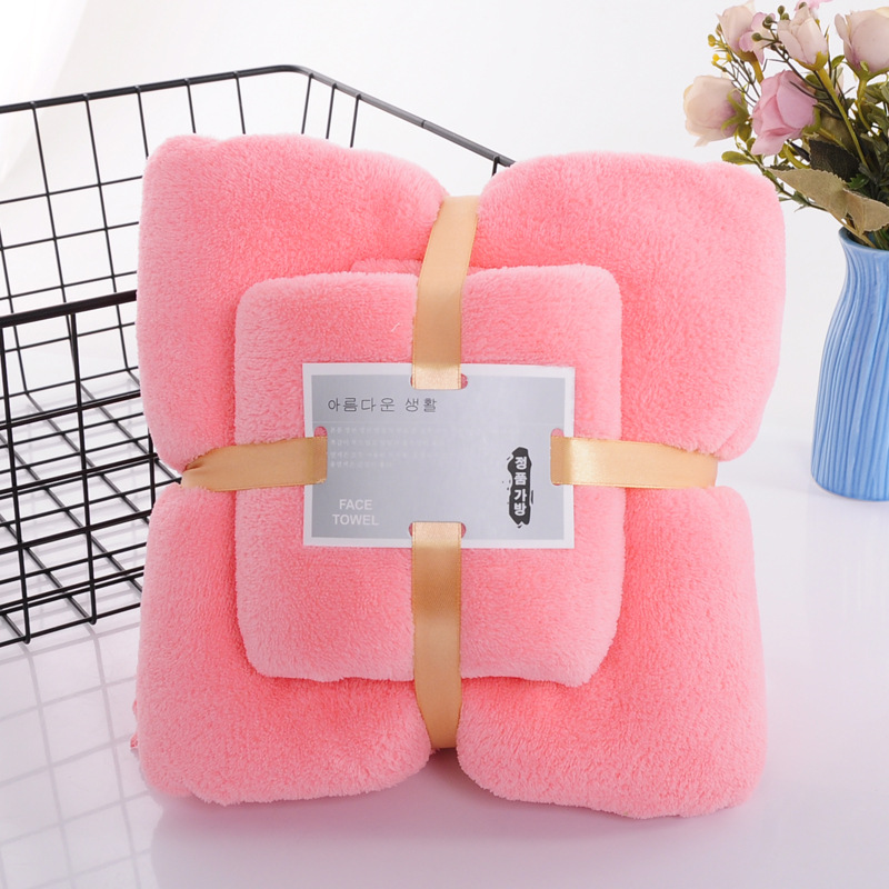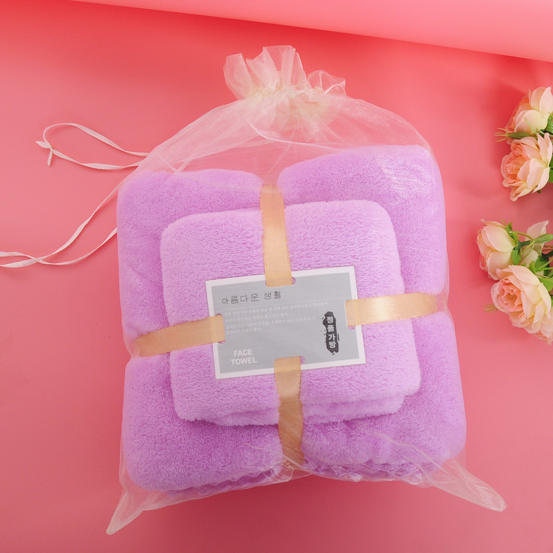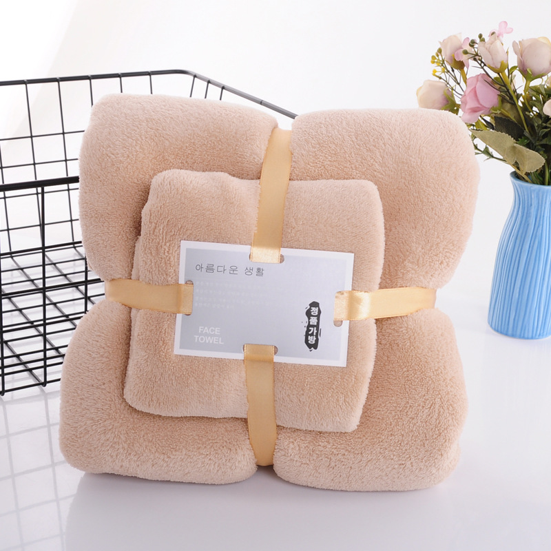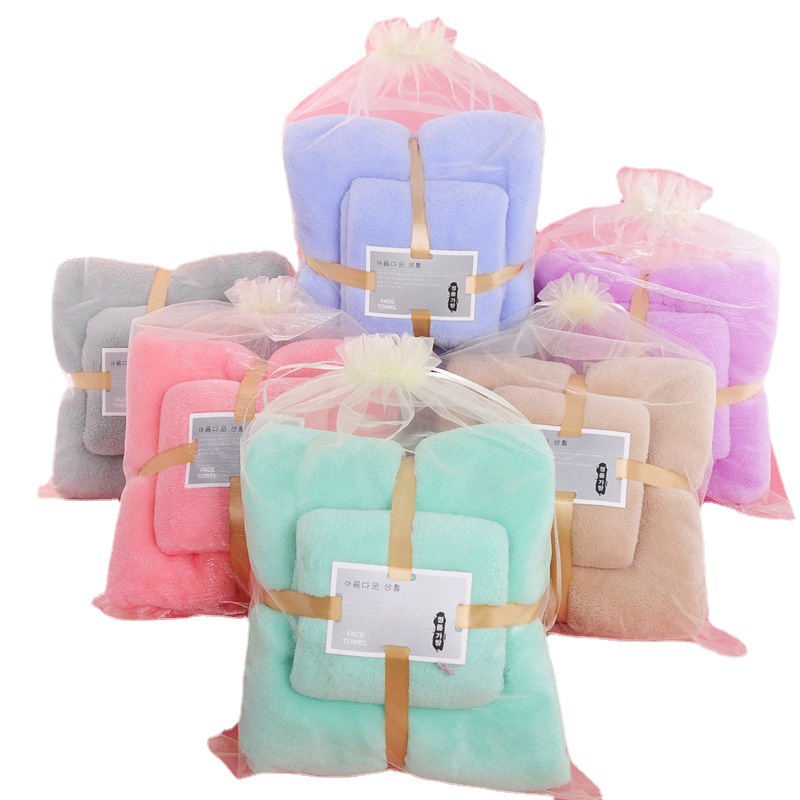 晋州毛巾厂批发经编高密珊瑚绒毛巾浴巾子母纱袋套装柔软吸水礼品