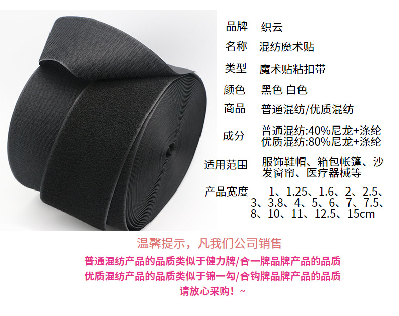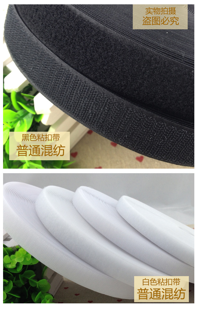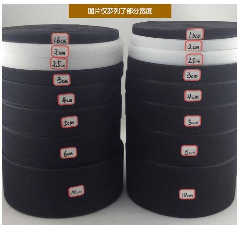 1-20CM混纺尼龙魔术贴 黑白彩色勾面毛面粘扣带无胶冲型健力鸿明