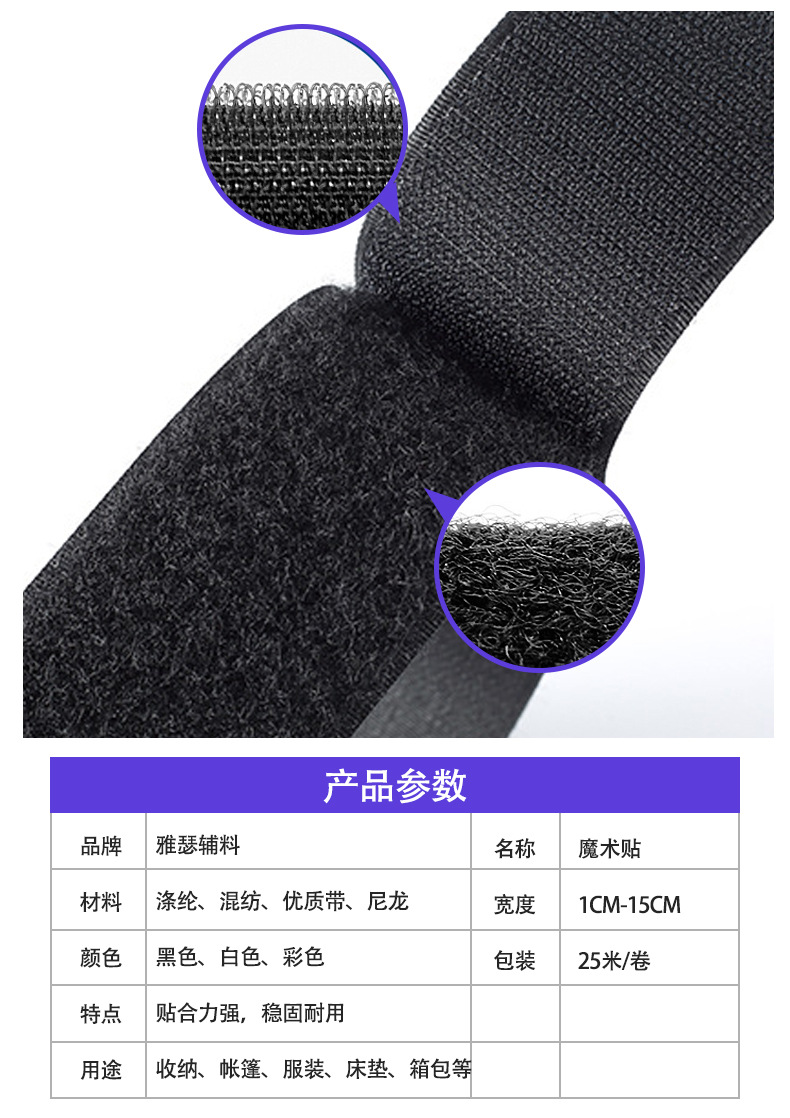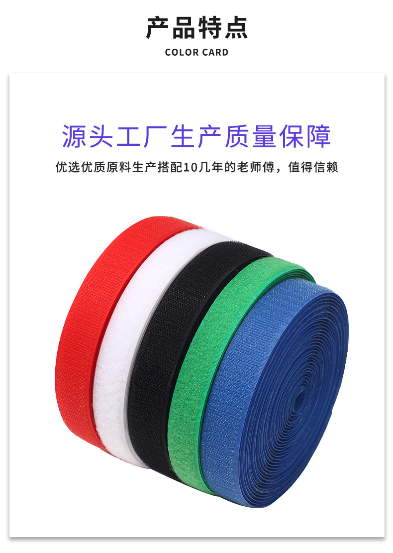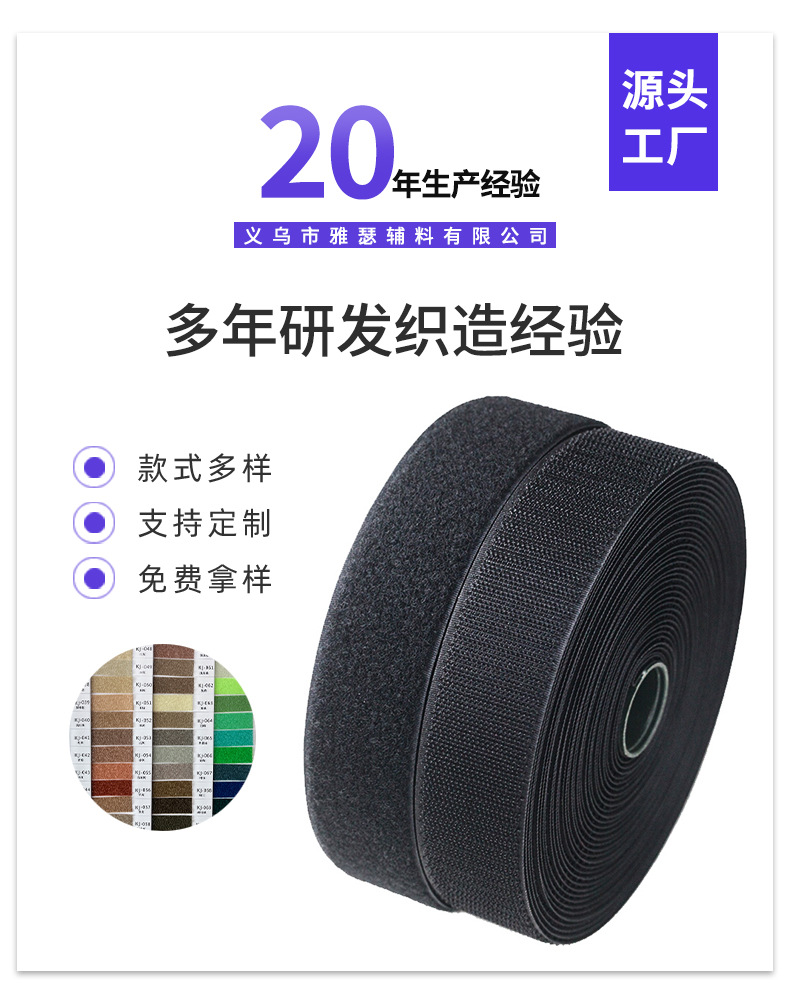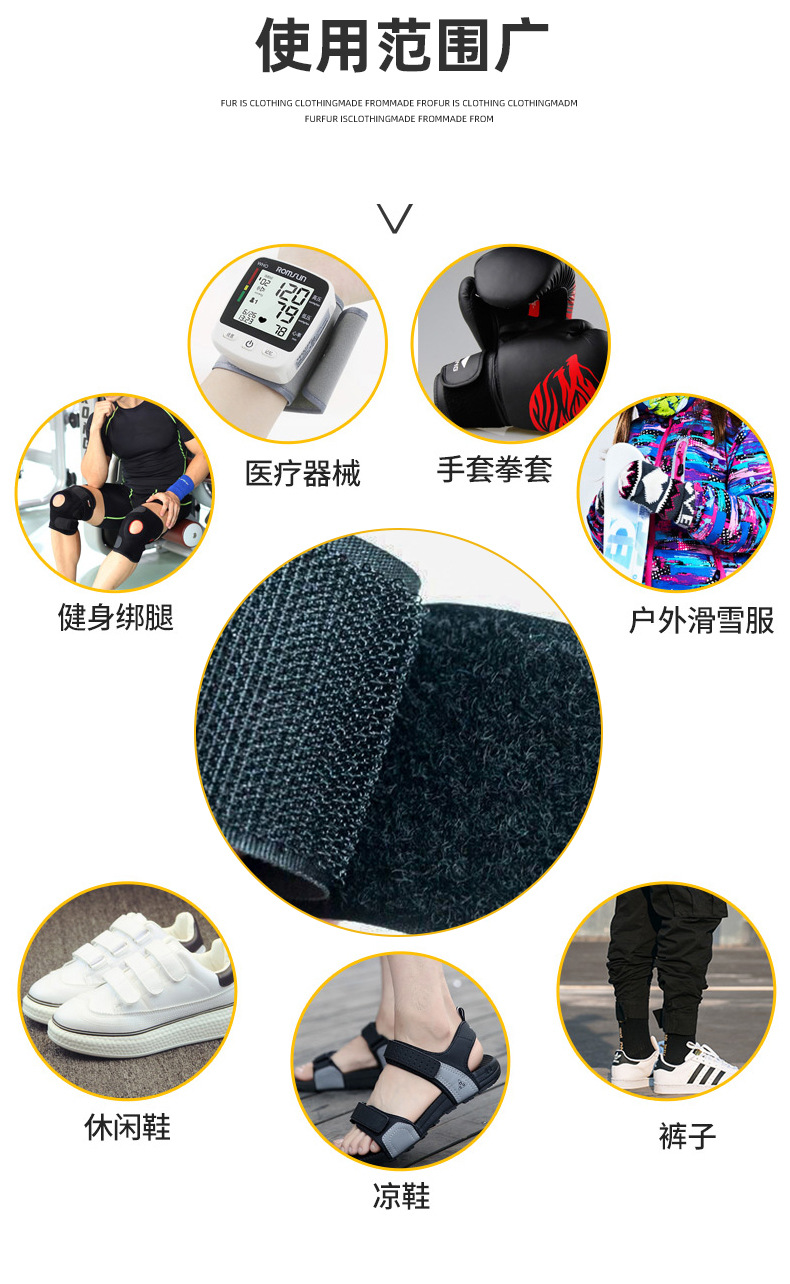 现货批发黑色尼龙魔术贴勾面毛面彩色粘扣带服装箱包100mm魔术贴