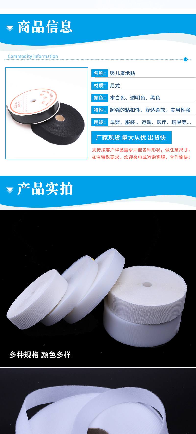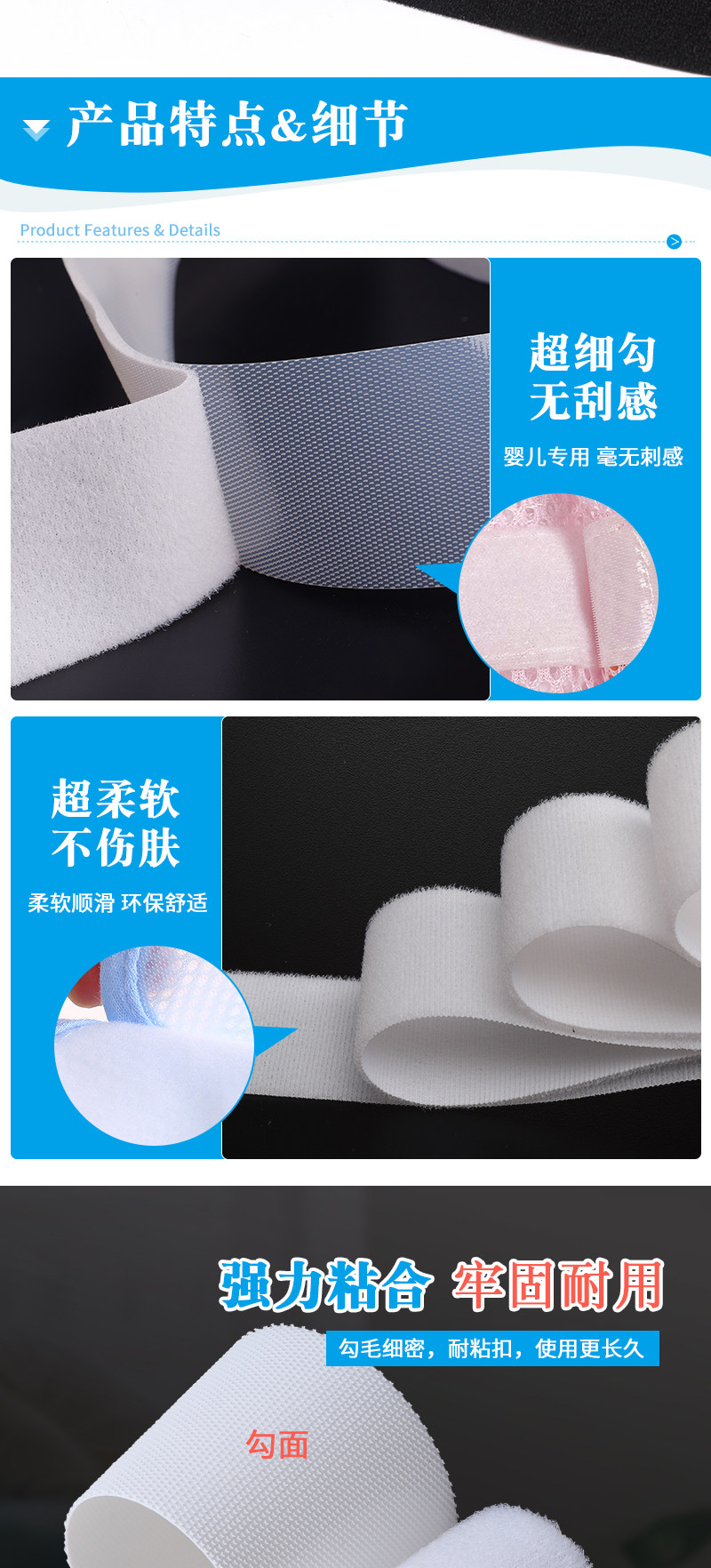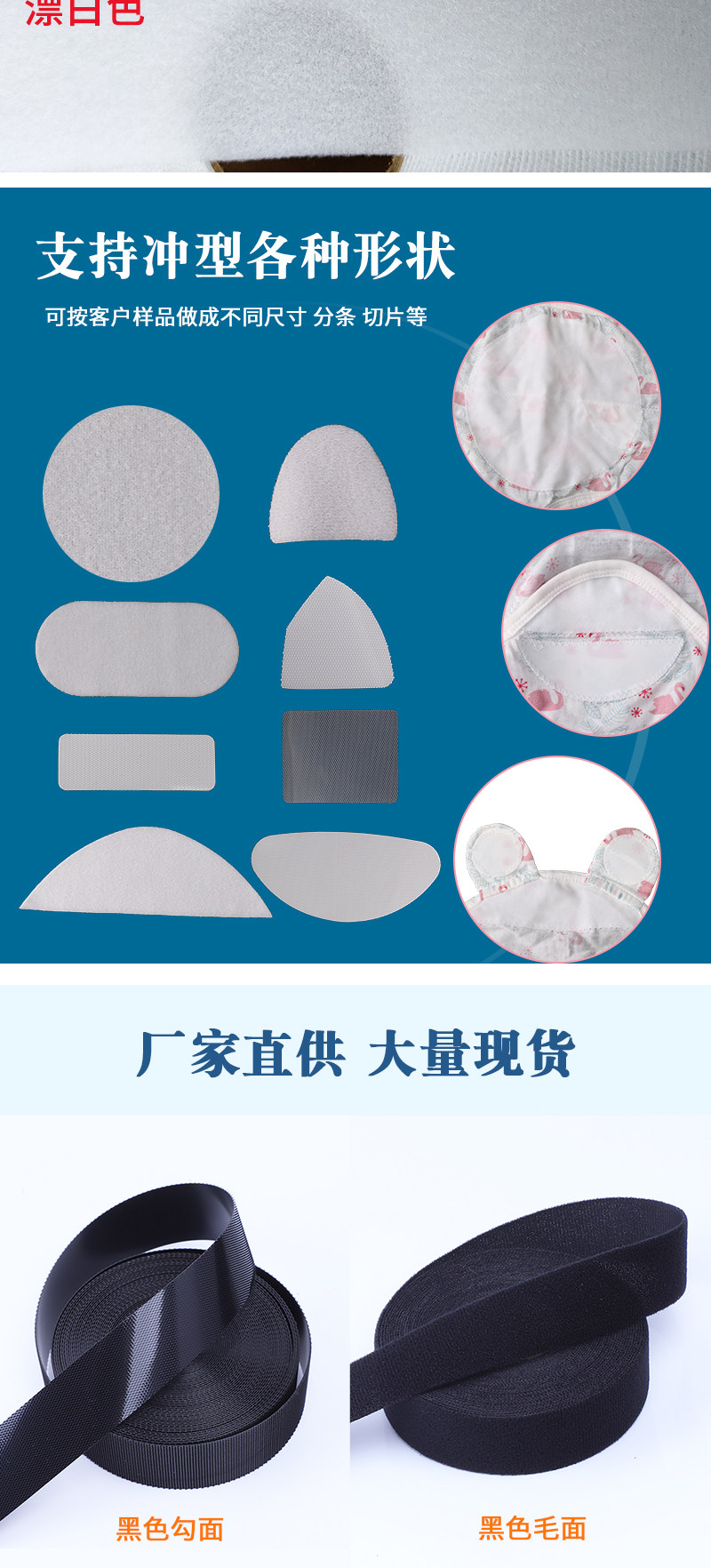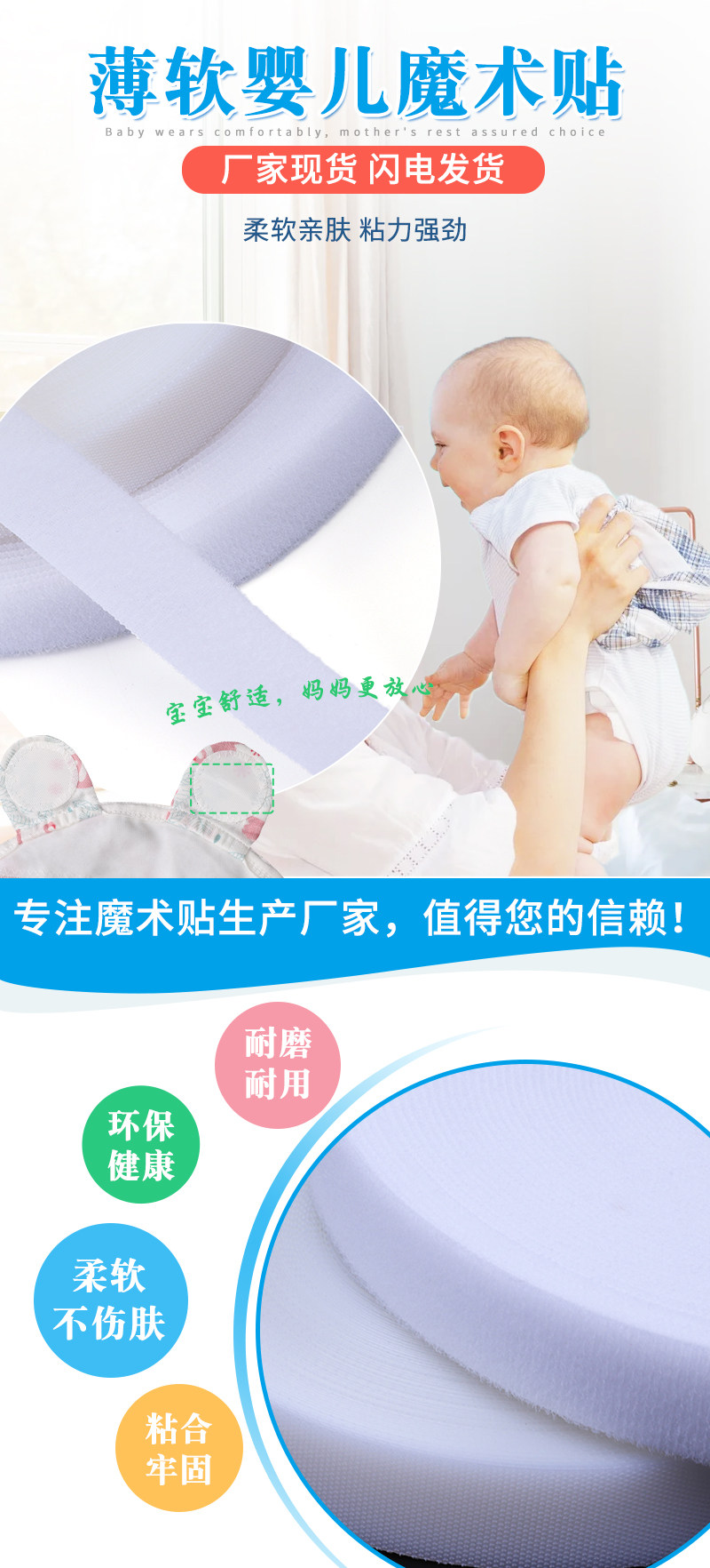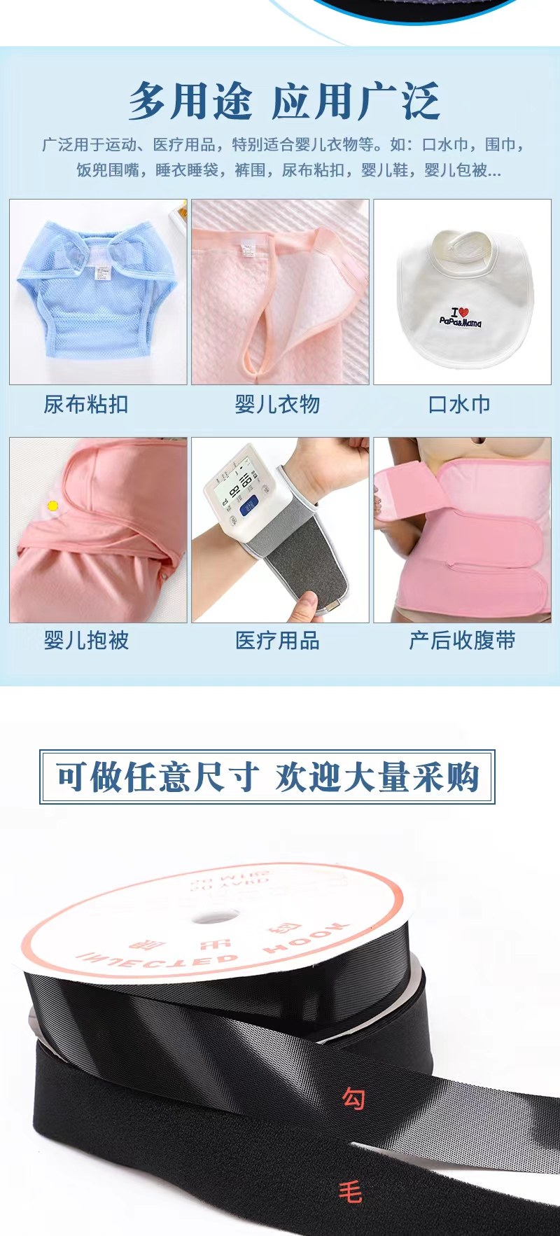 婴儿魔术贴刺毛扣 超薄射出钩粘扣 柔软起绒布无荧光魔术贴子母贴