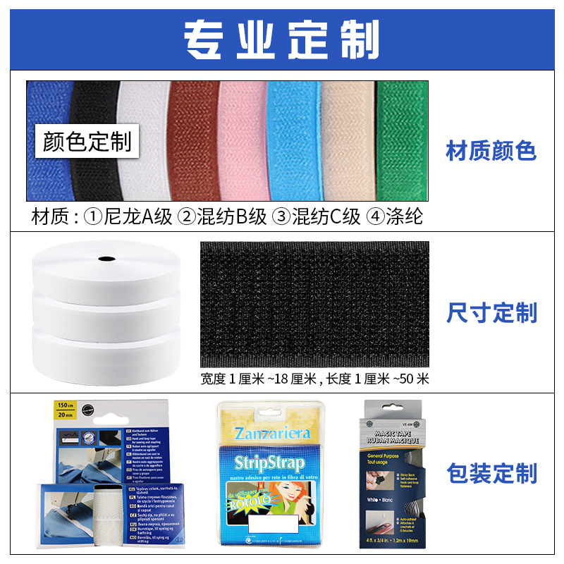 工厂批发背胶魔术贴现货尼龙混纺魔术贴粘扣带整箱自粘子母扣粘条