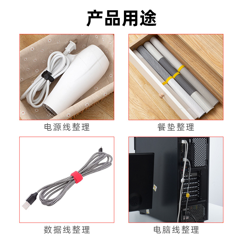数据线收纳带彩色理线带背对背束线带背靠背粘扣捆绑带魔术贴扎带