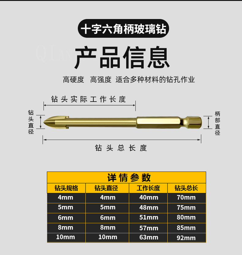 厂家批发陶瓷玻璃水泥墙壁玻化砖铝板合金打孔钻镀钛玻璃钻头