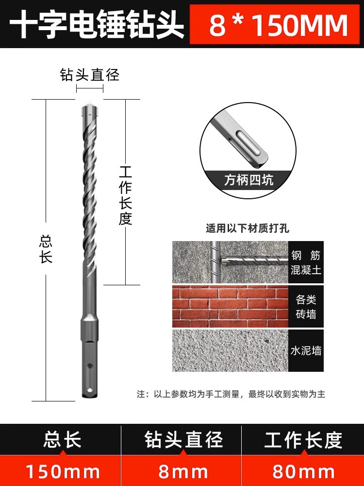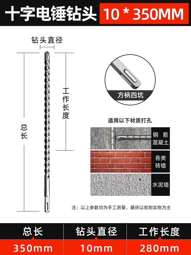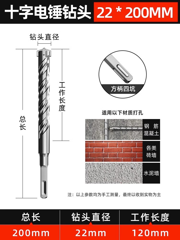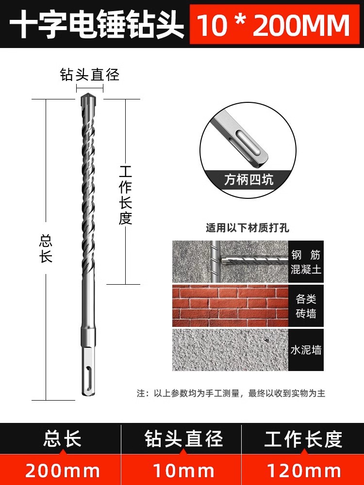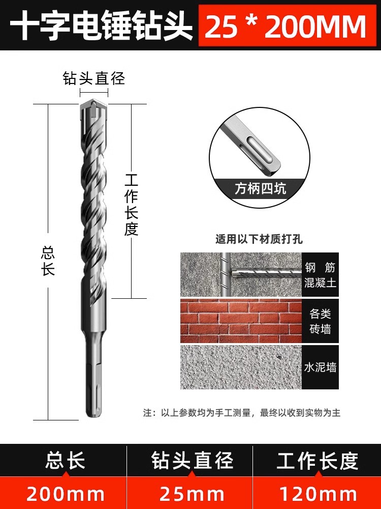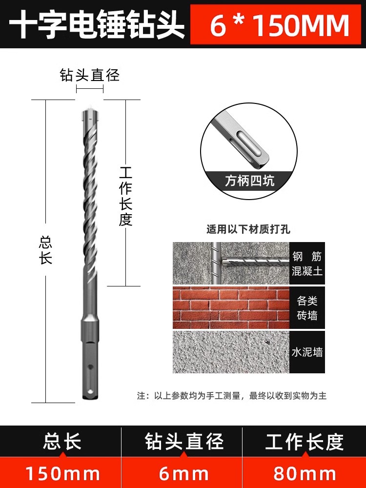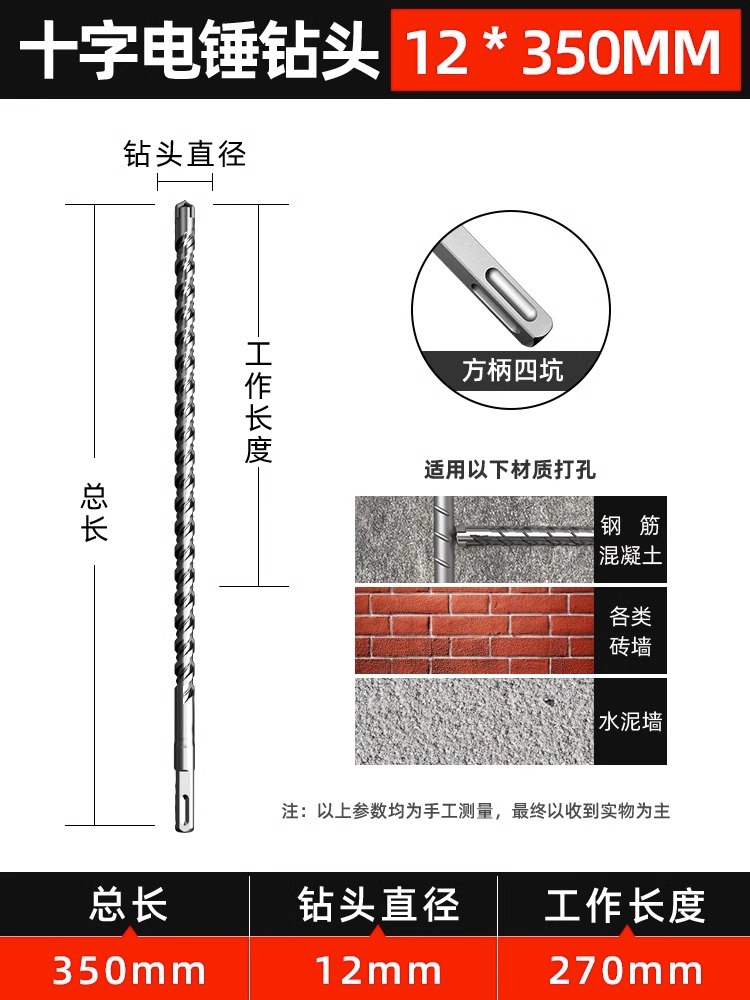 十字冲击钻头电锤混凝土穿墙方柄打墙转头圆柄四坑加长合金四刃钻