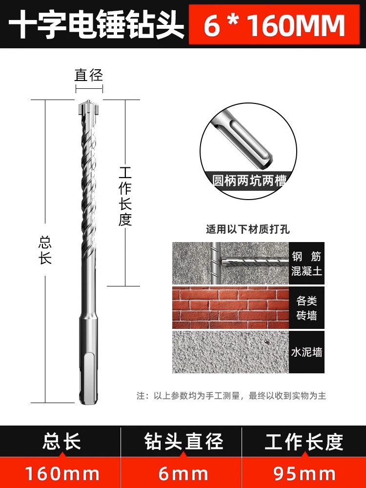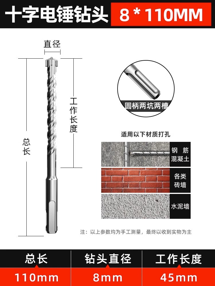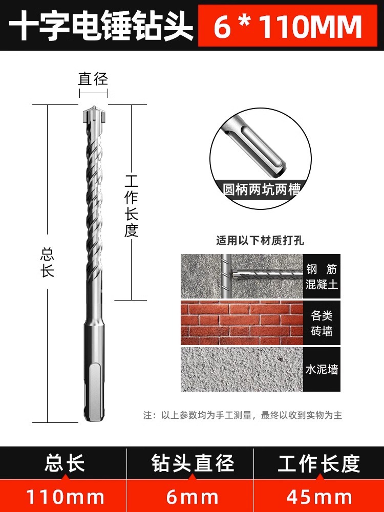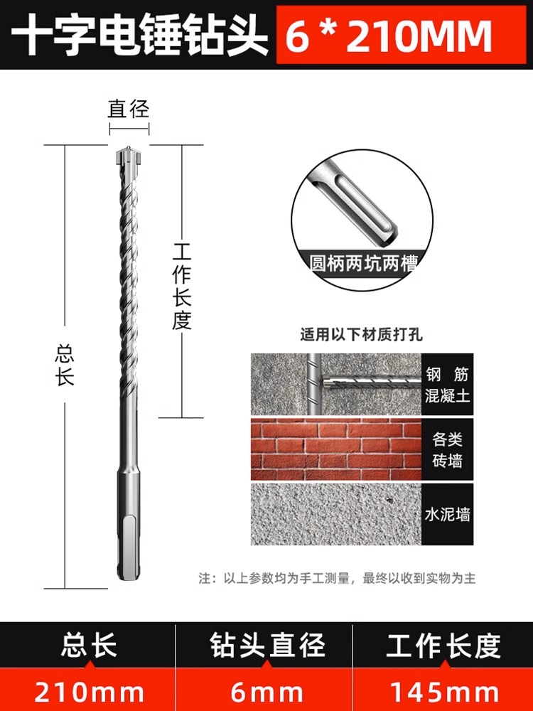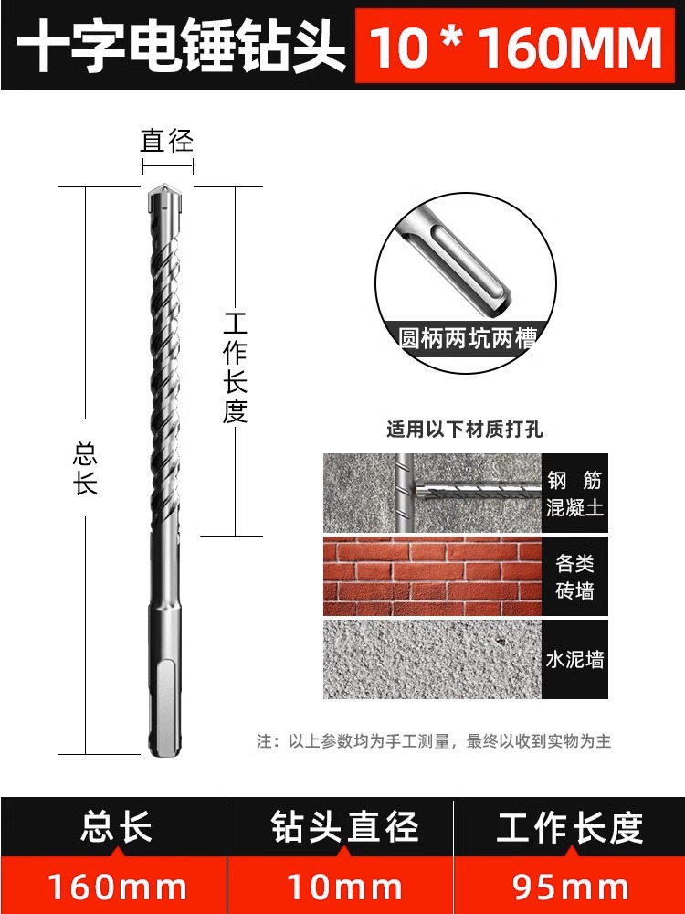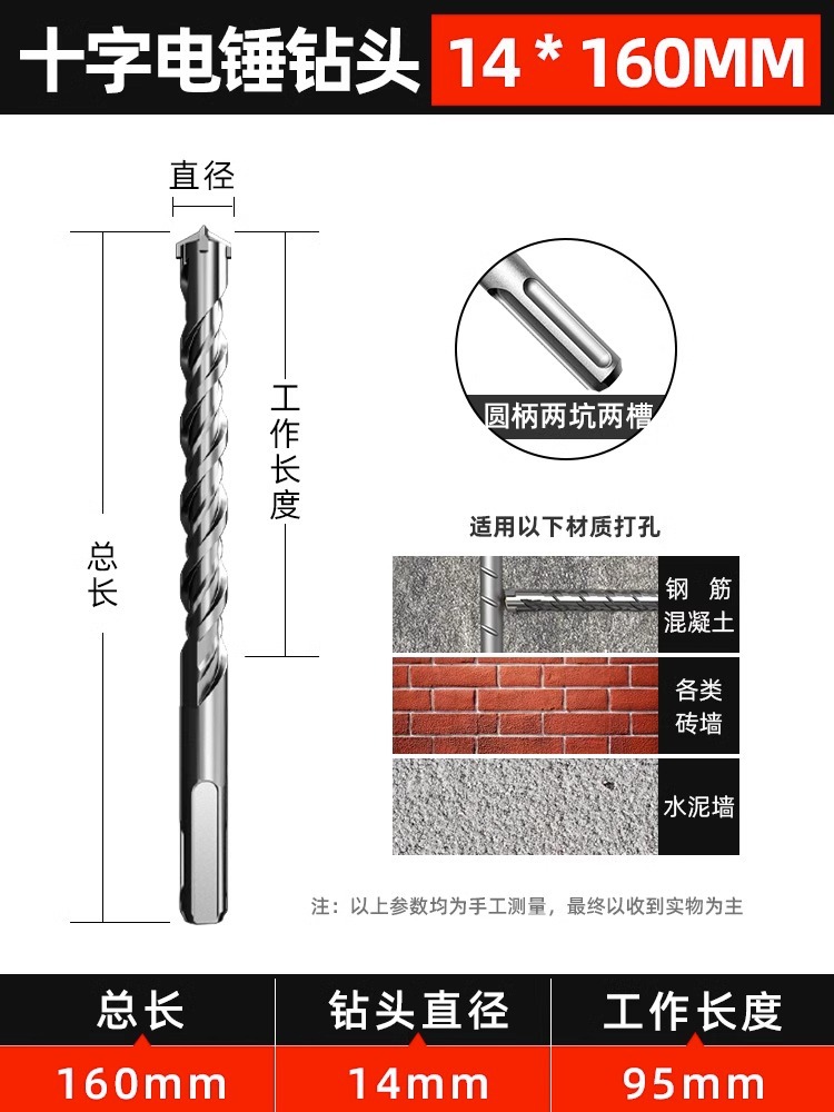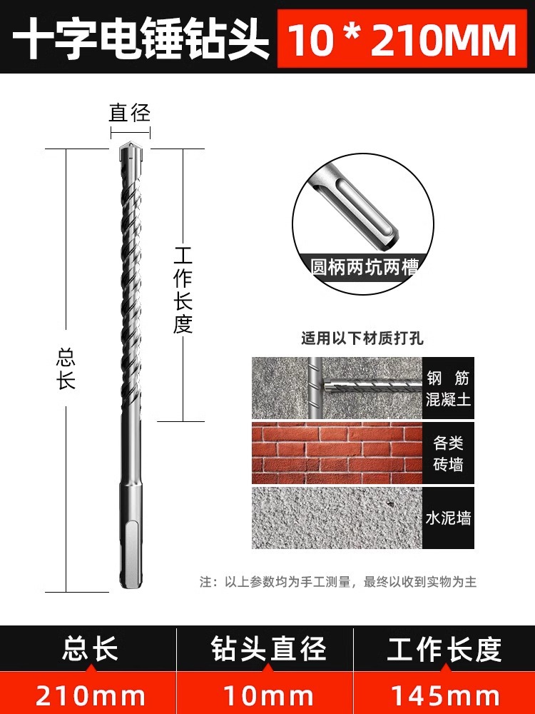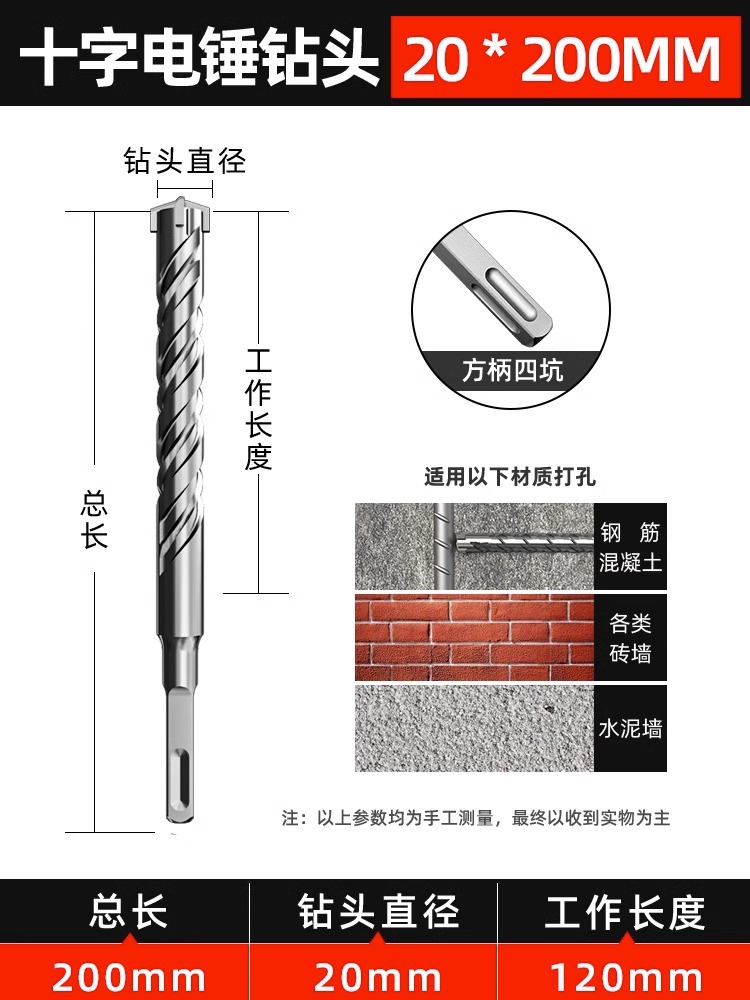 十字冲击钻头电锤混凝土穿墙方柄打墙转头圆柄四坑加长合金四刃钻