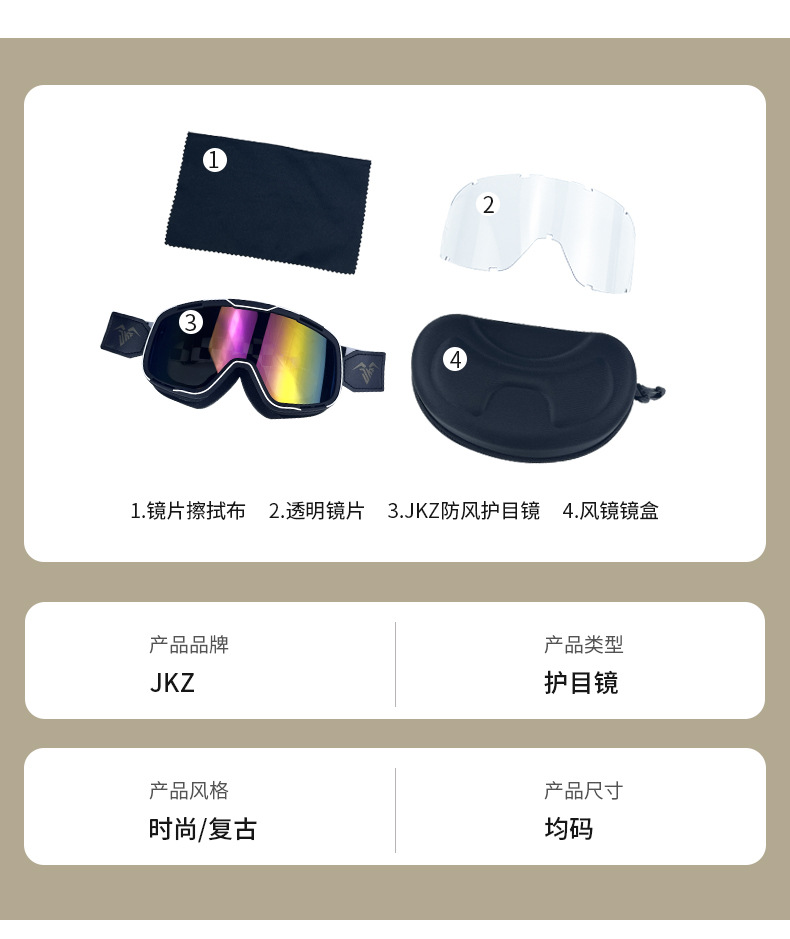 JKZ摩托车风镜自动变色骑行眼镜红灰片防晒防风沙复古头盔护目镜