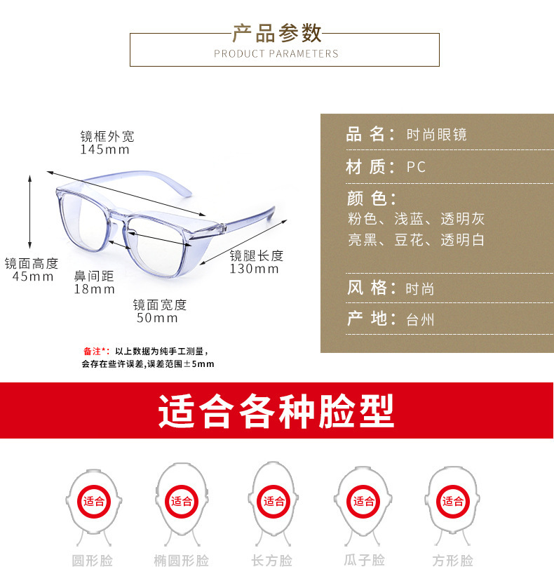 现货直供防蓝光花粉镜男女同款个性防紫外线平光镜防雾护目眼镜潮
