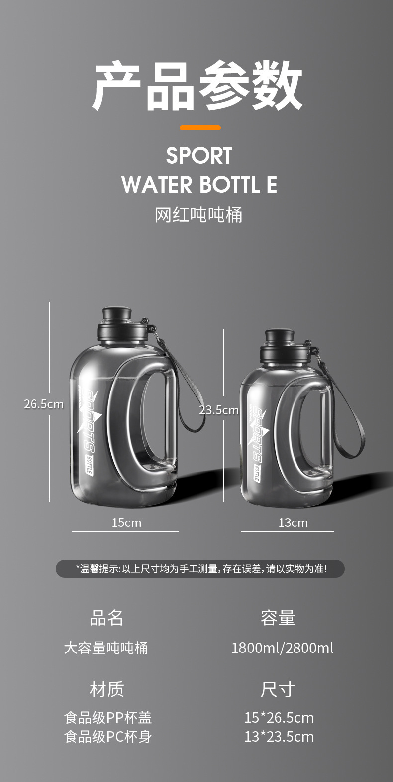 超大容量运动健身杯塑料水壶太空杯网红水杯夏季户外耐高温吨吨桶