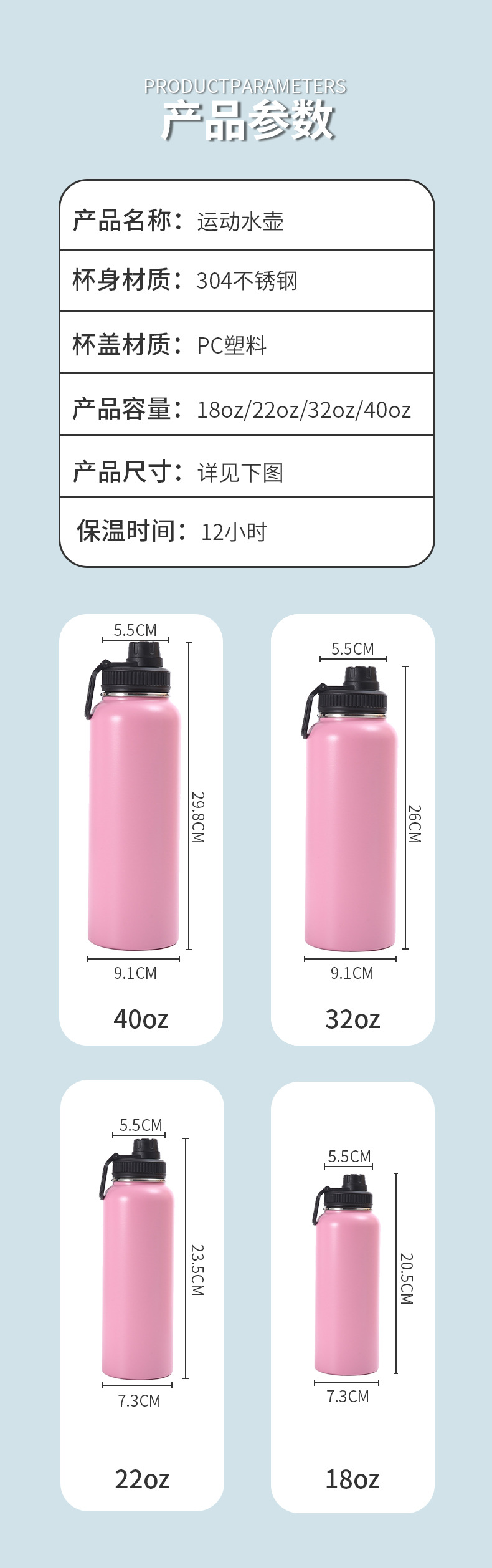 跨境大容量运动水壶跑步户外不锈钢保温杯直饮水瓶水杯太空壶定制