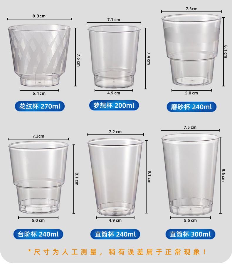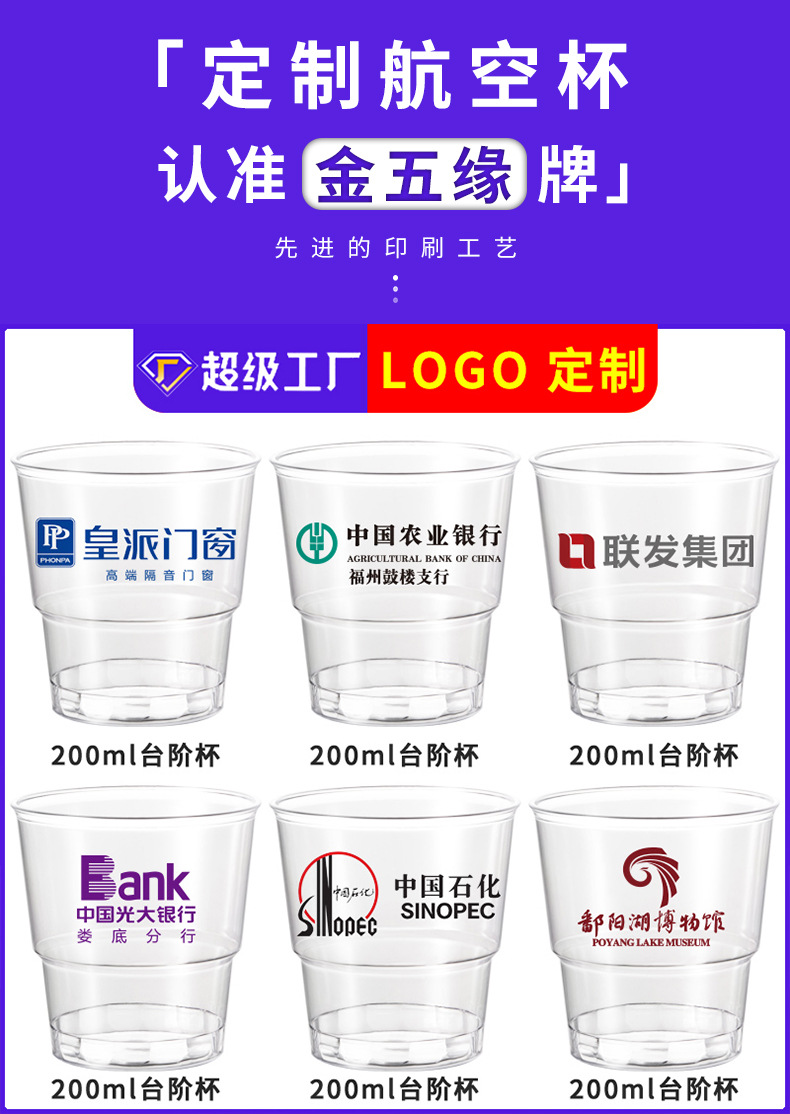 金五缘ps一次性杯子加厚硬质航空杯透明塑料杯太空杯饮料果汁水杯