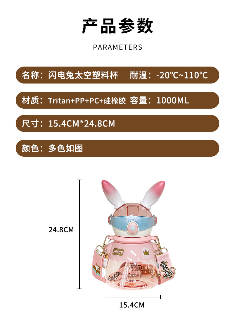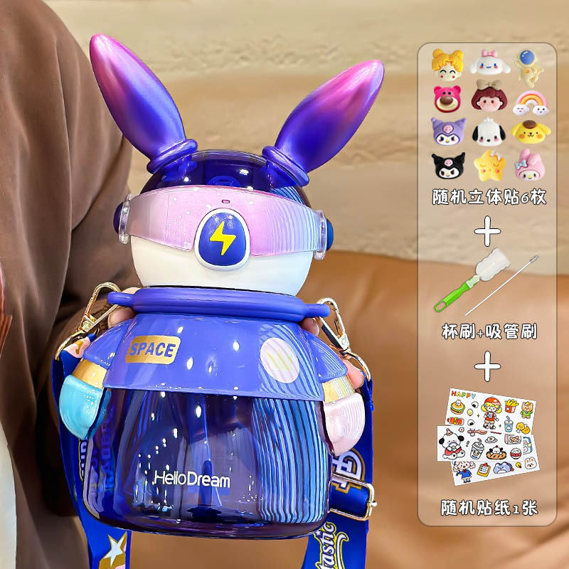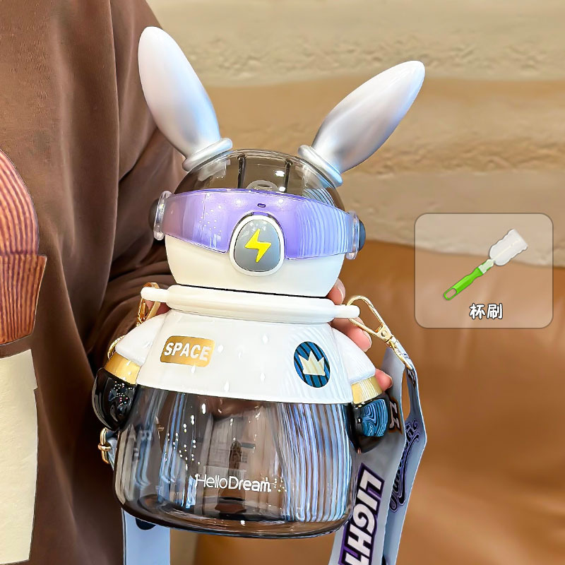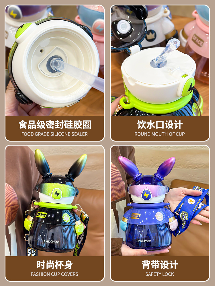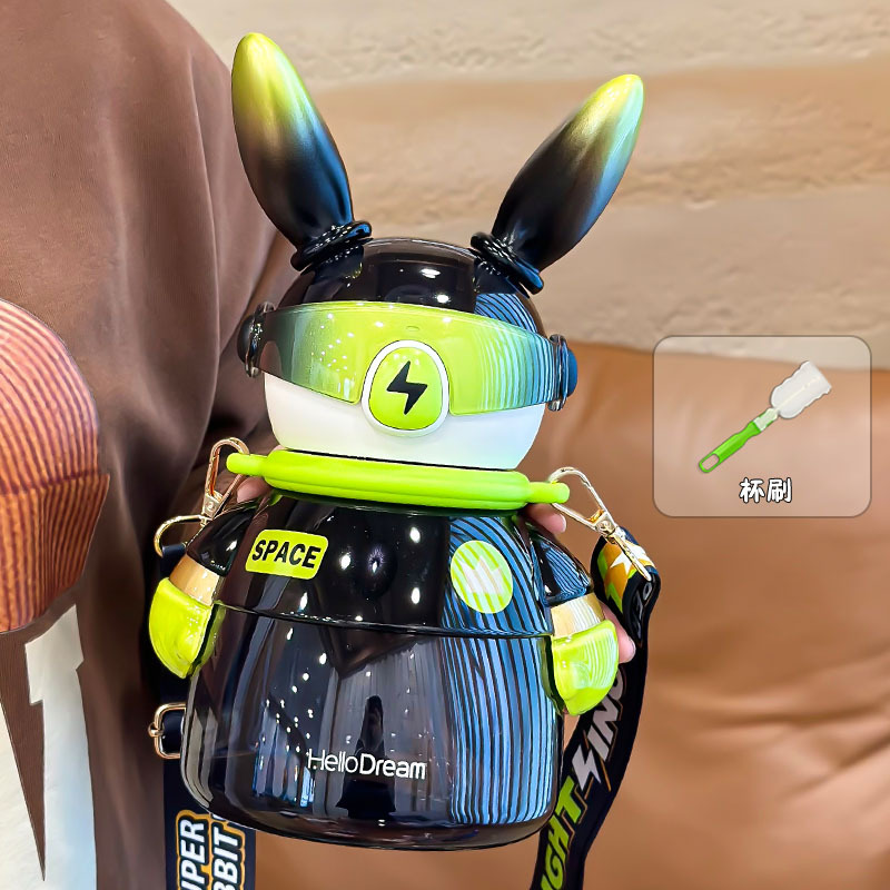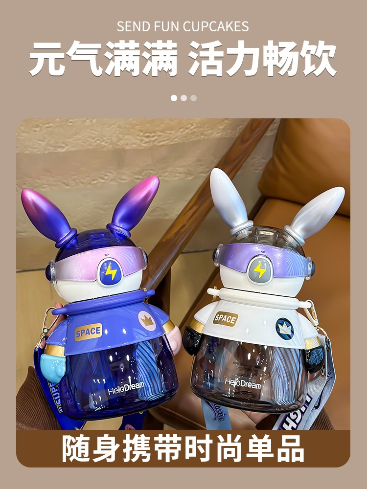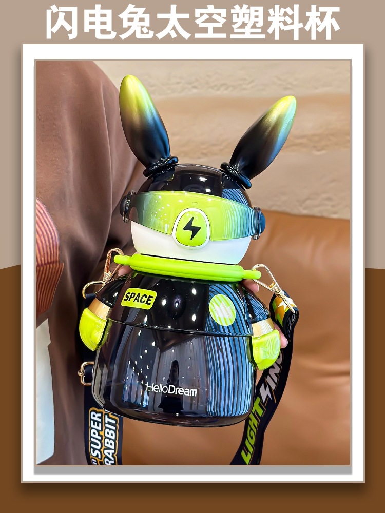 闪电兔太空杯儿童水杯女生大容量水壶生日礼物男生炫酷吸管杯兔子