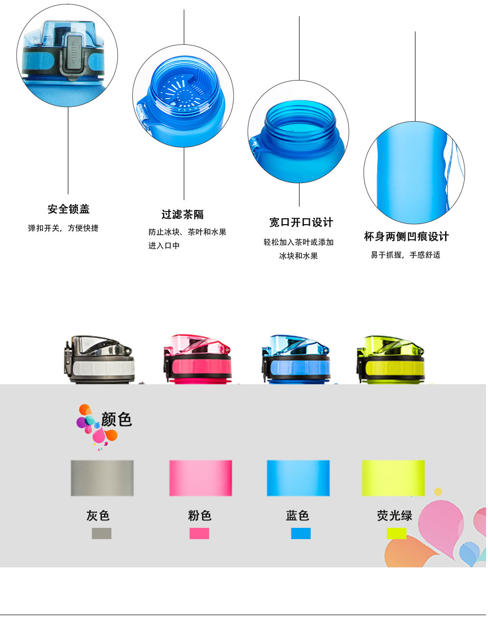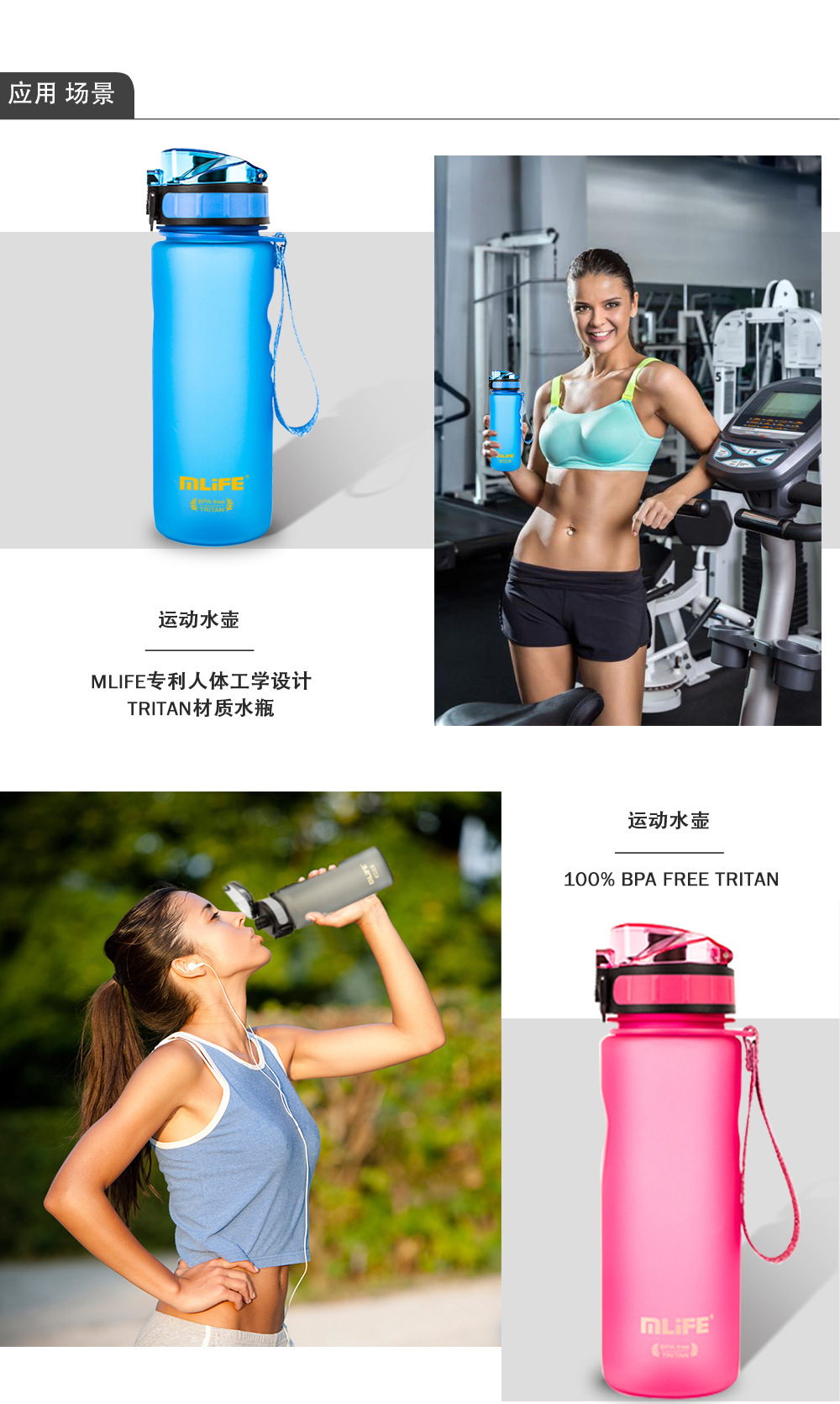 MLIFE供应1L弹盖塑料杯tritan 32oz大容量太空杯户外运动水杯