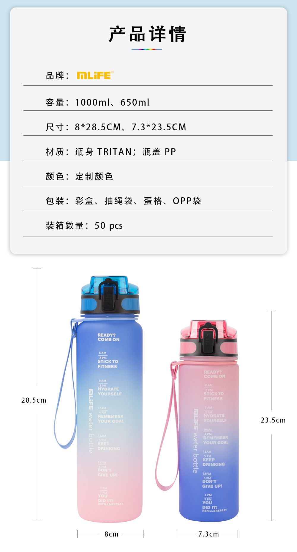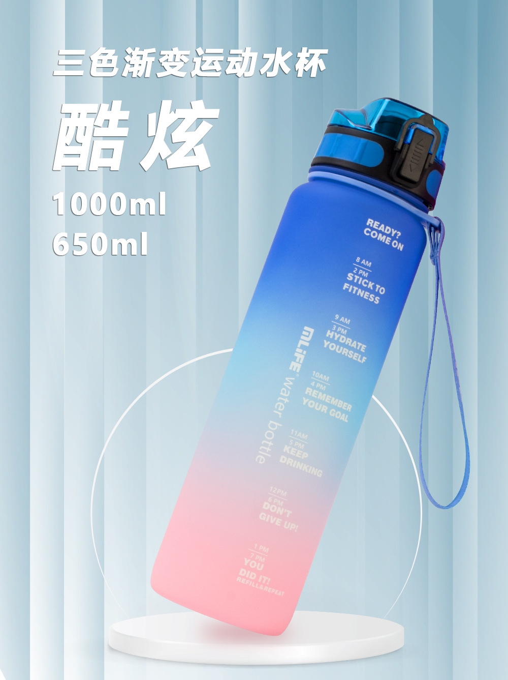 新款1000ml大容量户外运动水杯MLIFE太空杯防摔耐高温弹盖直饮杯