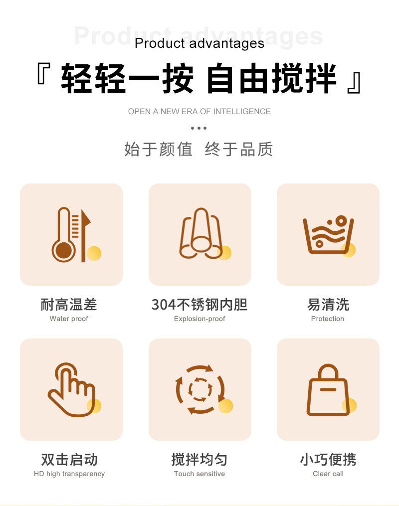 跨境新款全自动磁化搅拌杯懒人便携咖啡杯 304充电款旋转磁力杯子