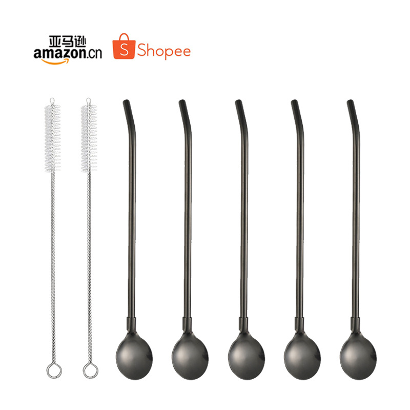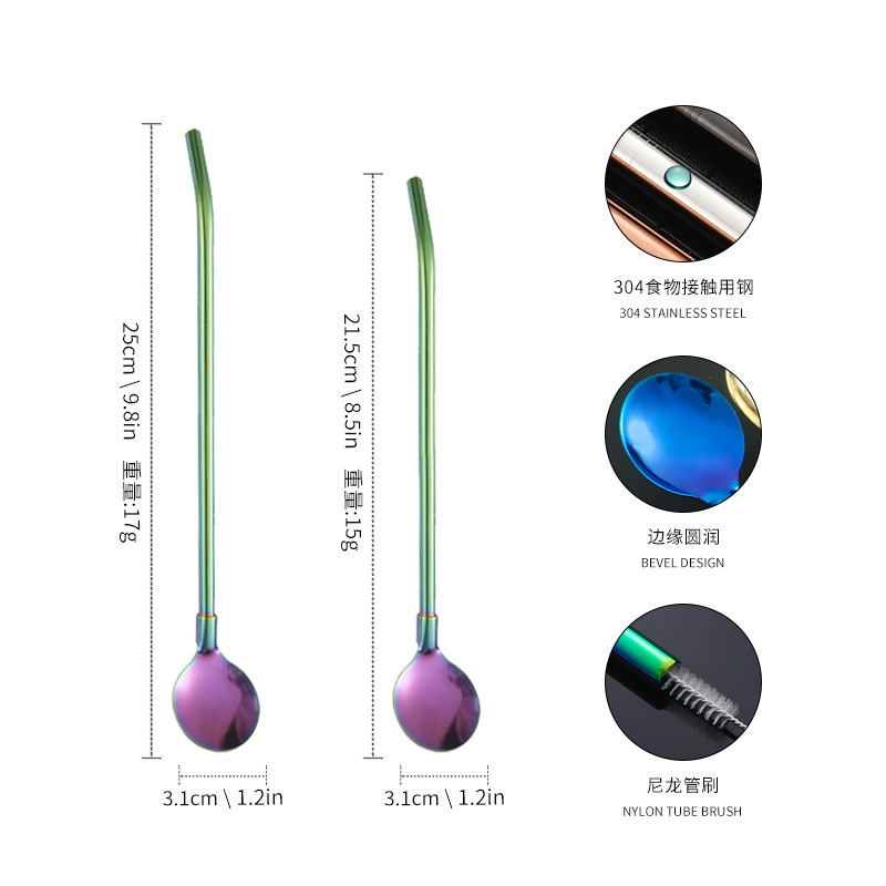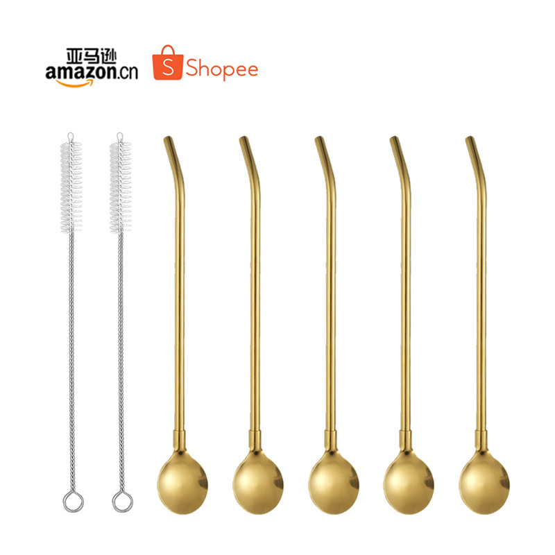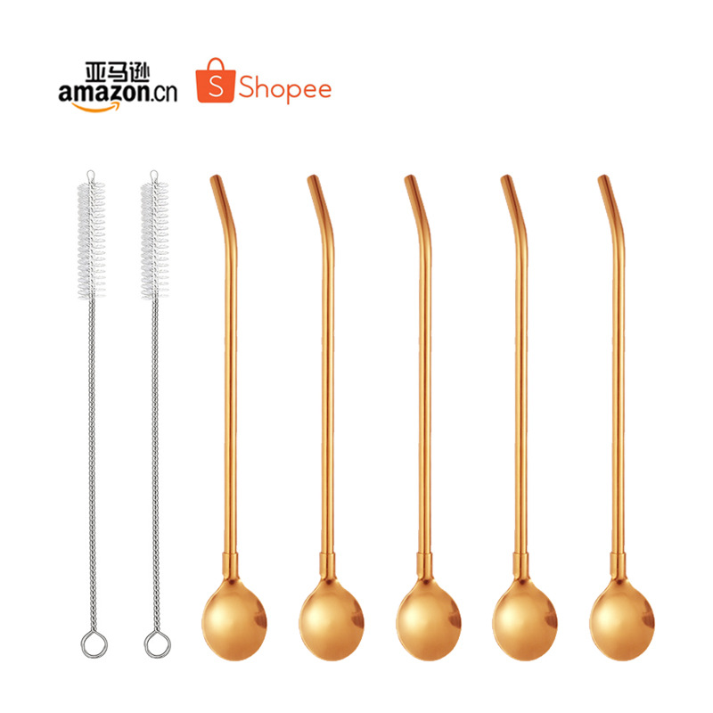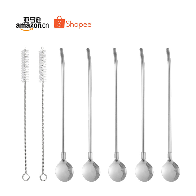 厂家直销不锈钢吸管勺杯子水果奶茶咖啡西瓜搅拌亚马逊304吸管勺