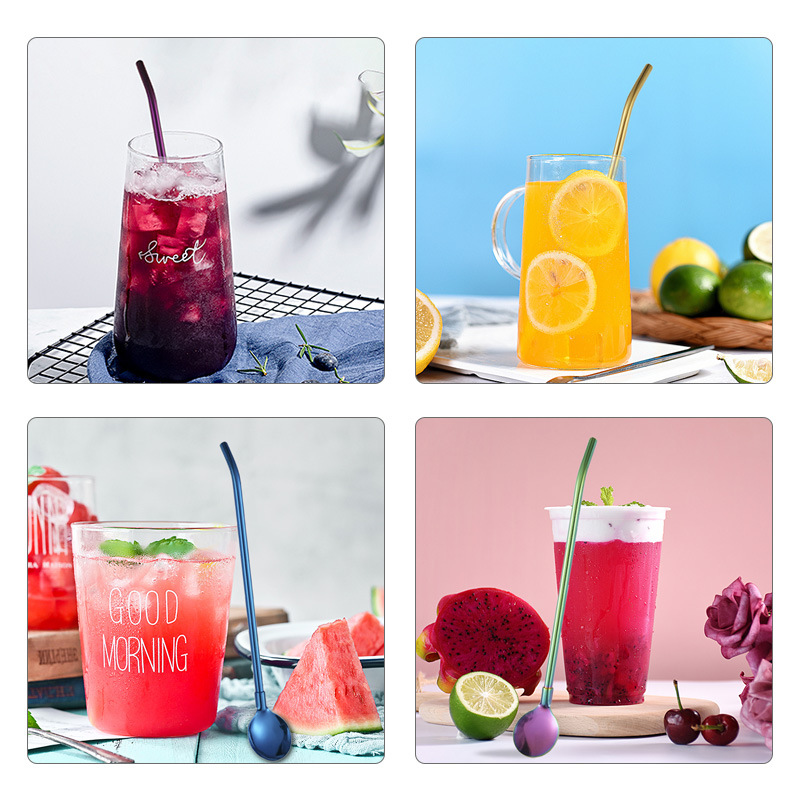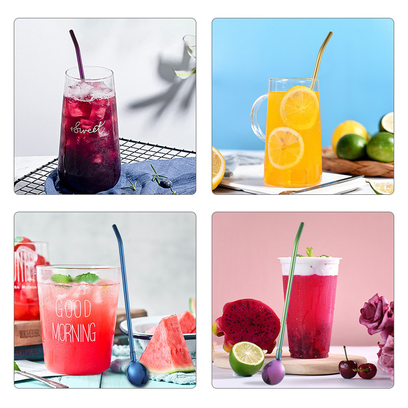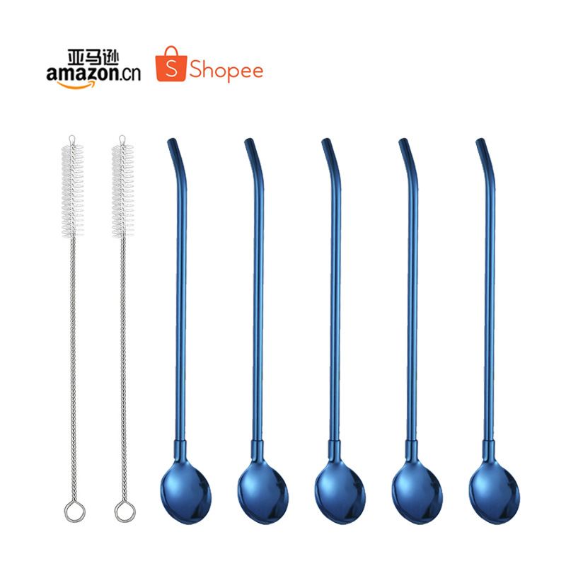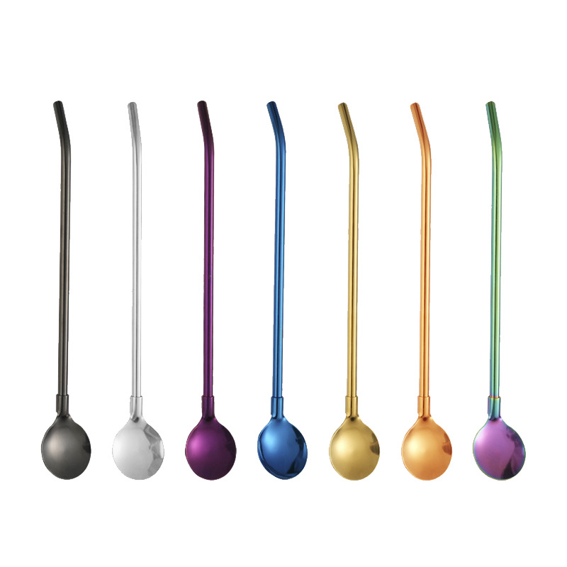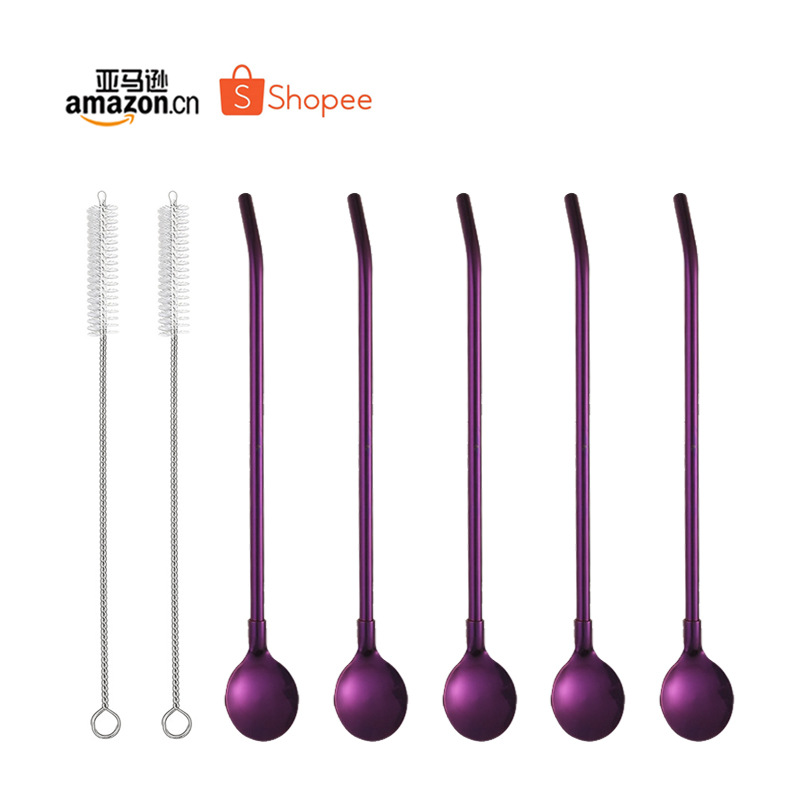 厂家直销不锈钢吸管勺杯子水果奶茶咖啡西瓜搅拌亚马逊304吸管勺