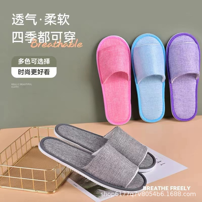 一次性拖鞋亚麻拖鞋宾馆酒店民宿美容院居家半包可印LOGO工厂批发
